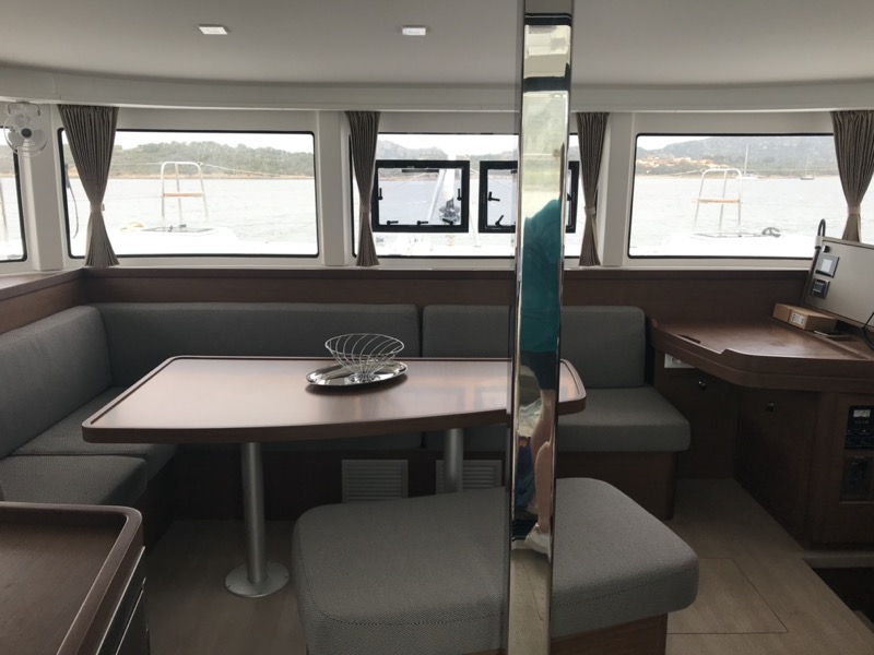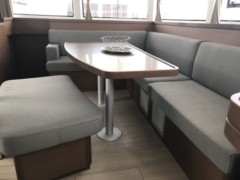 | Inside | Backofen, Generator, Inverter 12V/220V, Kaffeemaschine, Klimaanlage (ohne Landstrombedarf), Landstromkabel, Mikrowelle, Mokkakanne, Pantryausstattung, Radio, Salontisch absenkbar, USB Steckdosen in den Kabinen, Ventilatoren in Kabinen, Warmwasser, Watermaker, WC (elektr.) |