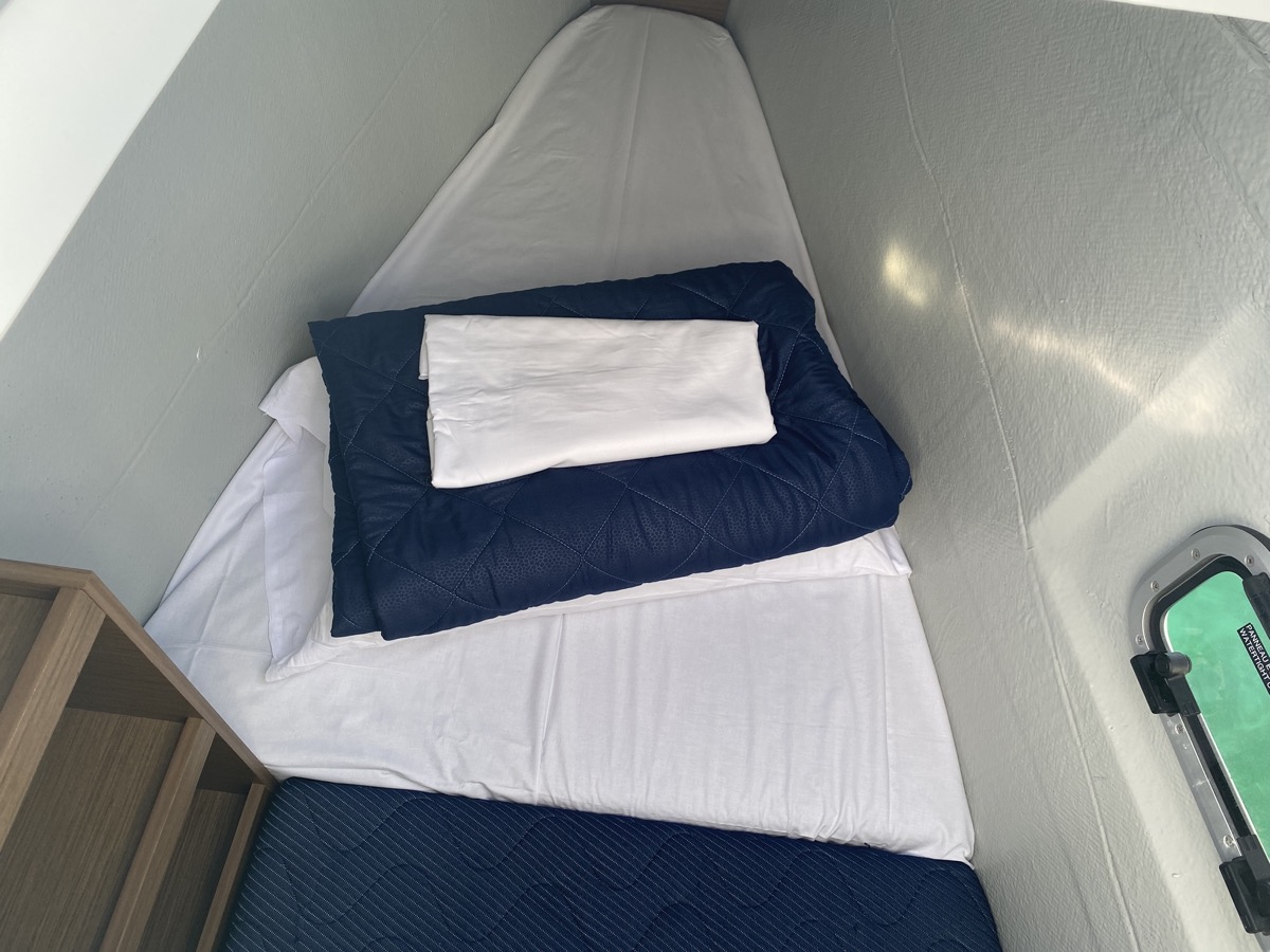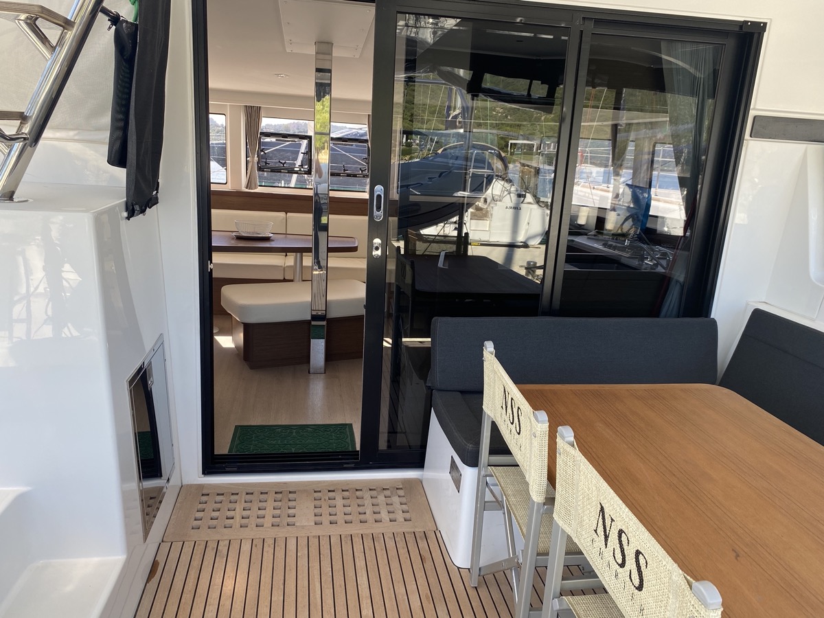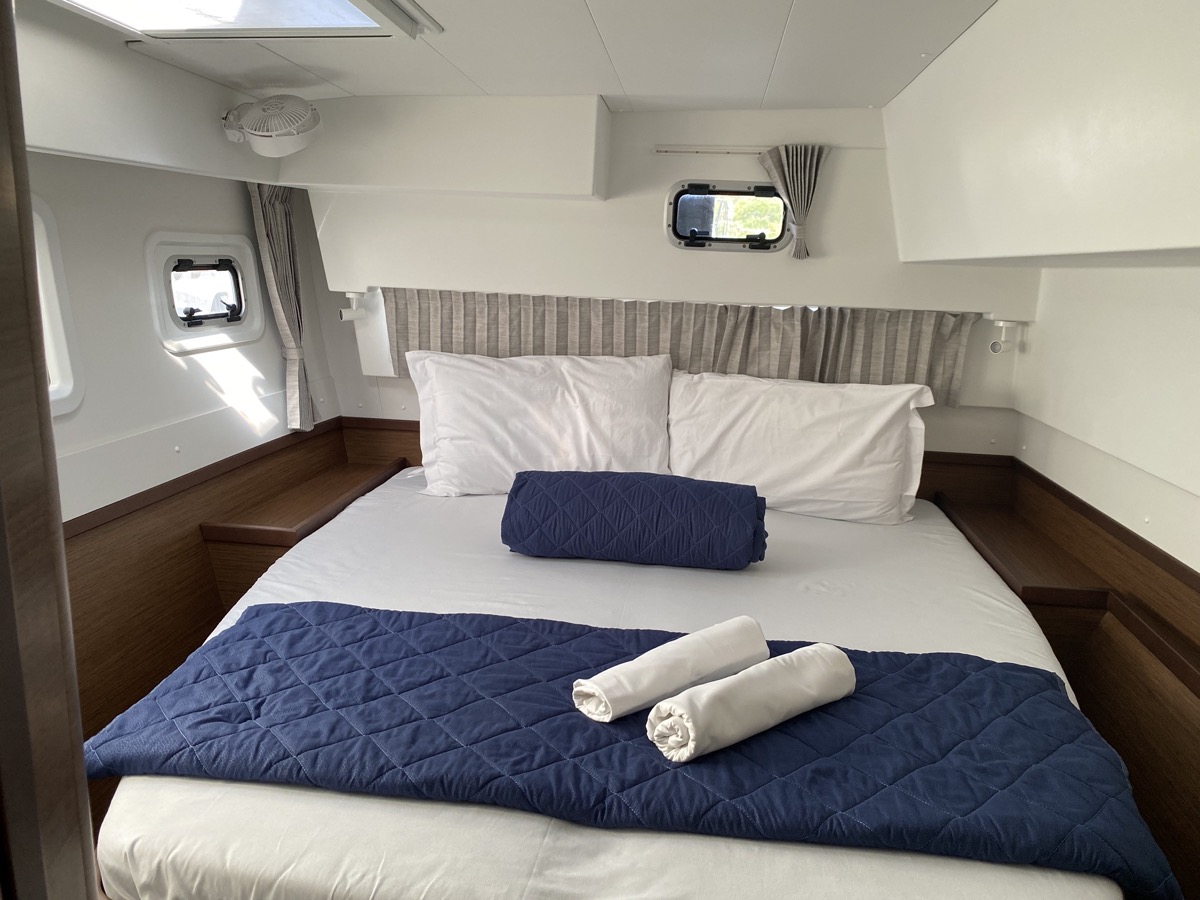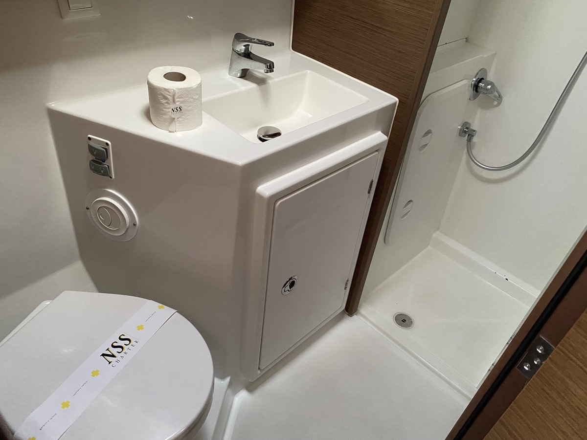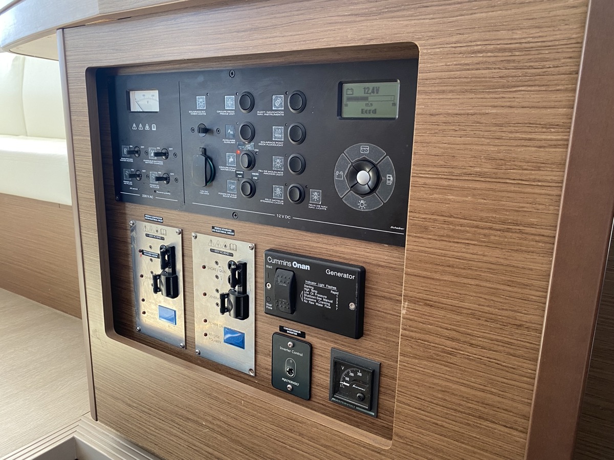 | Inside | Backofen, Generator, Inverter 12V/220V, Kaffeemaschine, Klimaanlage (ohne Landstrombedarf), Landstromkabel, Mikrowelle, Mokkakanne, Pantryausstattung, Radio, Salontisch absenkbar, Ventilatoren in Kabinen, Warmwasser, Watermaker, WC (elektr.) |