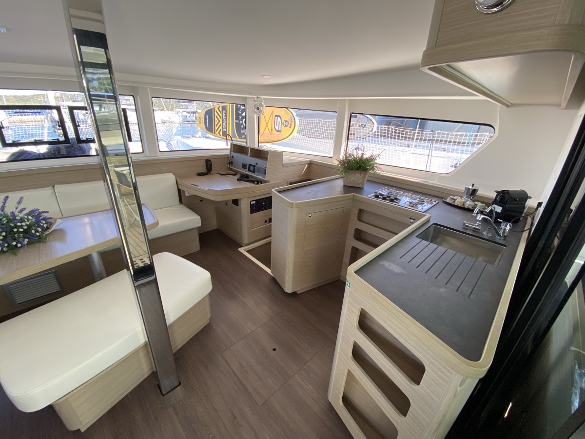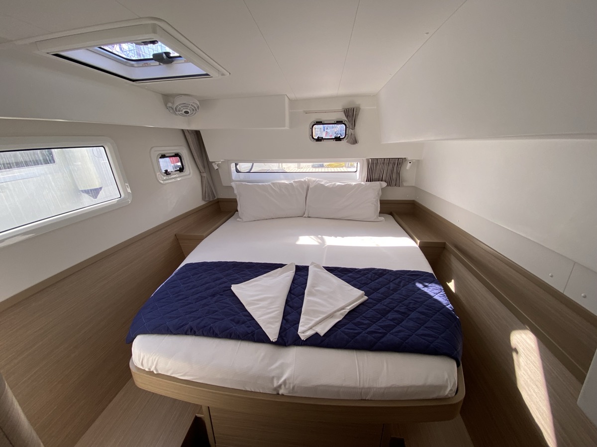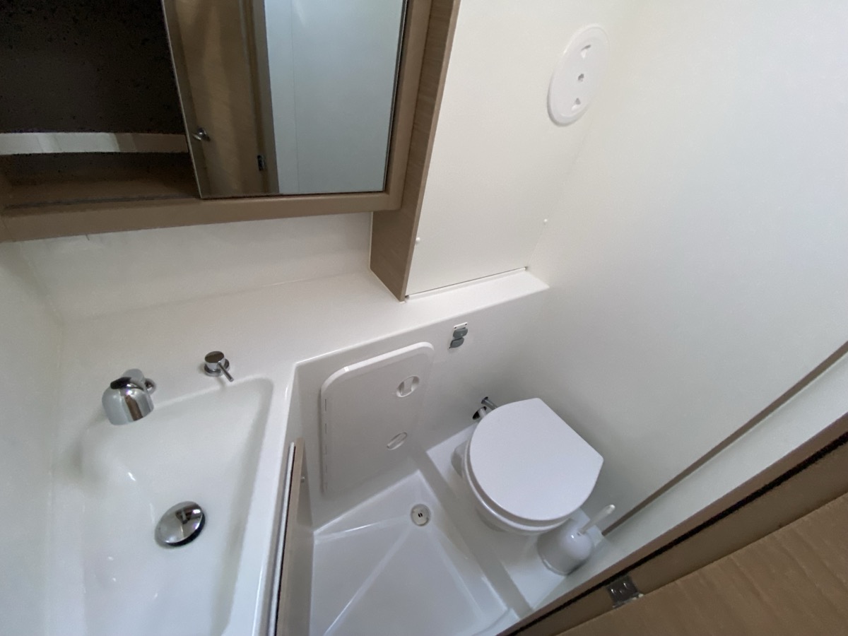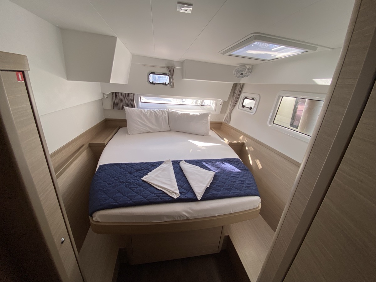 | Inside | Backofen, Inverter 12V/220V, Kaffeemaschine, Klimaanlage (Landstrom), Landstromkabel, Mokkakanne, Pantryausstattung, Radio, Salontisch absenkbar, USB Steckdosen in den Kabinen, Ventilator, Ventilatoren in Kabinen, Warmwasser, Watermaker, WC (elektr.) |