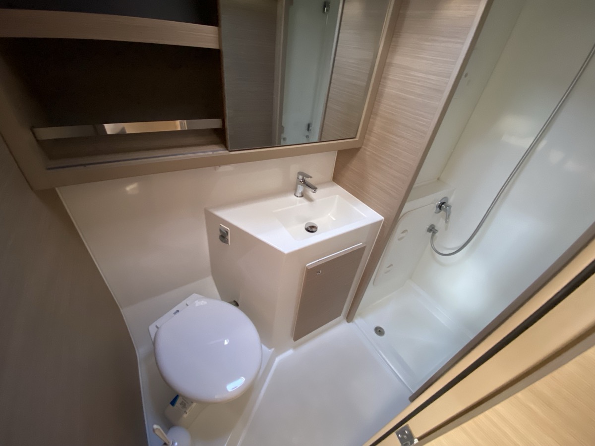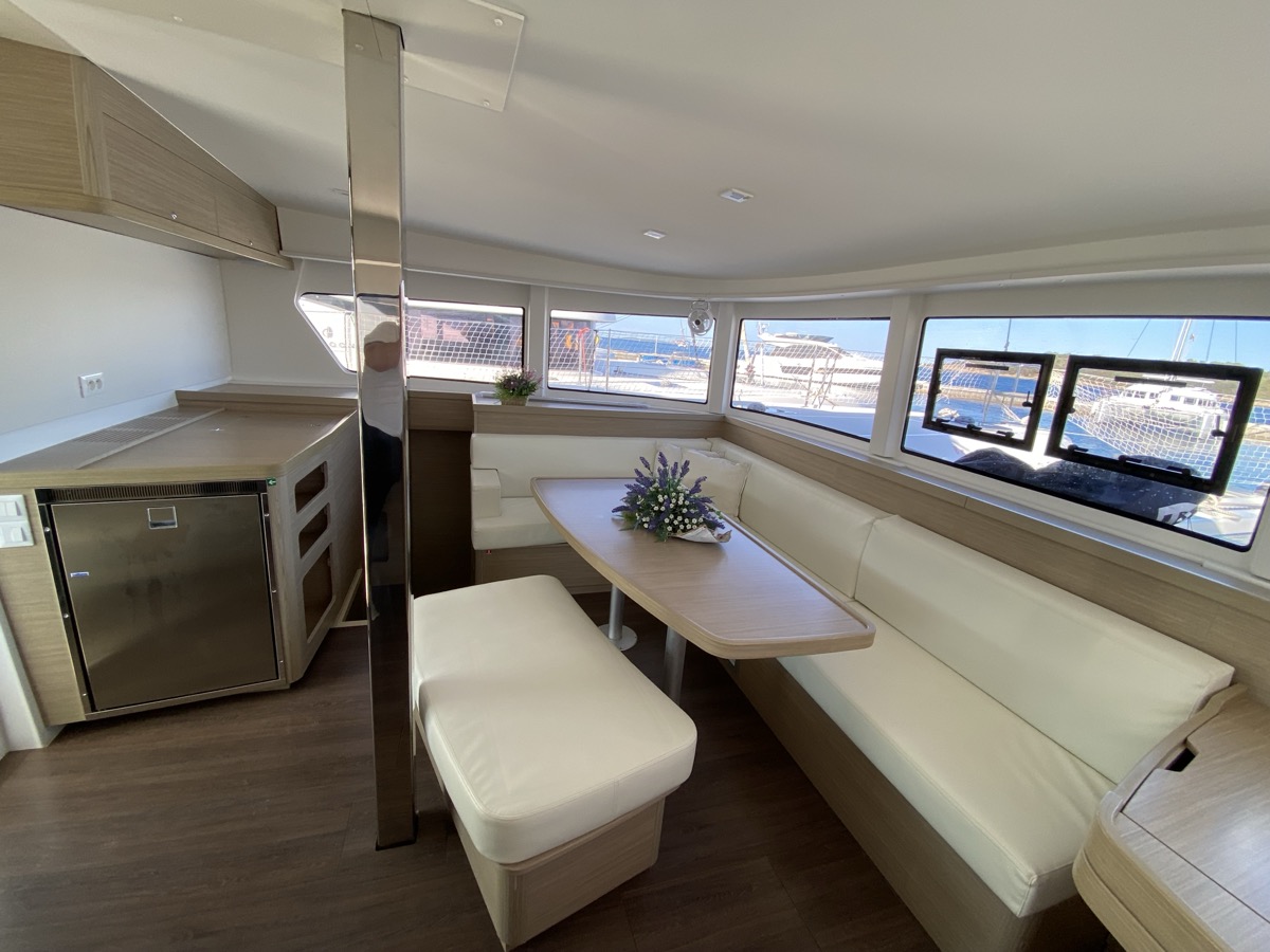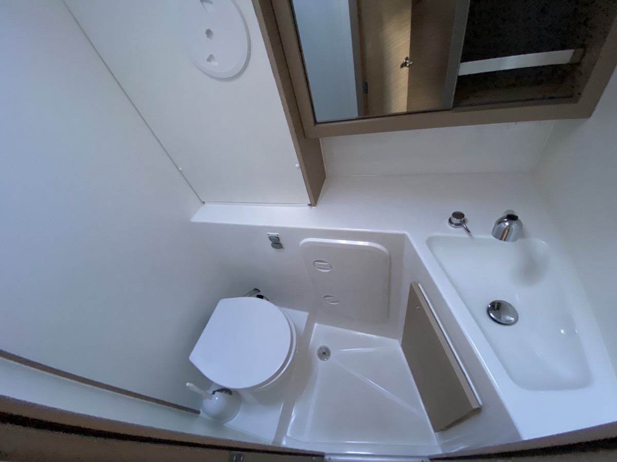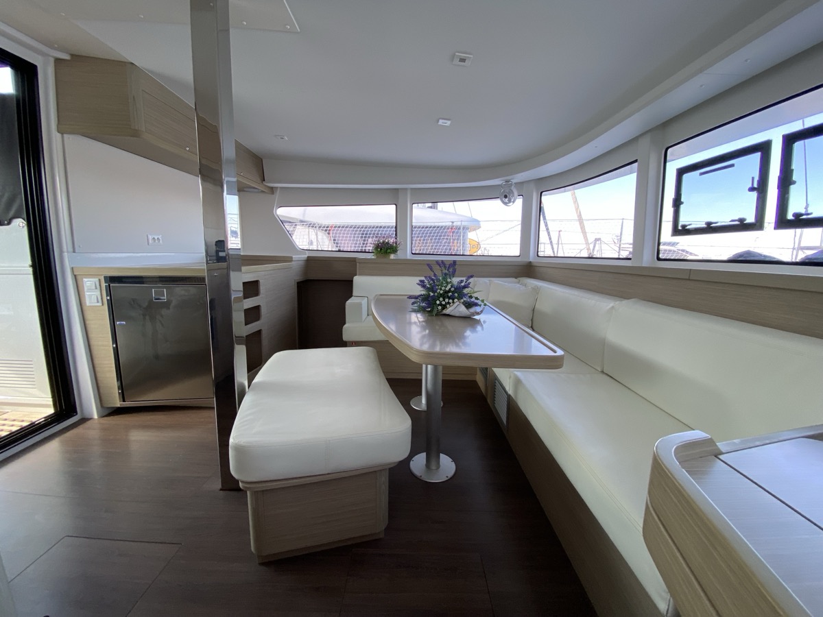 | Inside | Backofen, Inverter 12V/220V, Kaffeemaschine, Klimaanlage (Landstrom), Landstromkabel, Mokkakanne, Pantryausstattung, Radio, Salontisch absenkbar, USB Steckdosen in den Kabinen, Ventilator, Ventilatoren in Kabinen, Warmwasser, Watermaker, WC (elektr.) |