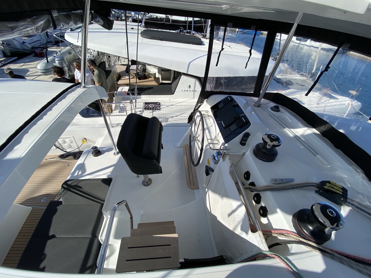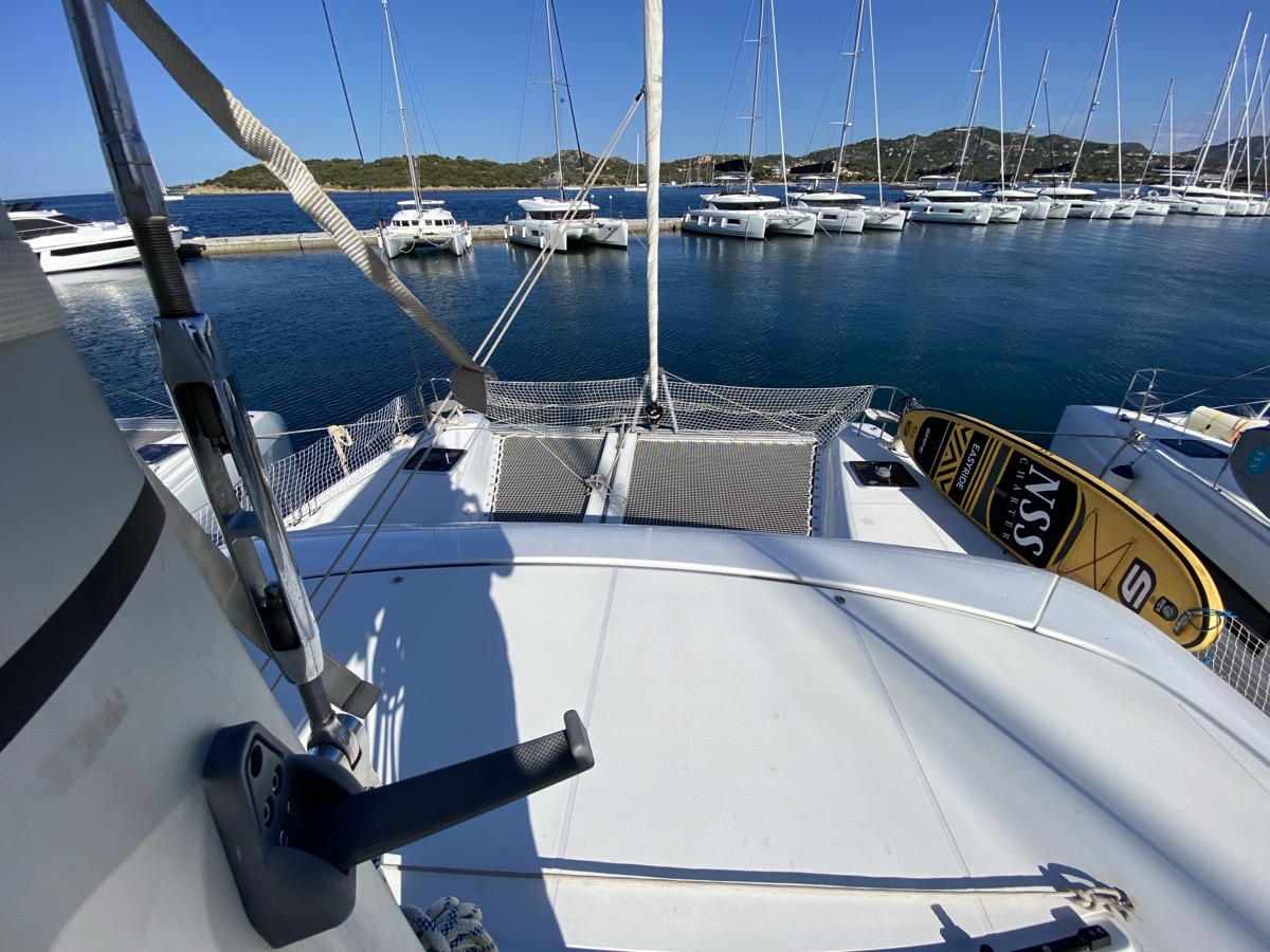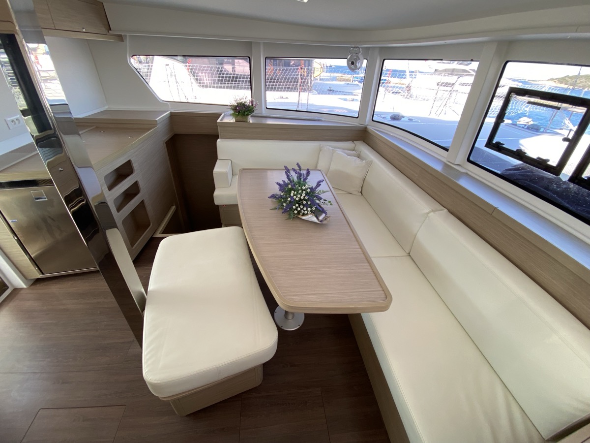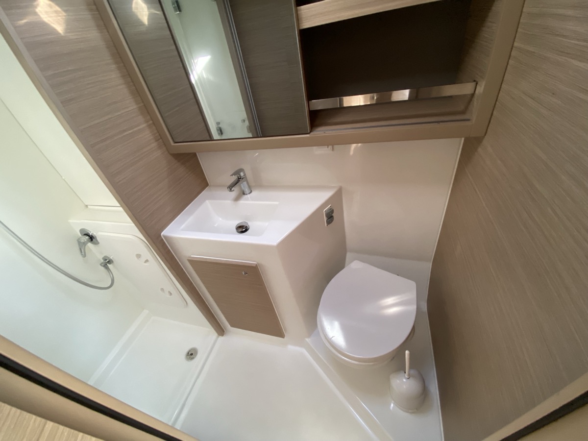 | Inside | Backofen, Inverter 12V/220V, Kaffeemaschine, Klimaanlage (Landstrom), Landstromkabel, Mokkakanne, Pantryausstattung, Radio, Salontisch absenkbar, USB Steckdosen in den Kabinen, Ventilator, Ventilatoren in Kabinen, Warmwasser, Watermaker, WC (elektr.) |