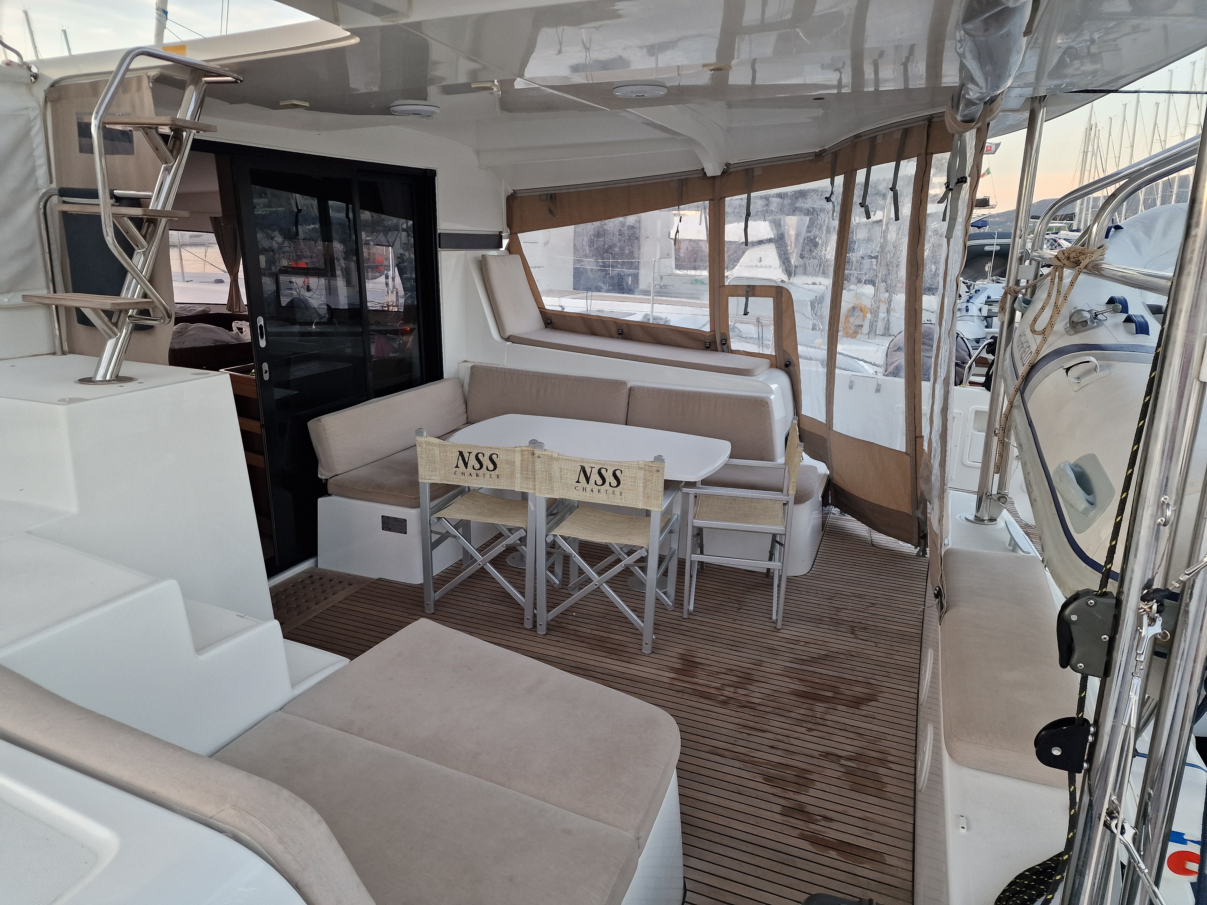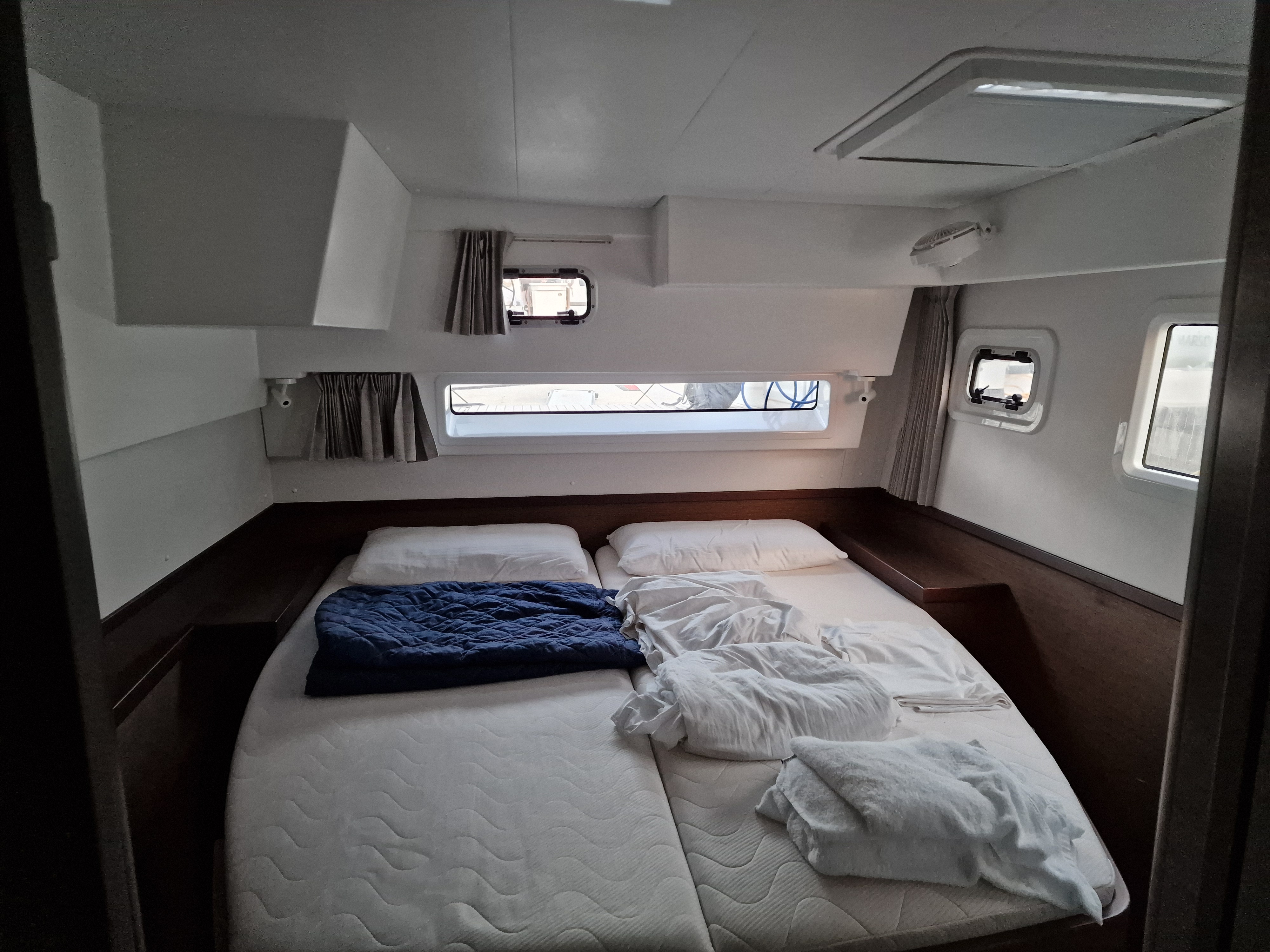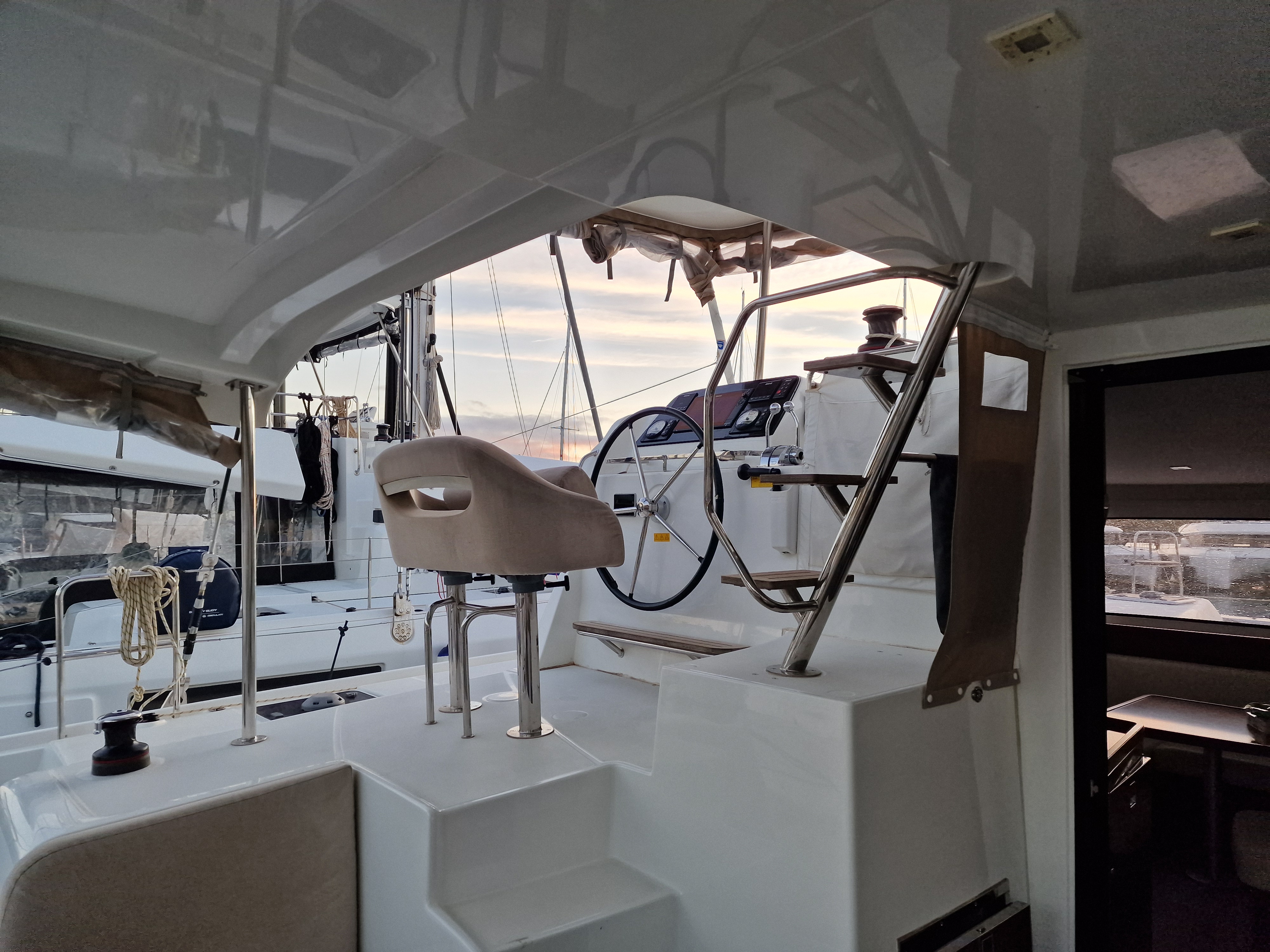 | Inside | Backofen, Inverter 12V/220V, Landstromkabel, Mokkakanne, Pantryausstattung, Radio, USB Steckdosen in den Kabinen, Ventilatoren in Kabinen, Warmwasser, Watermaker, WC (elektr.) |