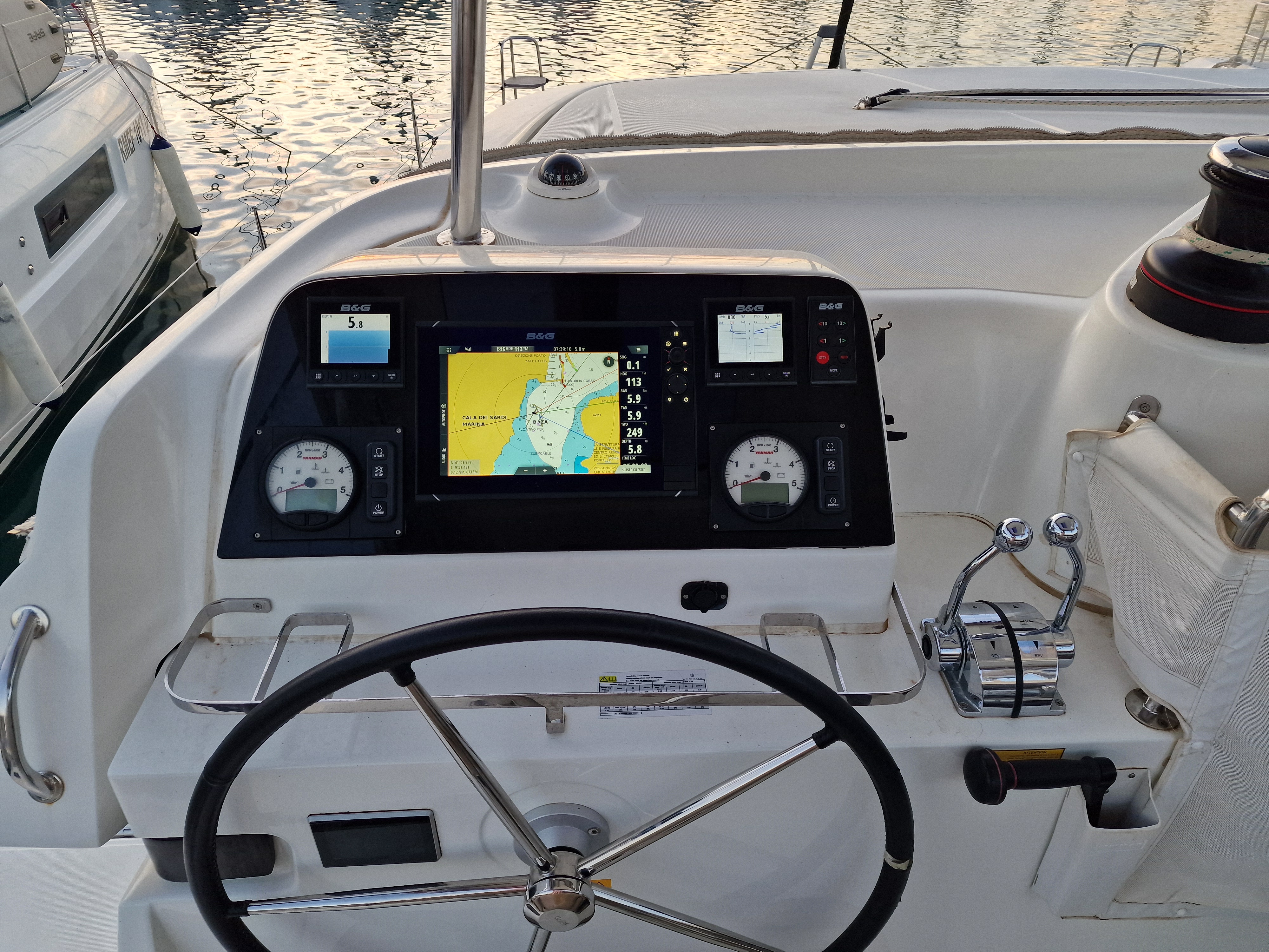 | Navigation | GPS mit Kartenplotter im Cockpit, Windmesser |