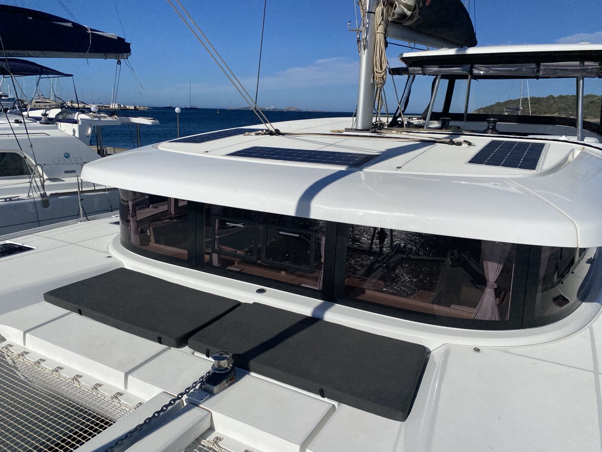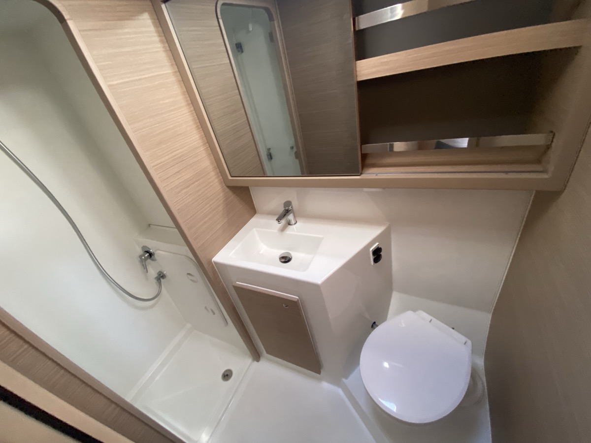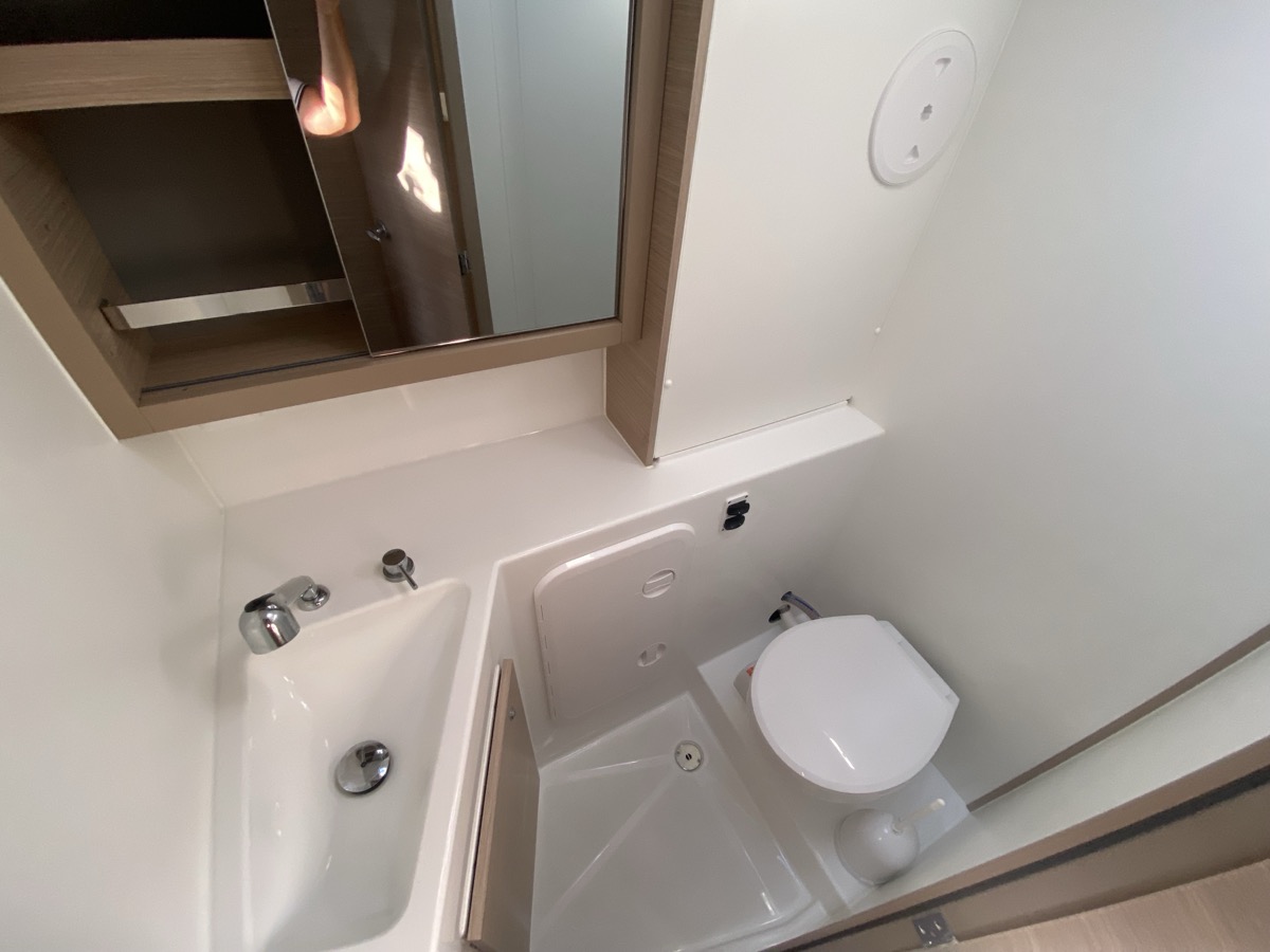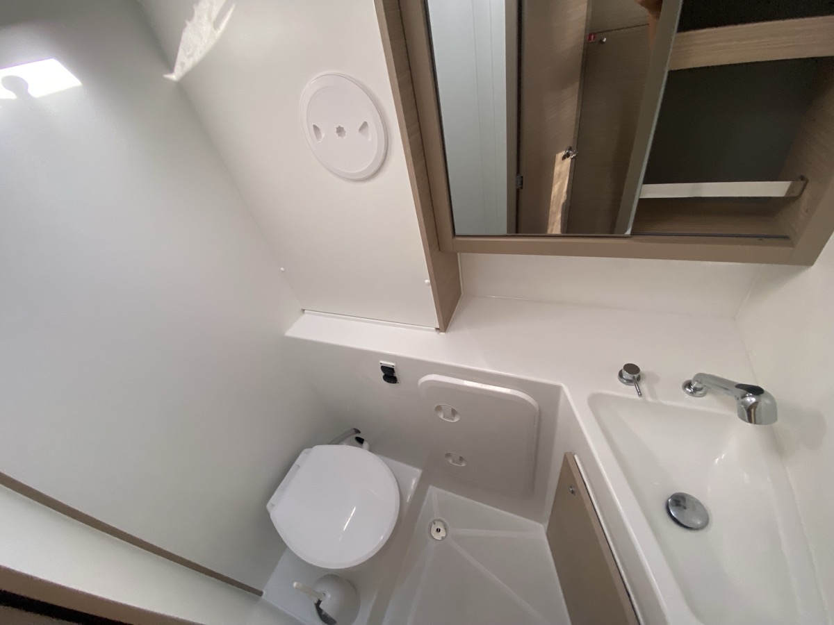 | Inside | Backofen, Inverter 12V/220V, Kaffeemaschine, Klimaanlage (Landstrom), Landstromkabel, Mokkakanne, Pantryausstattung, Radio, Salontisch absenkbar, USB Steckdosen in den Kabinen, Ventilator, Ventilatoren in Kabinen, Warmwasser, Watermaker, WC (elektr.), Wechselrichter |