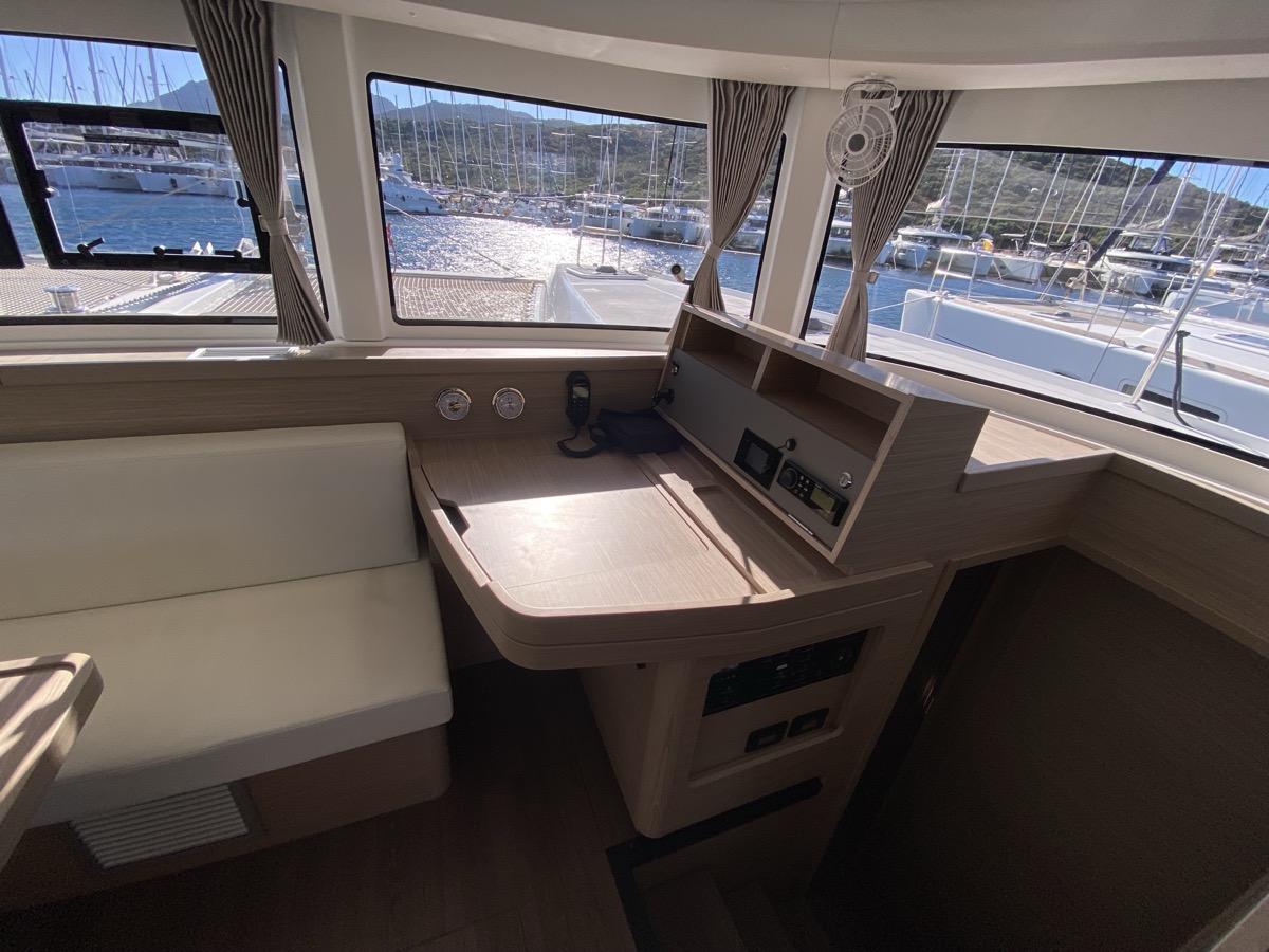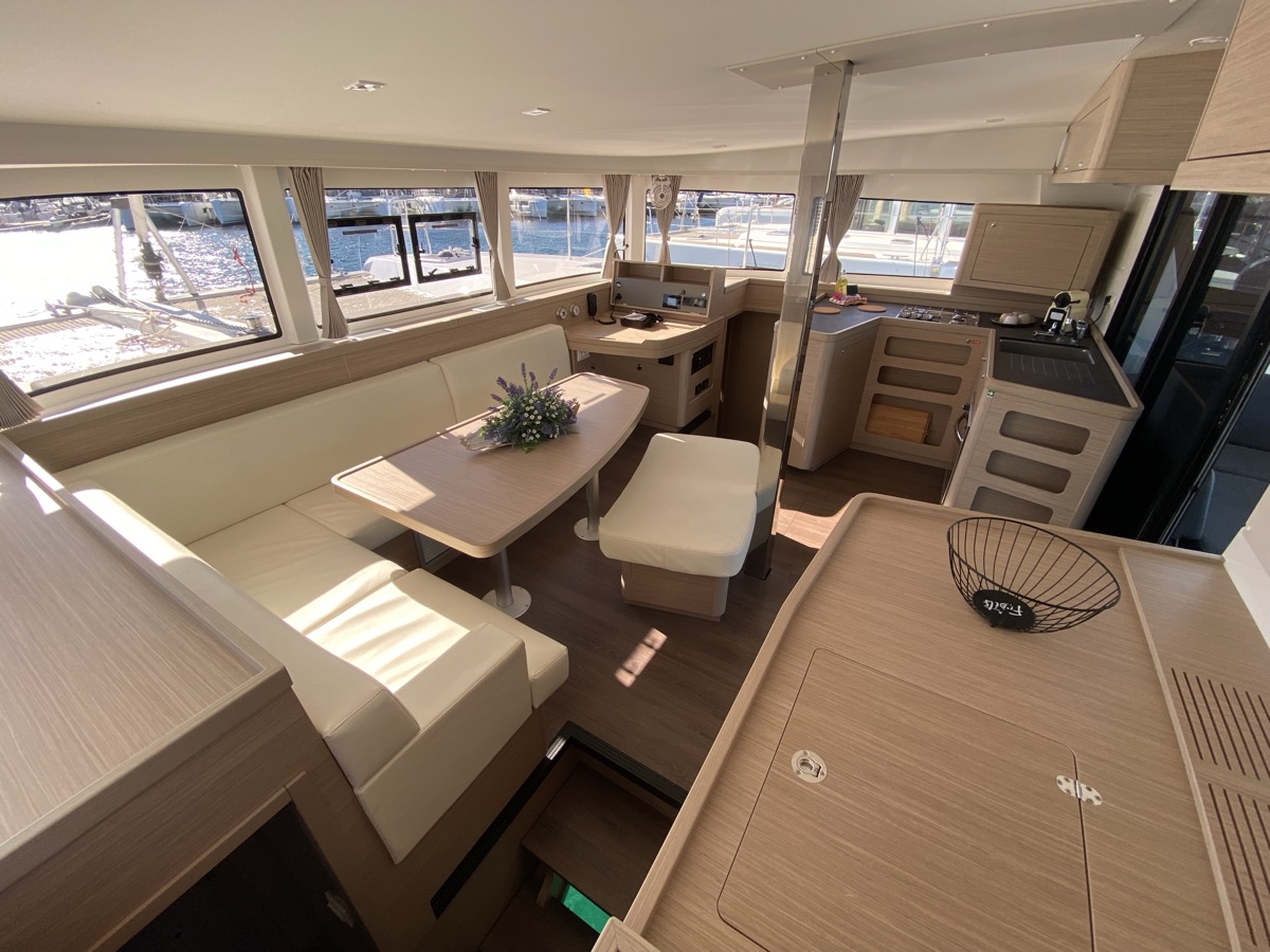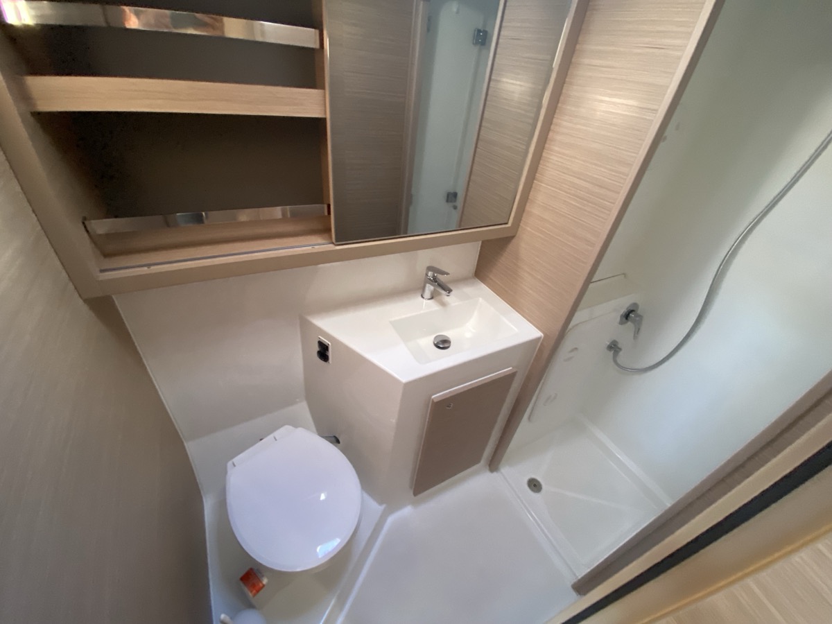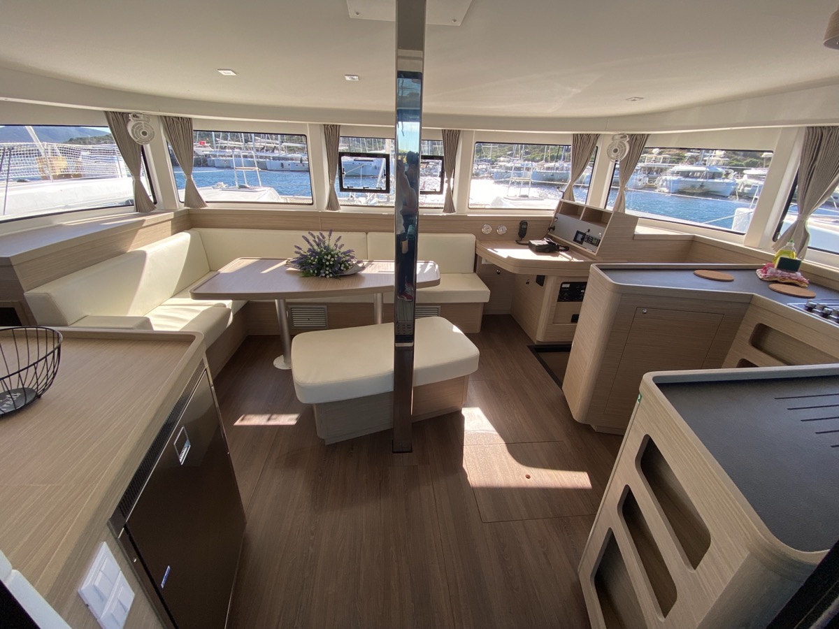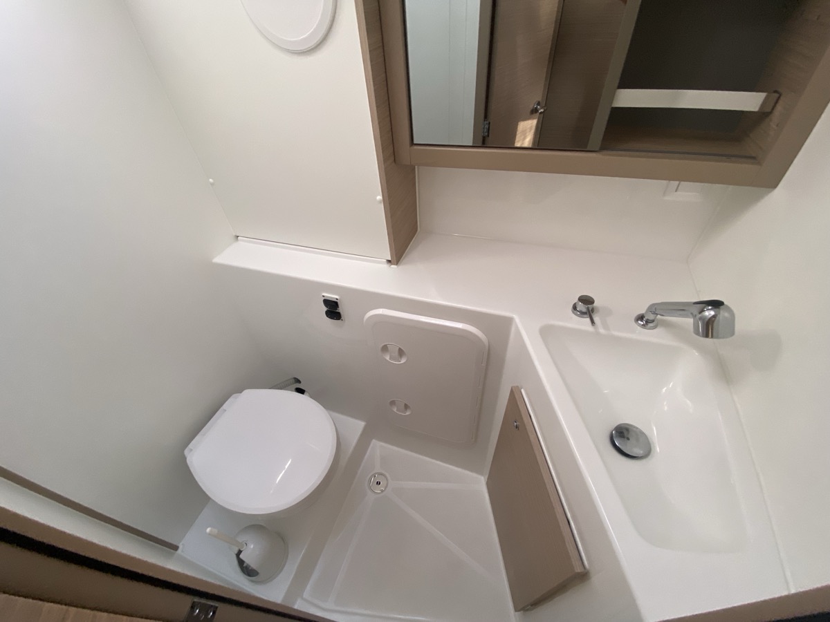| Inside | Backofen, Inverter 12V/220V, Kaffeemaschine, Klimaanlage (Landstrom), Landstromkabel, Mokkakanne, Pantryausstattung, Radio, Salontisch absenkbar, USB Steckdosen in den Kabinen, Ventilator, Ventilatoren in Kabinen, Warmwasser, Watermaker, WC (elektr.), Wechselrichter |