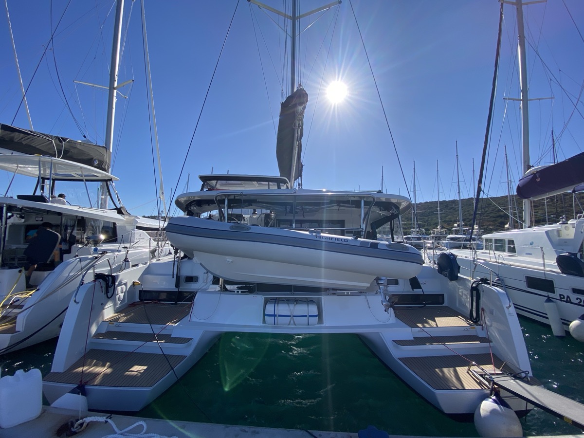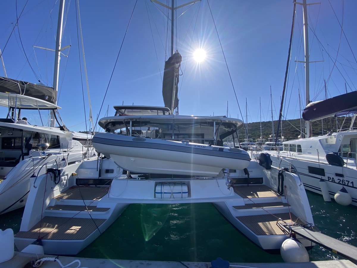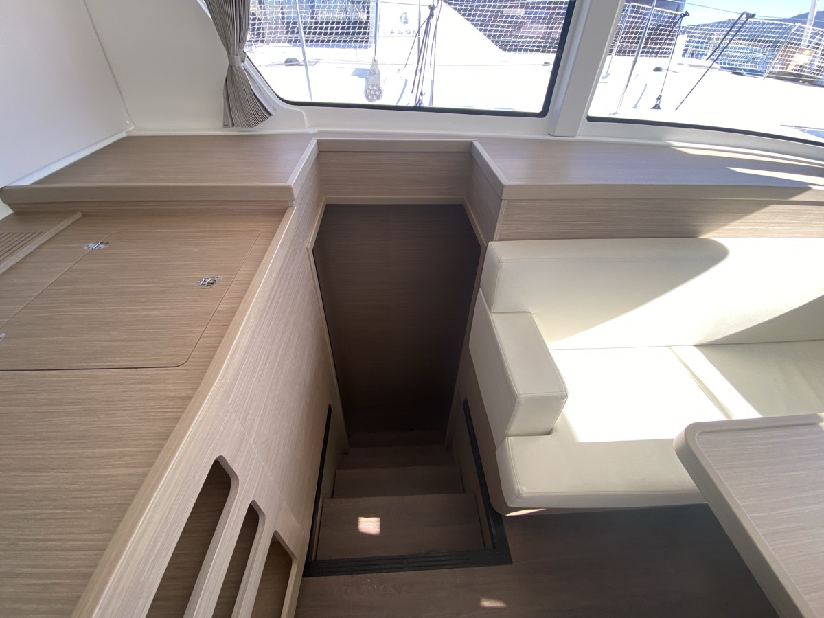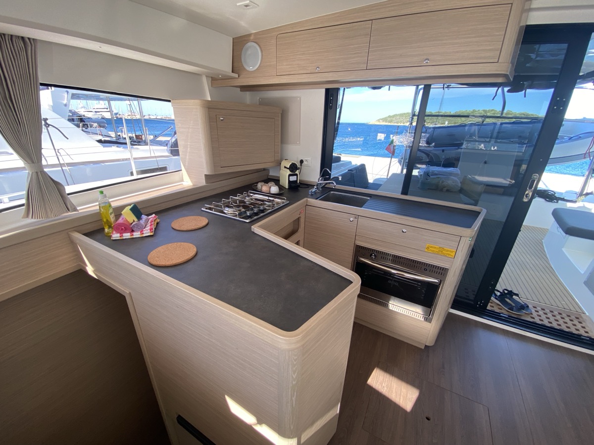 | Inside | Backofen, Inverter 12V/220V, Kaffeemaschine, Klimaanlage (Landstrom), Landstromkabel, Mokkakanne, Pantryausstattung, Radio, Salontisch absenkbar, USB Steckdosen in den Kabinen, Ventilator, Ventilatoren in Kabinen, Warmwasser, Watermaker, WC (elektr.), Wechselrichter |
