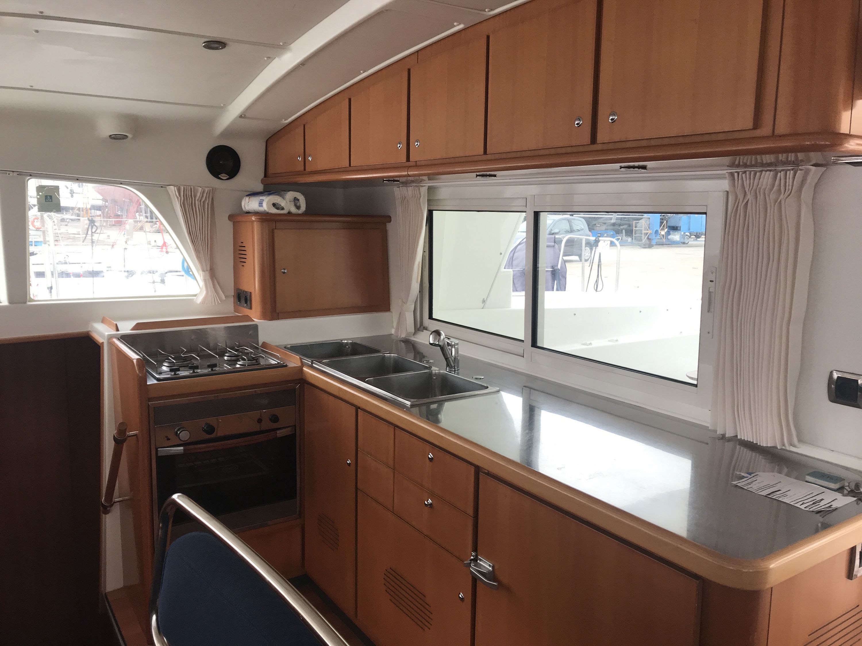 | Inside | Backofen, Generator, Kühlschrank, Landstromkabel, Mokkakanne, Pantryausstattung, Radio, Radio mit CD, Salontisch absenkbar, Ventilator, Ventilatoren in Kabinen, Warmwasser |