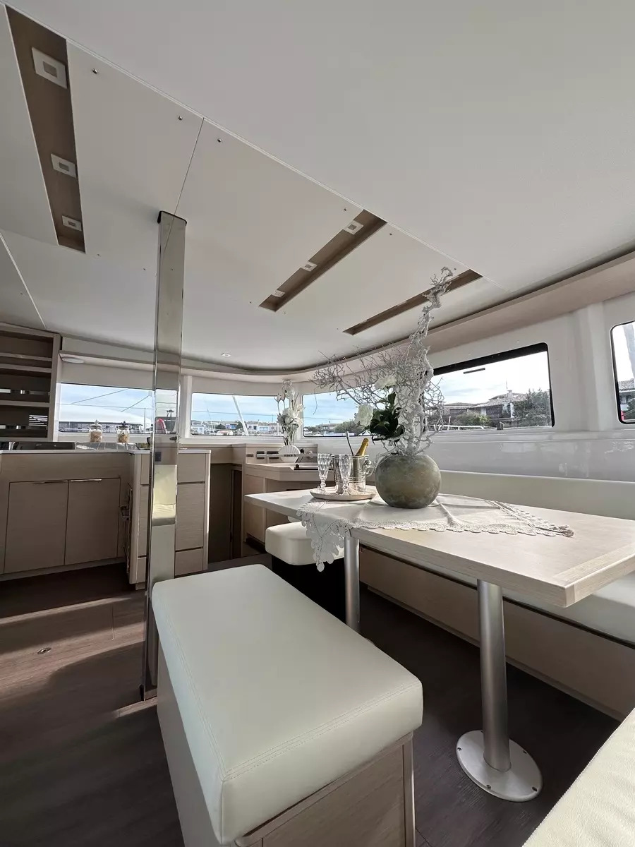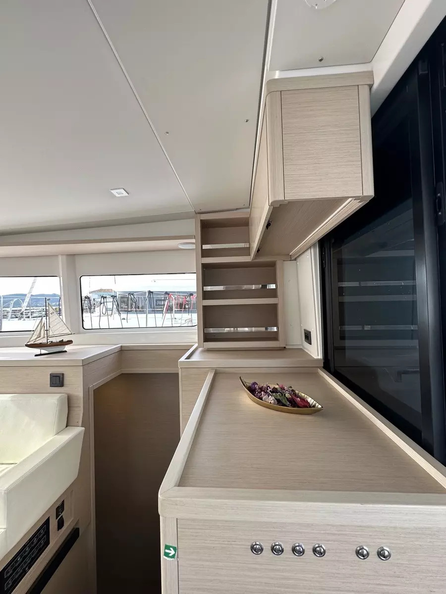 | Inside | Backofen, Generator, Inverter 12V/220V, Kaffeemaschine, Klimaanlage (ohne Landstrombedarf), Landstromkabel, Mokkakanne, Pantryausstattung, Radio, USB Steckdosen in den Kabinen, Ventilator, Ventilatoren in Kabinen, Warmwasser, Watermaker, WC (elektr.) |