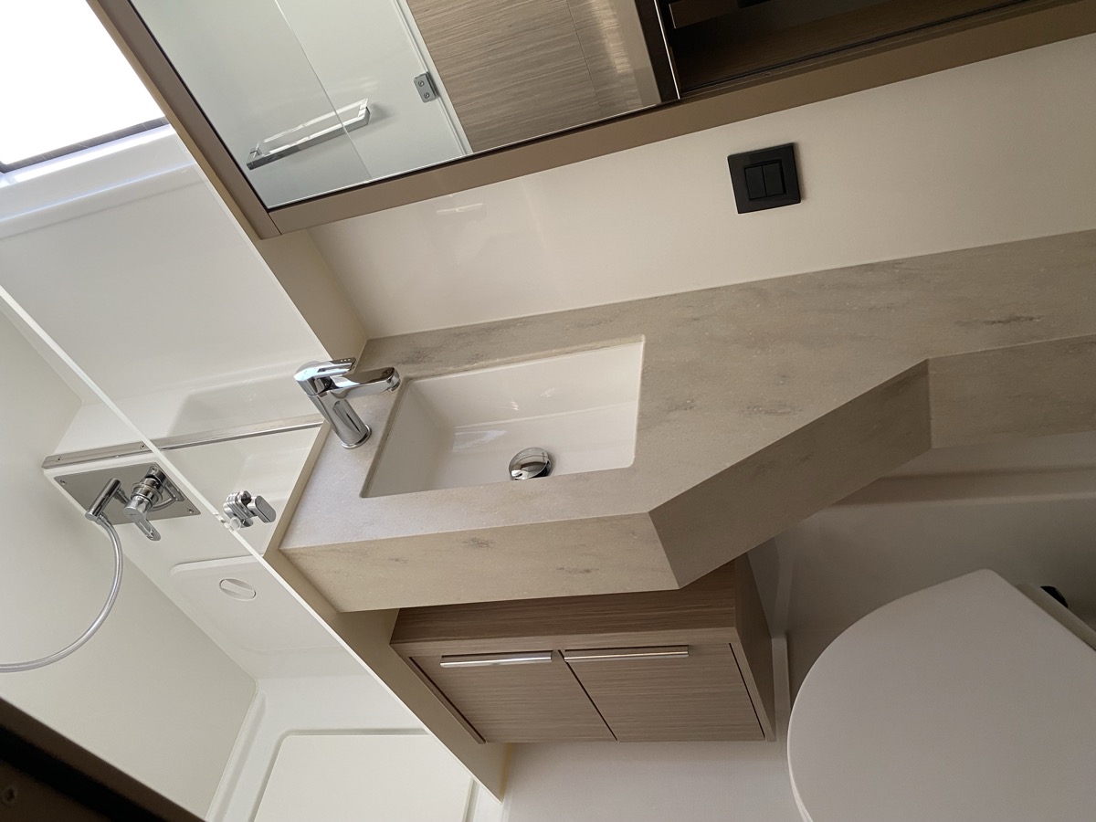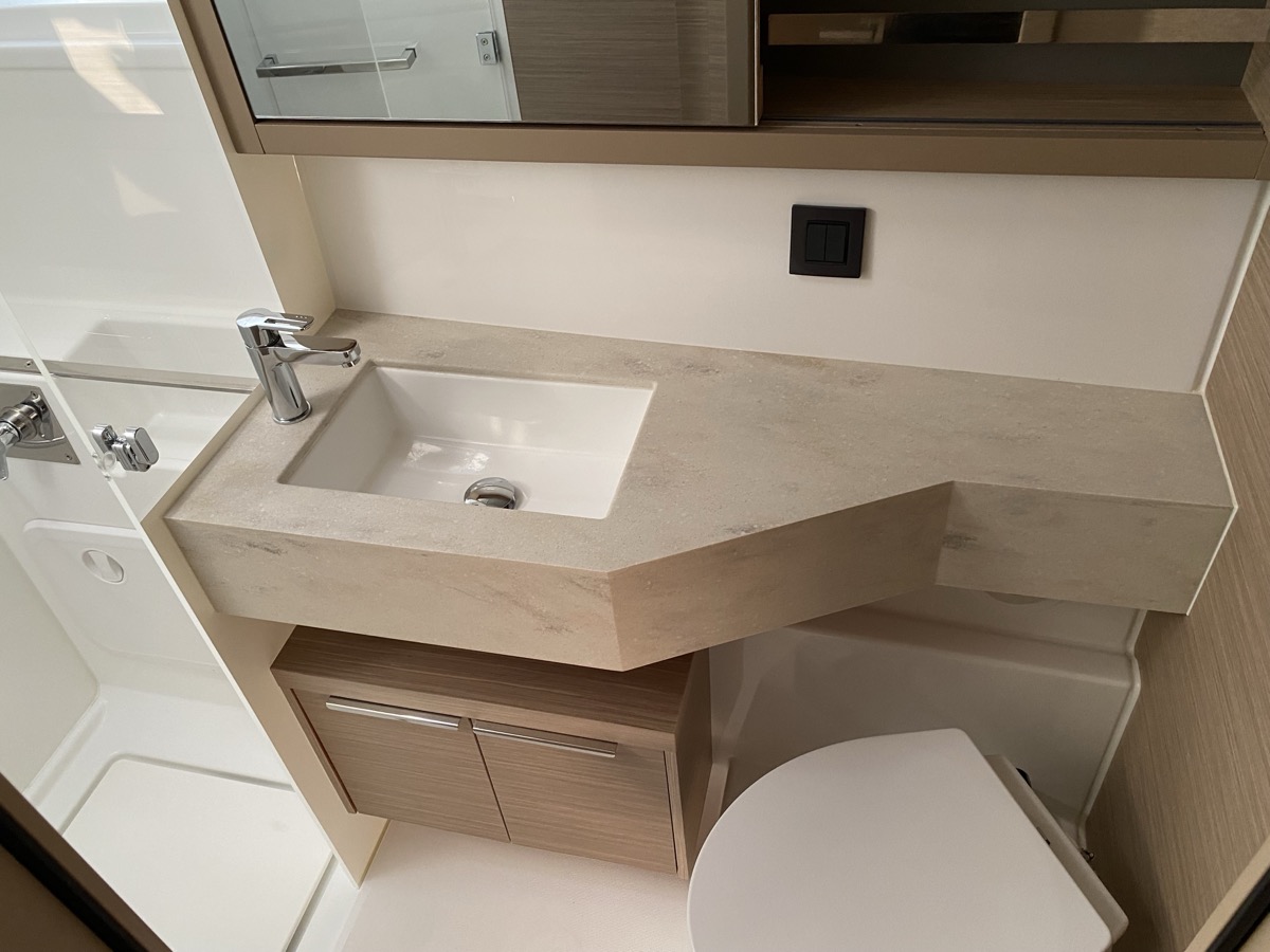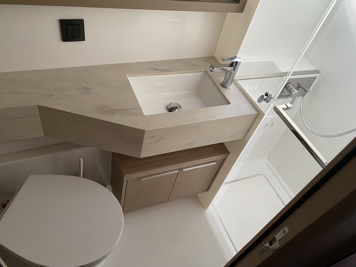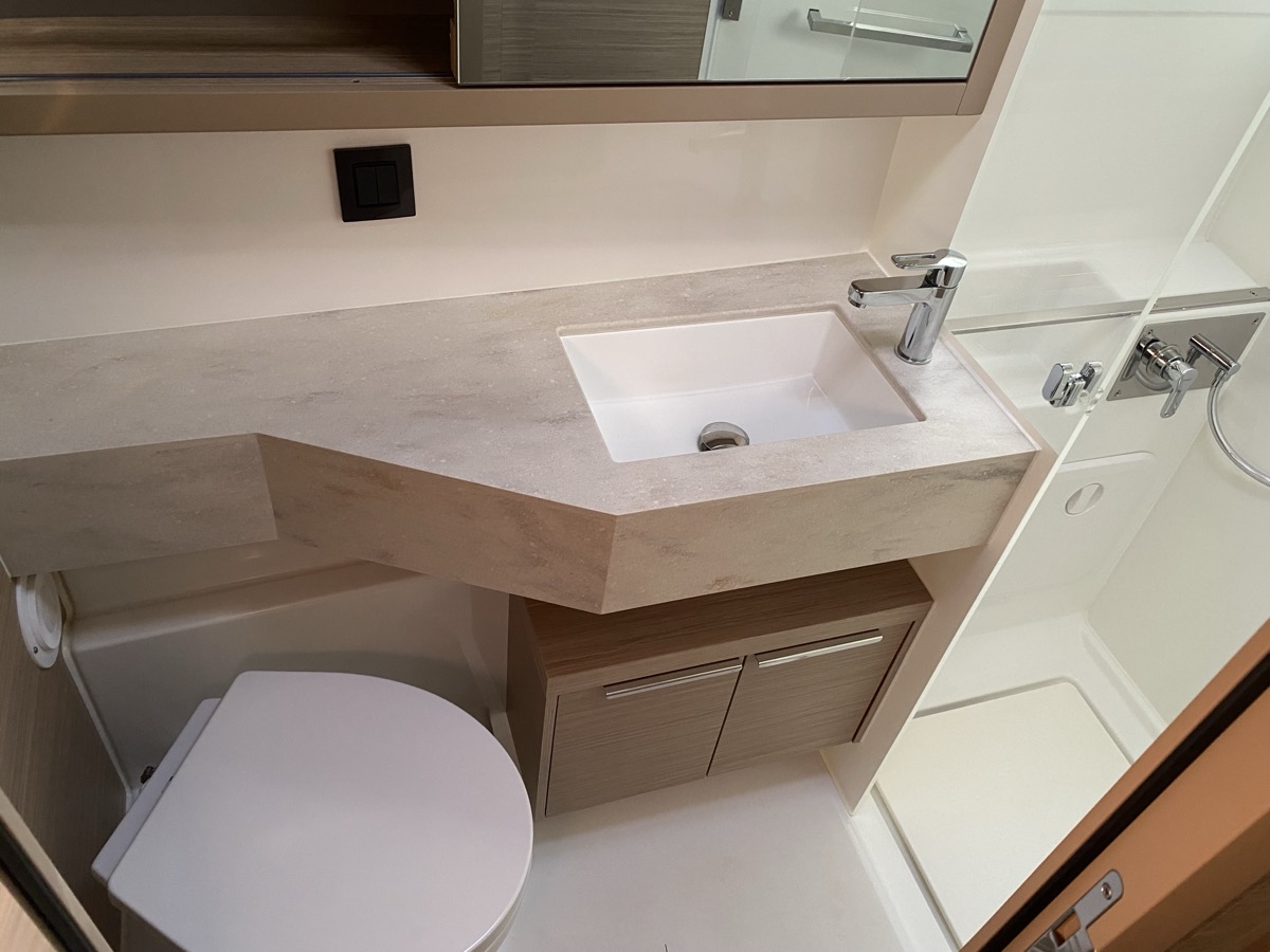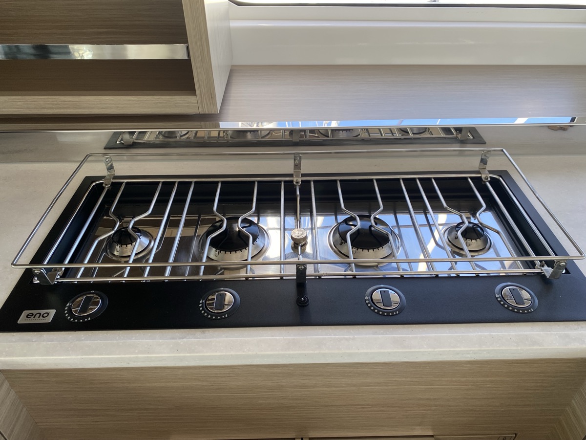 | Inside | Backofen, Generator, Inverter 12V/220V, Kaffeemaschine, Klimaanlage (ohne Landstrombedarf), Landstromkabel, Mokkakanne, Pantryausstattung, Radio, USB Steckdosen in den Kabinen, Ventilatoren in Kabinen, Warmwasser, Watermaker, WC (elektr.) |
