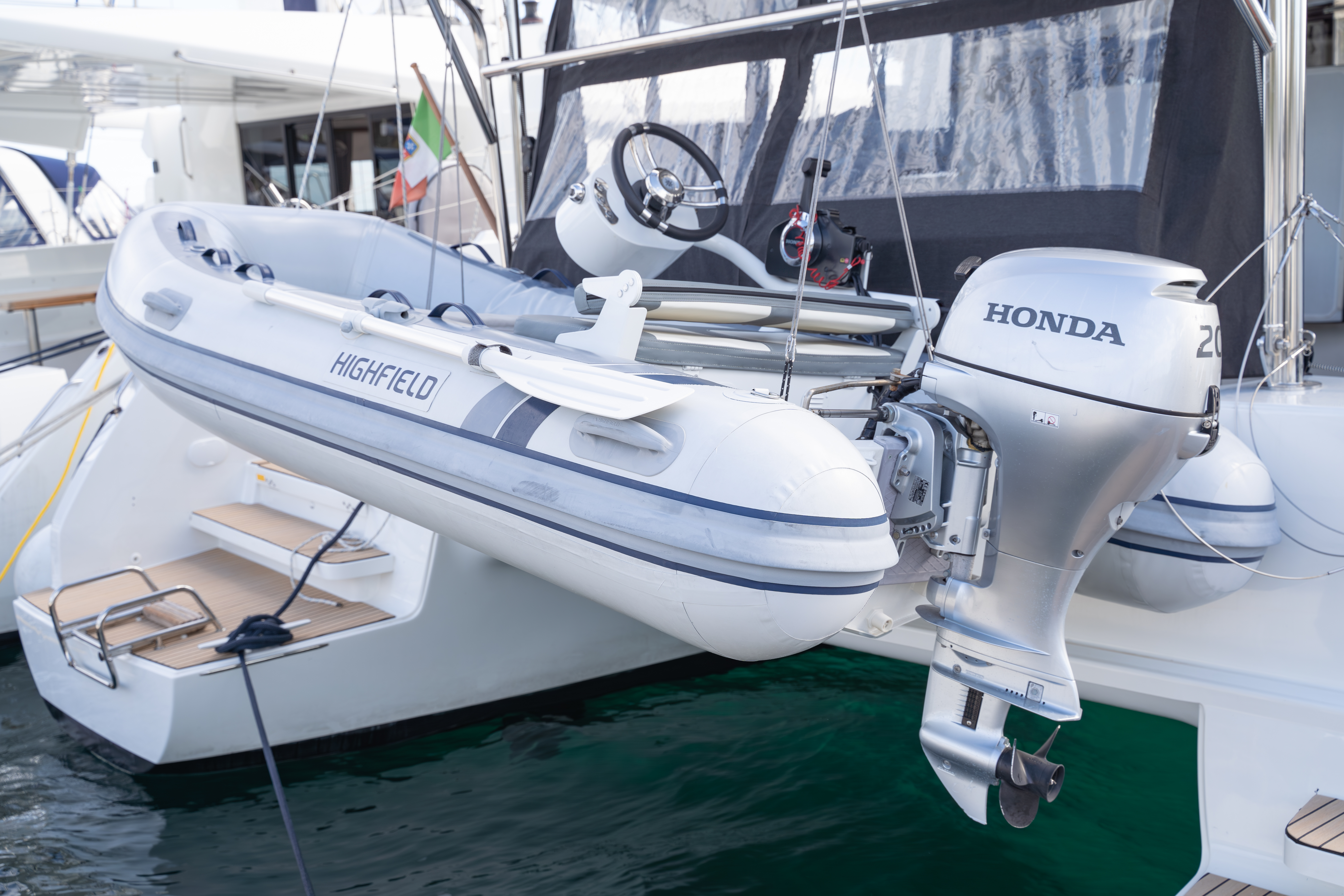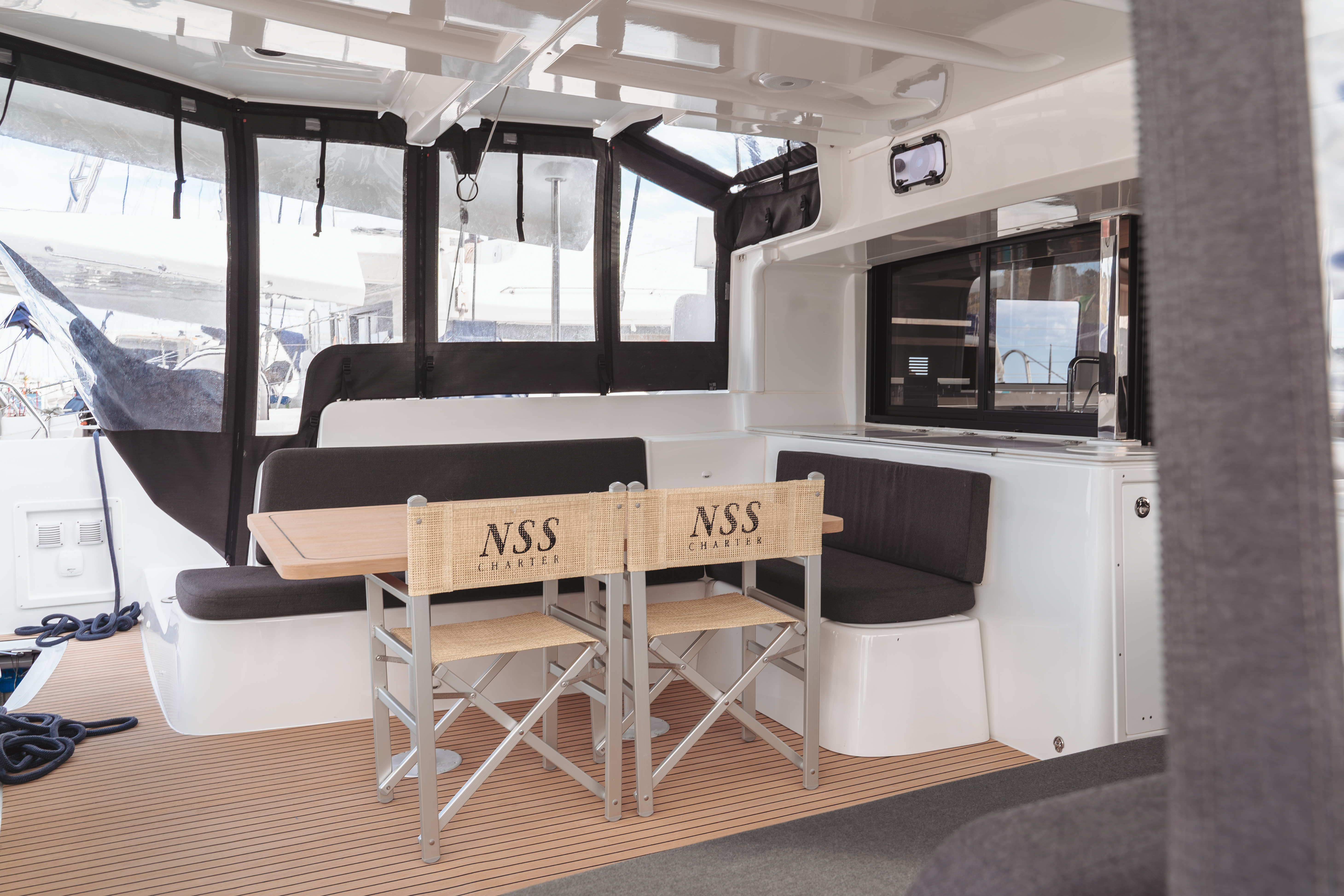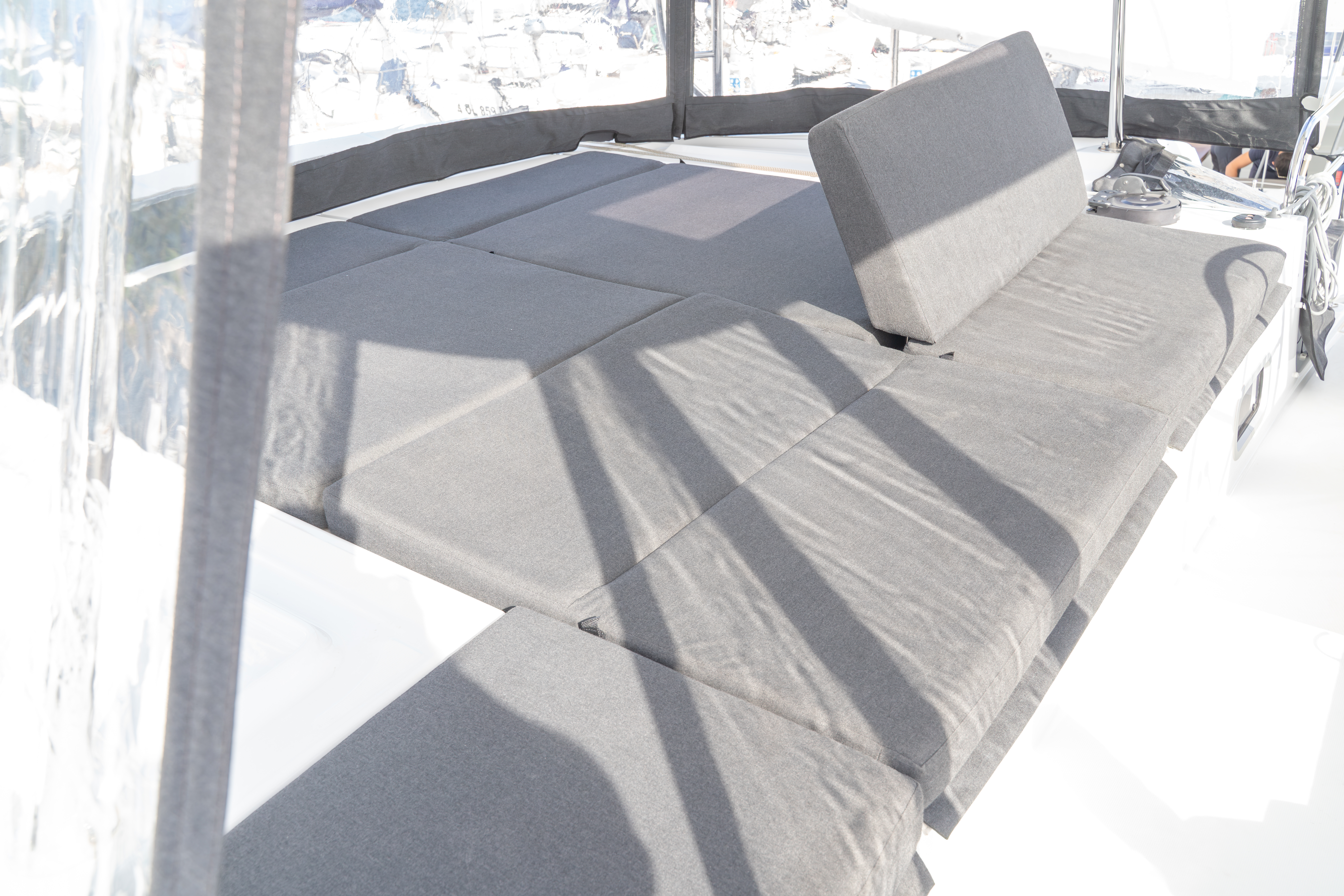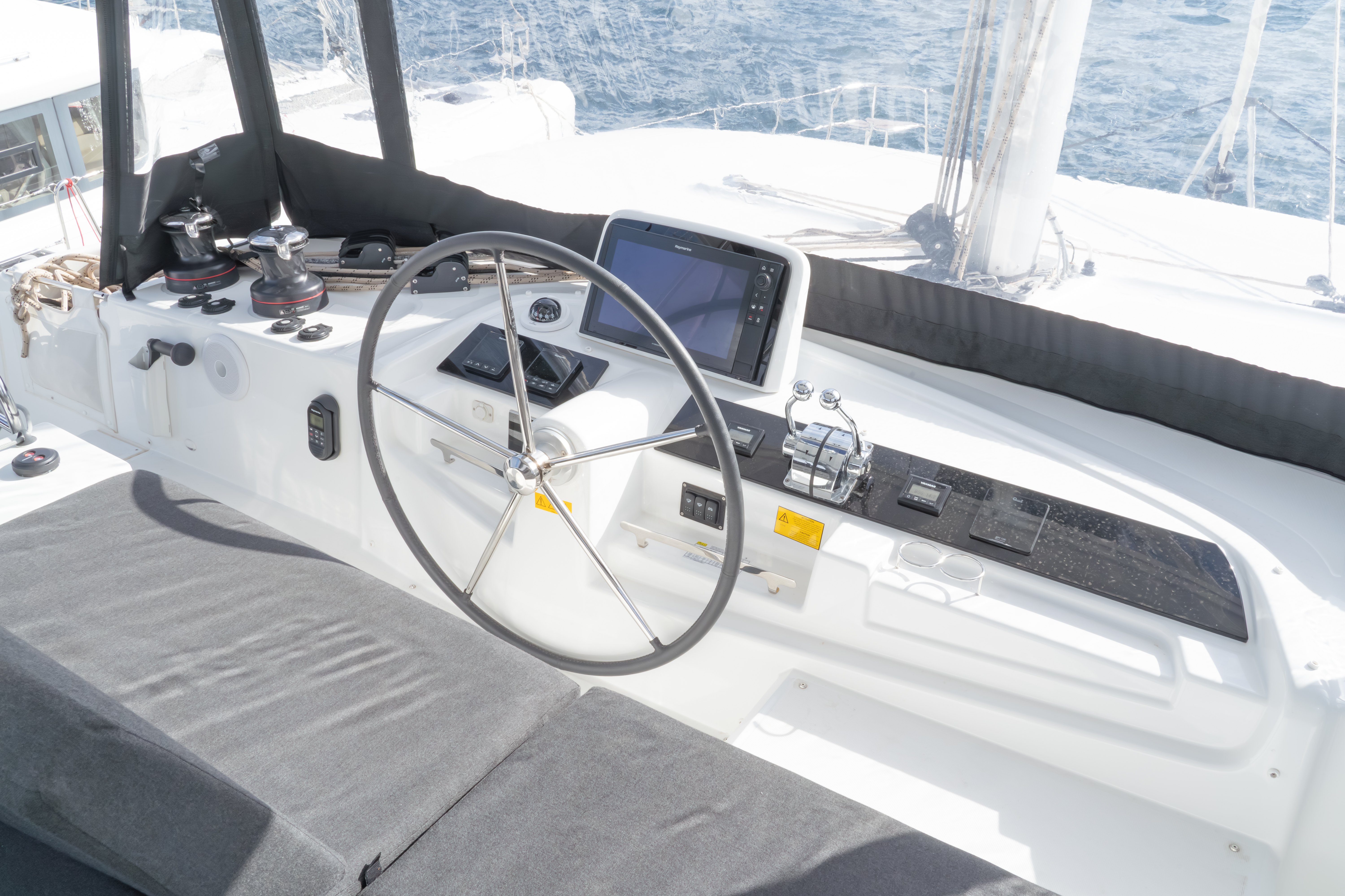 | Outside | Biminitop, Cockpitdusche, Cockpitkühlschrank, Cockpitlautsprecher, Cockpitpolster, Deckpolster, elektr. Ankerwinsch, elektr. Winsch |