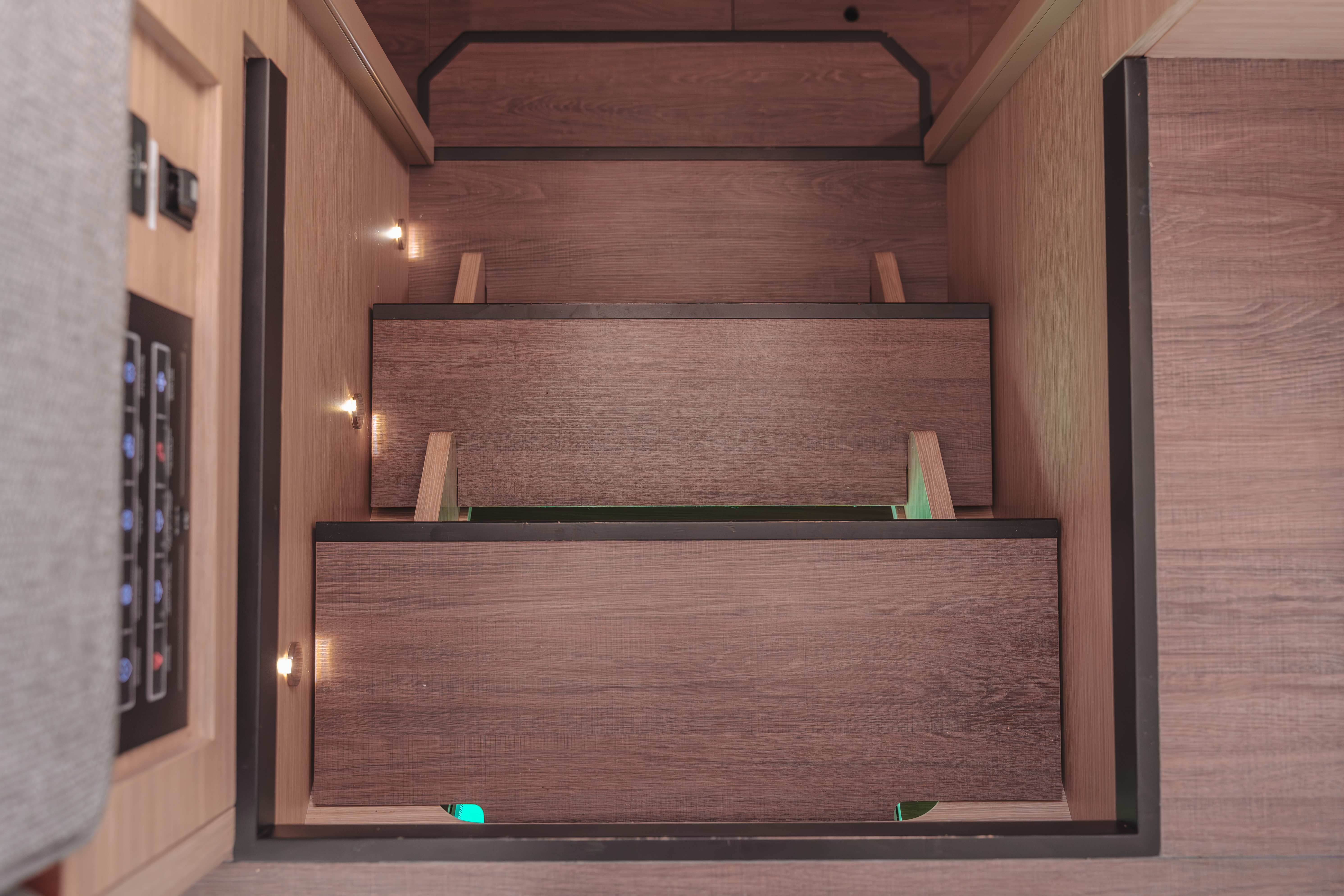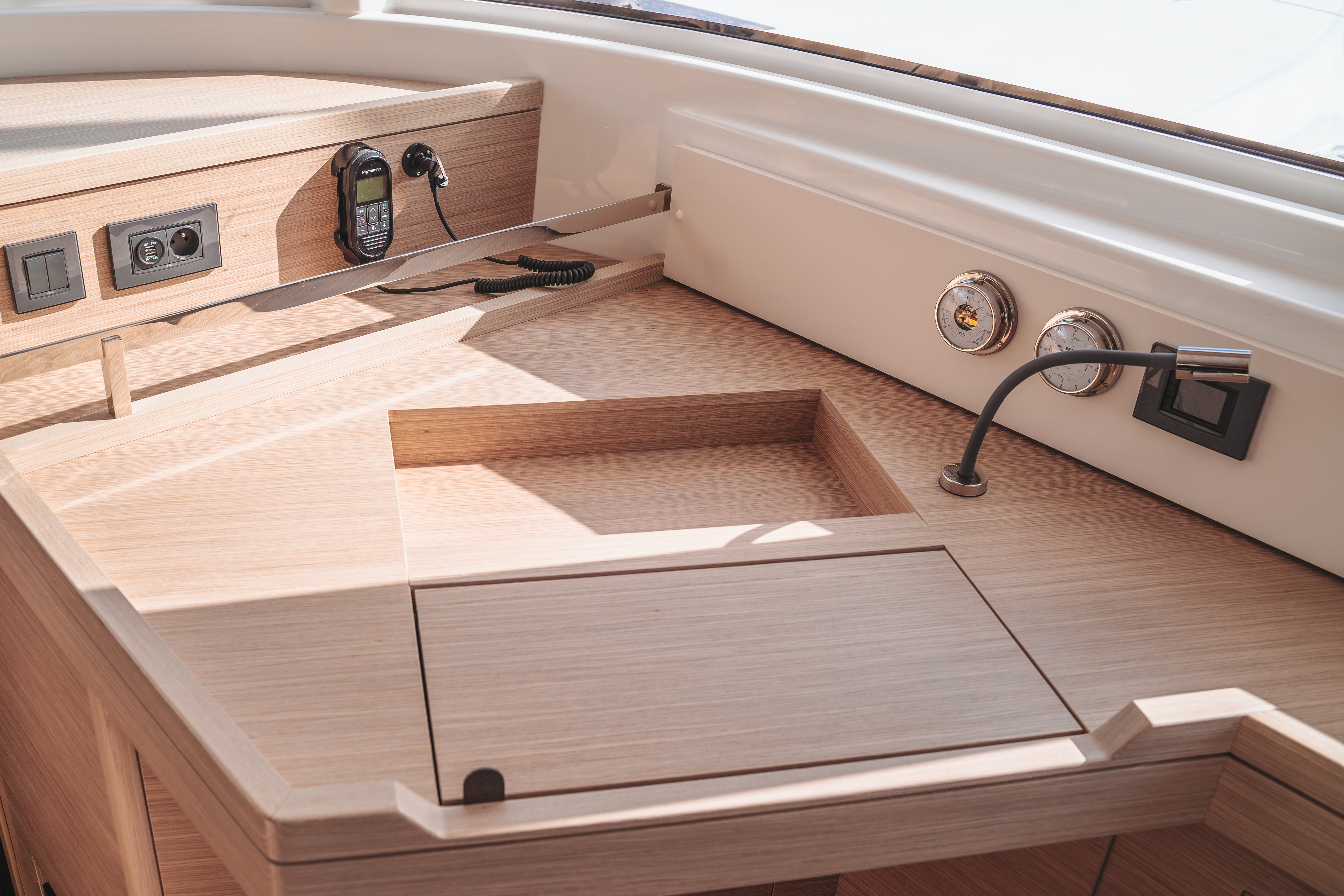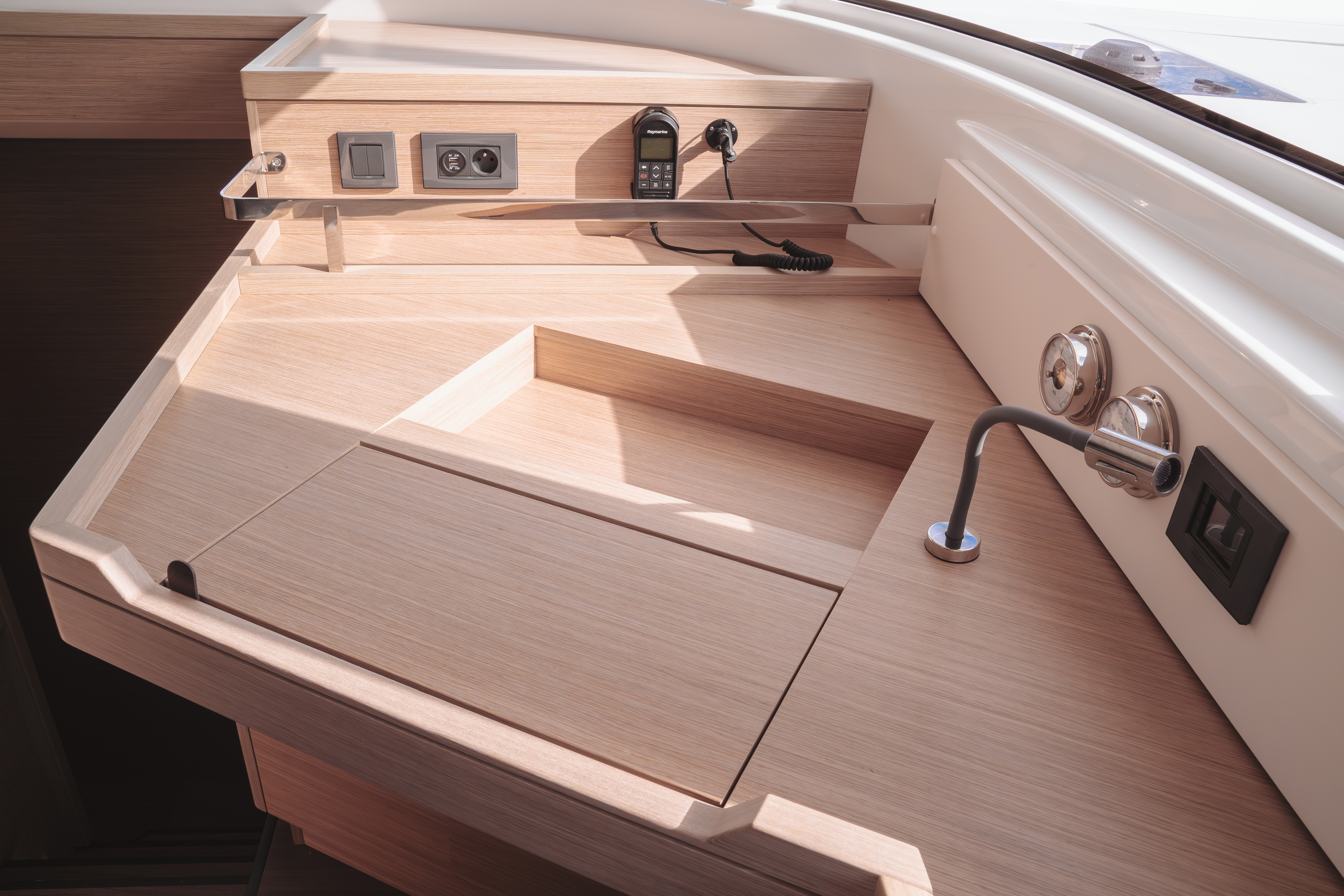 | Safety | Automatikwesten, Autopilot, Bootsmannstuhl, Bordapotheke, Feuerlöscher, Notpinne, Notsignale, Rettungsinsel, UKW-Funk, Zweitanker |