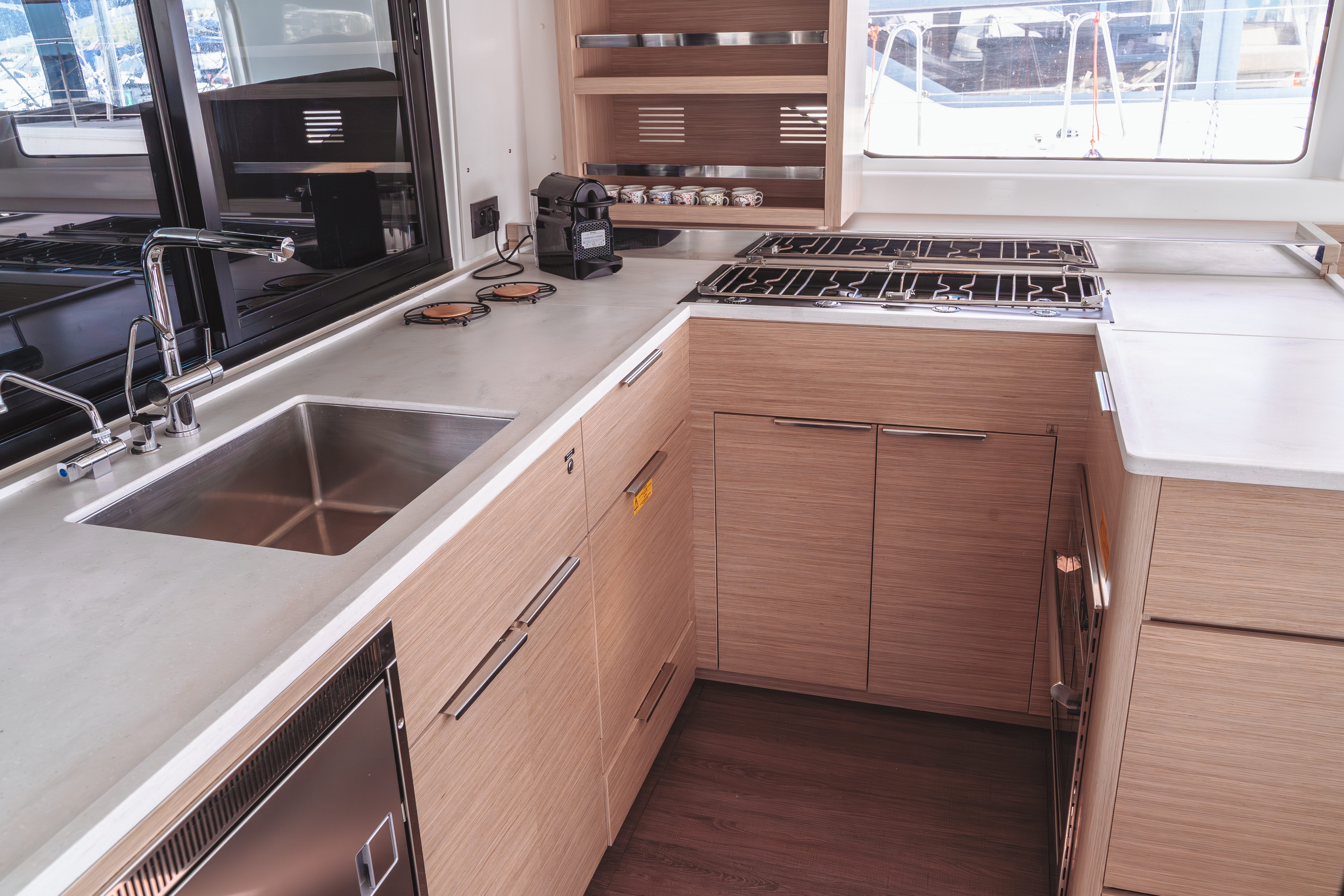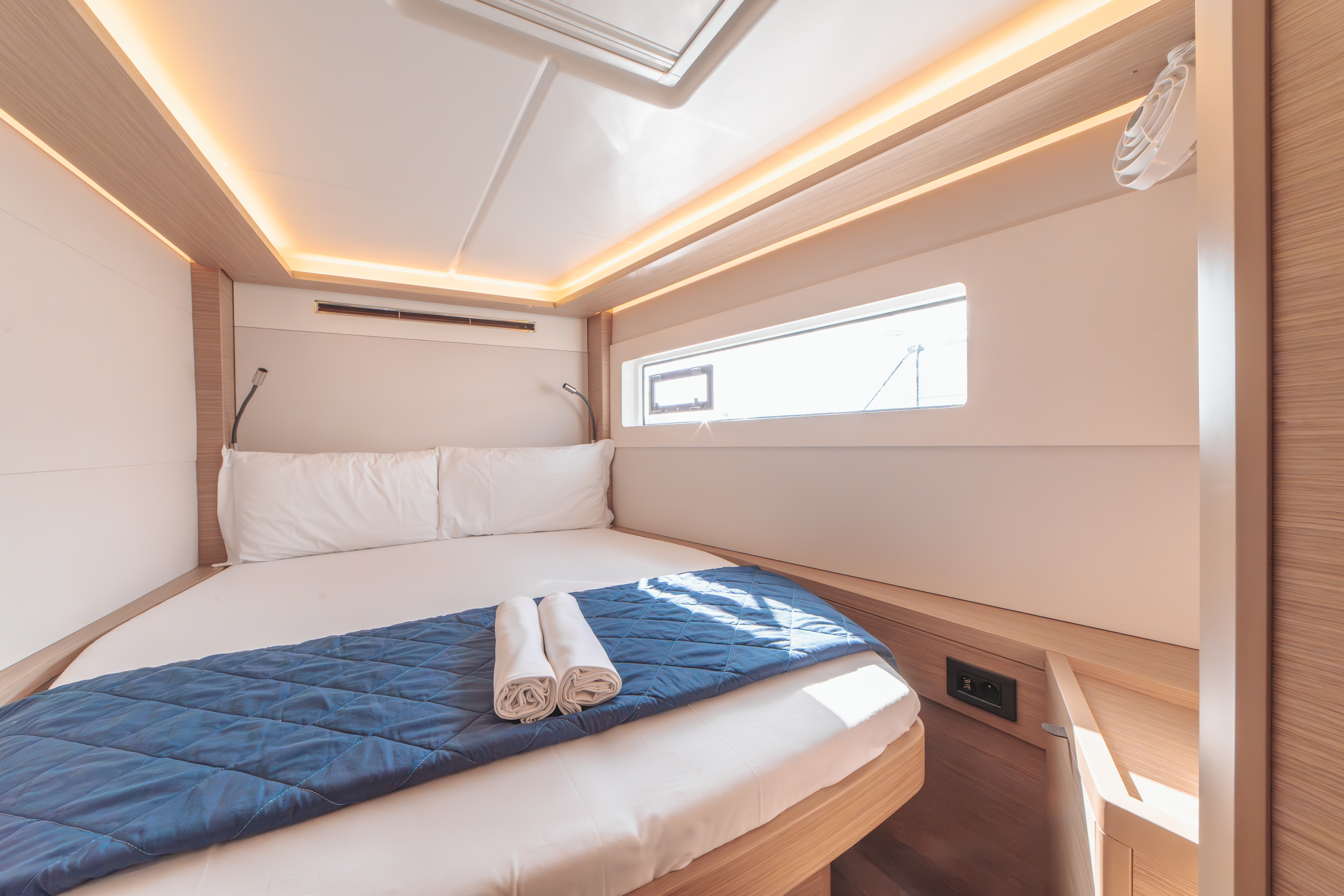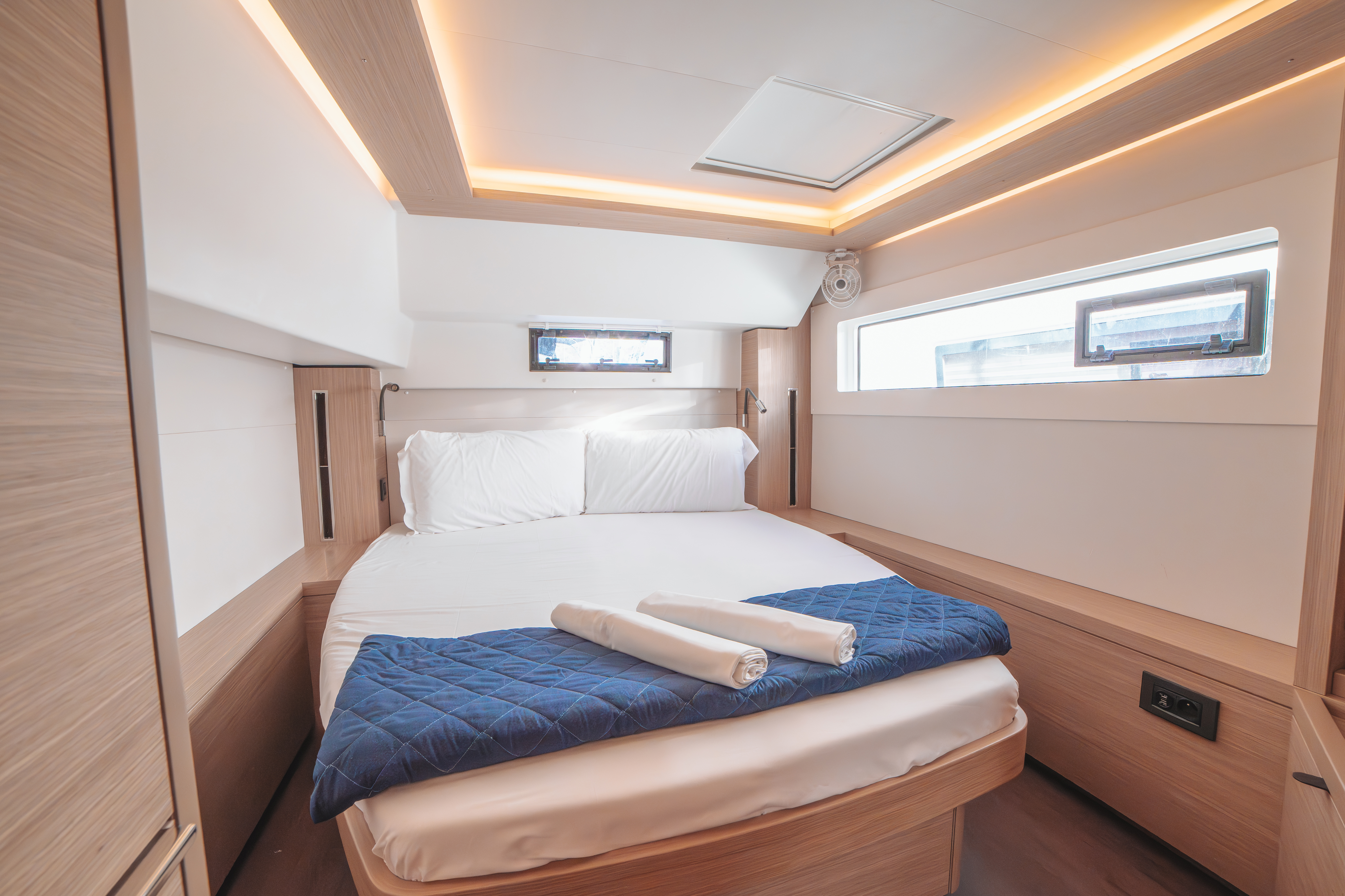 | Inside | Backofen, Generator, Inverter 12V/220V, Kaffeemaschine, Klimaanlage (ohne Landstrombedarf), Landstromkabel, Mokkakanne, Pantryausstattung, Radio, USB Steckdosen in den Kabinen, Ventilator, Ventilatoren in Kabinen, Warmwasser, Watermaker, WC (elektr.) |