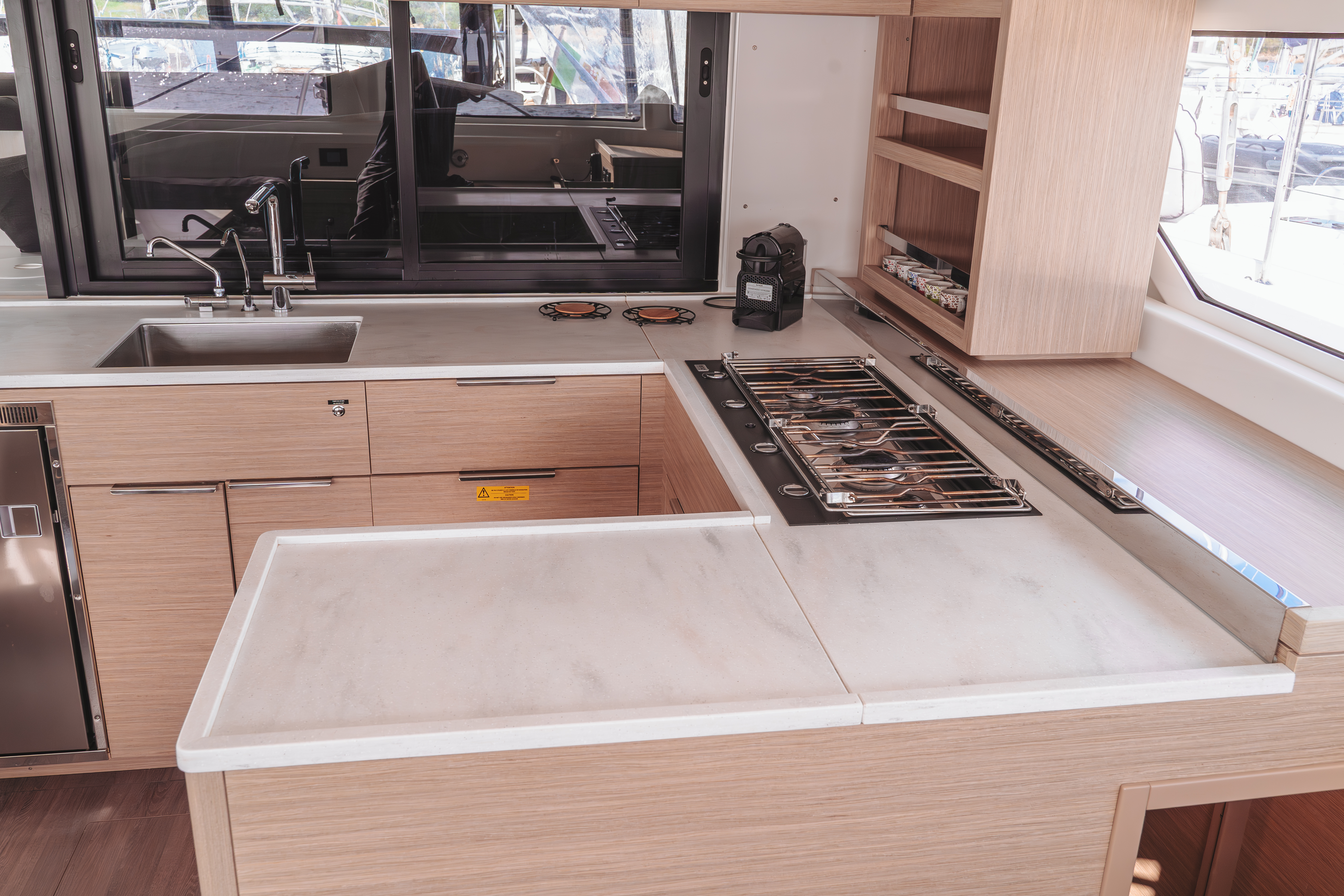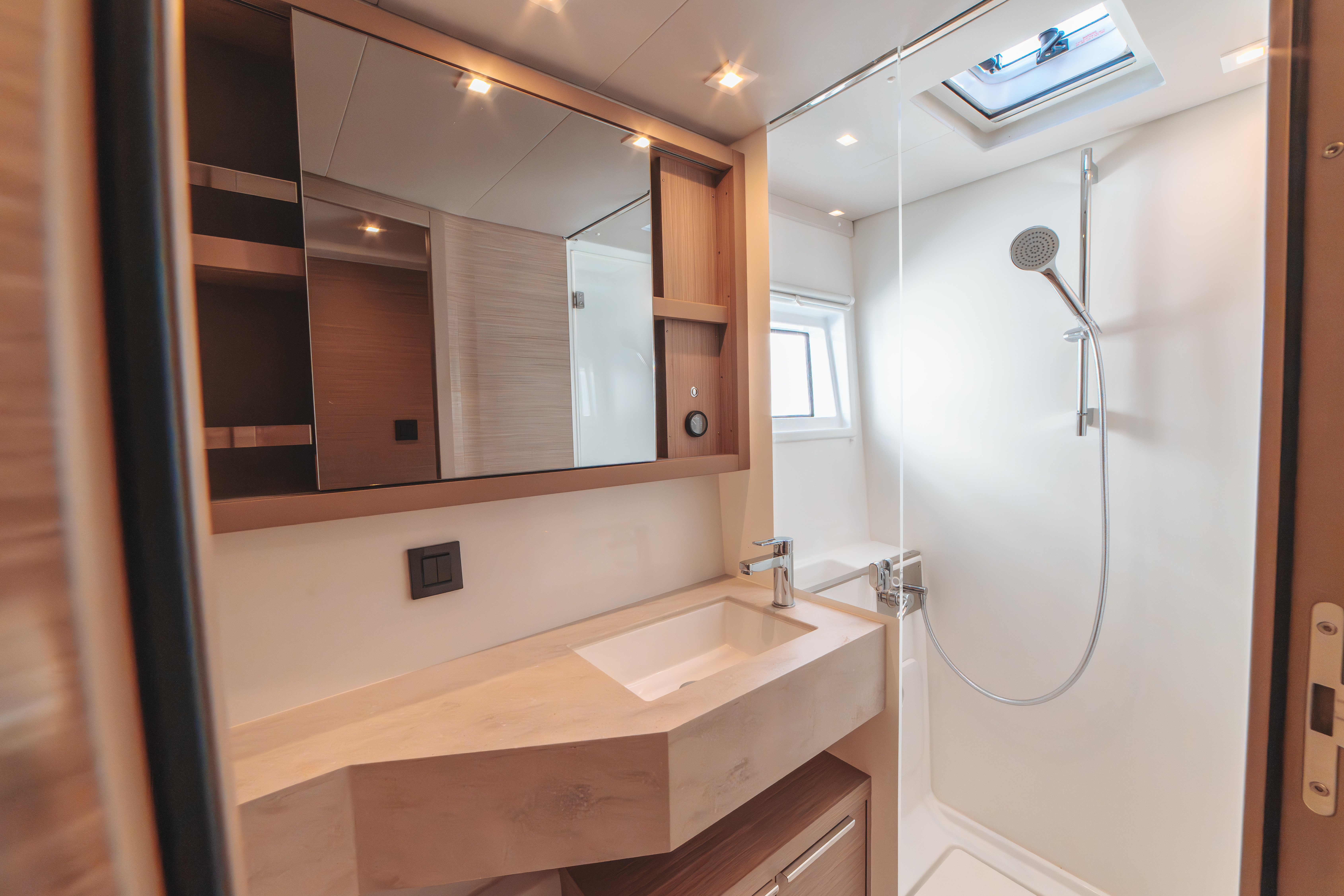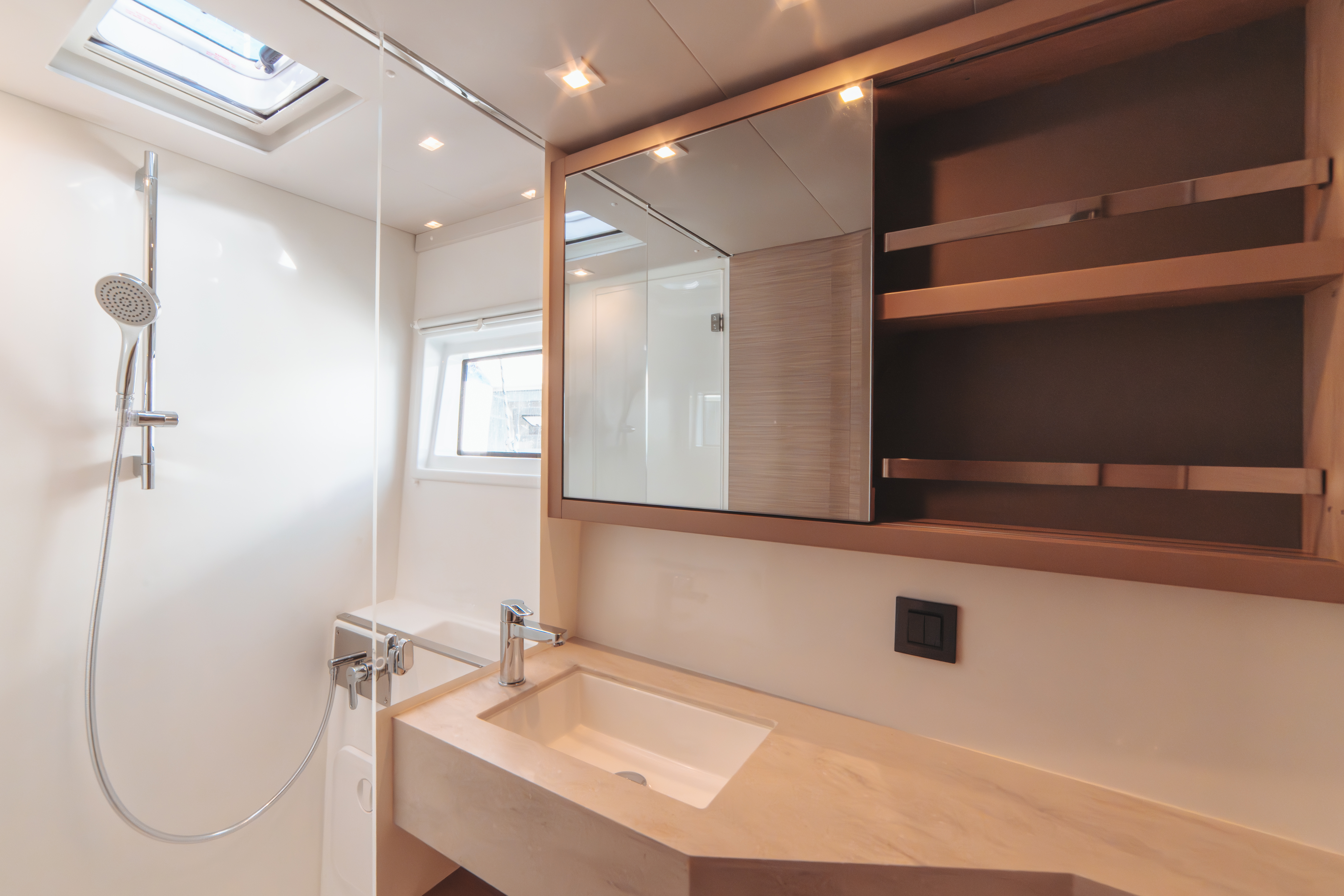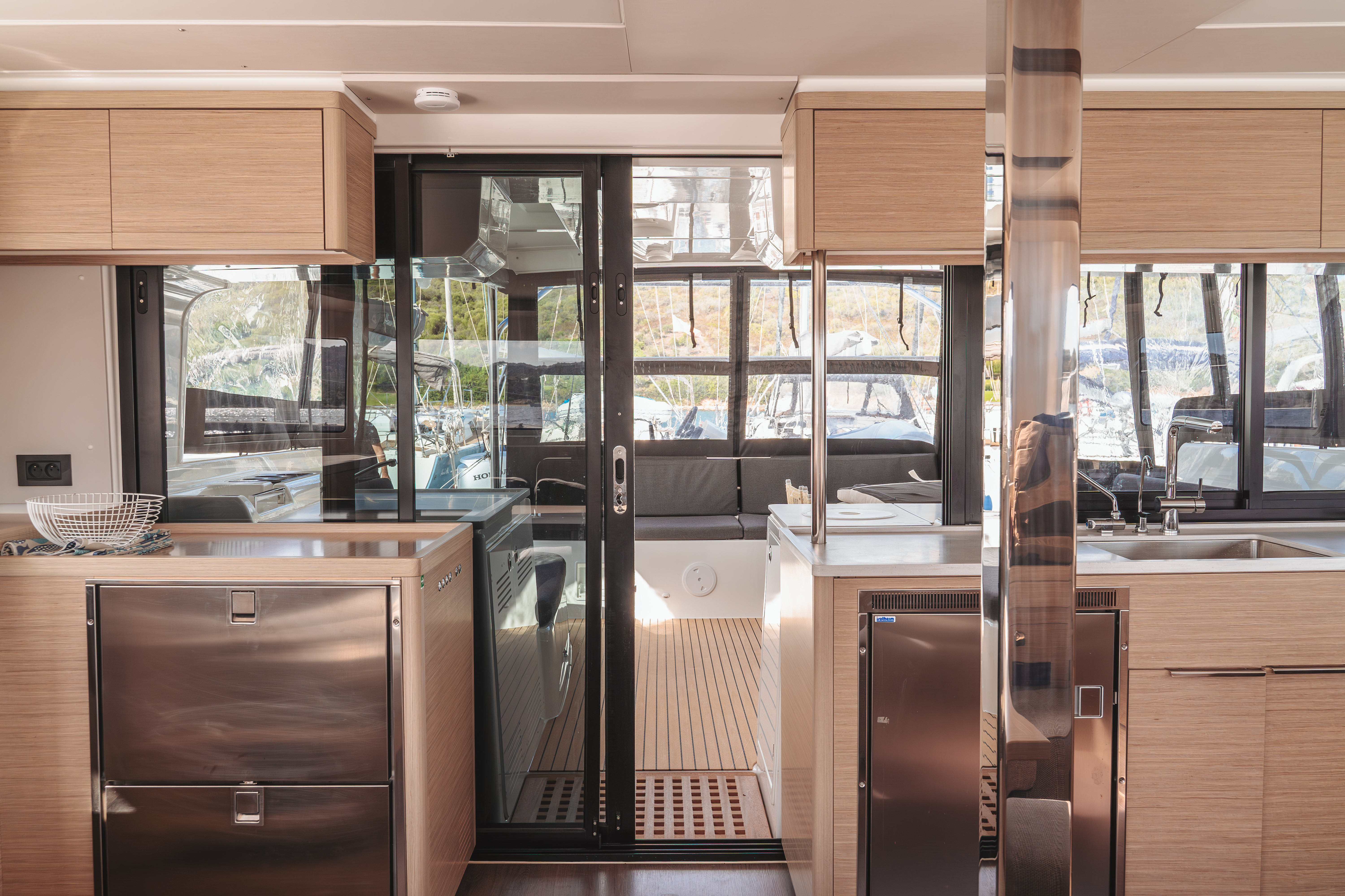 | Inside | Backofen, Generator, Inverter 12V/220V, Kaffeemaschine, Klimaanlage (ohne Landstrombedarf), Landstromkabel, Mokkakanne, Pantryausstattung, Radio, USB Steckdosen in den Kabinen, Ventilator, Ventilatoren in Kabinen, Warmwasser, Watermaker, WC (elektr.) |
