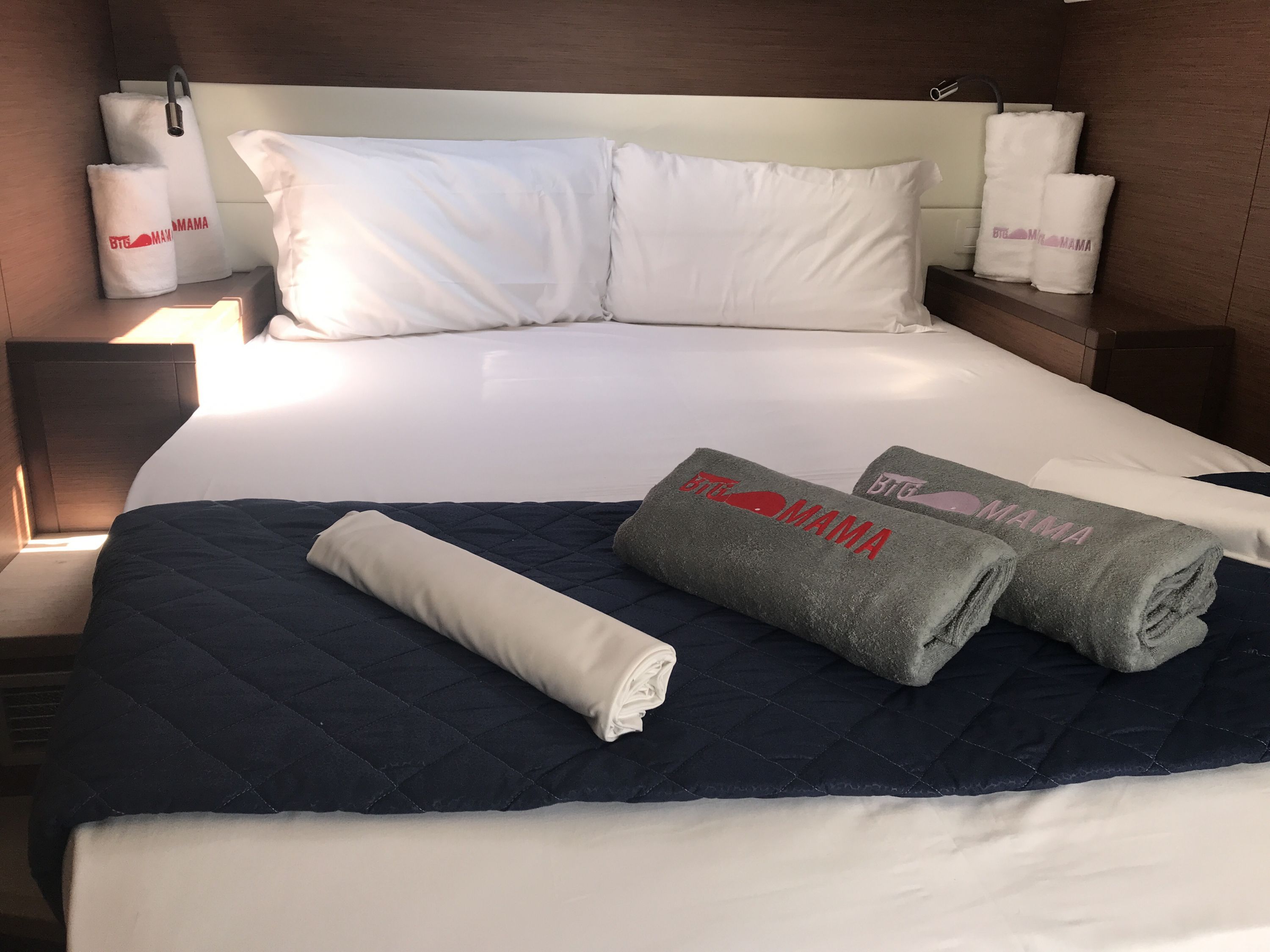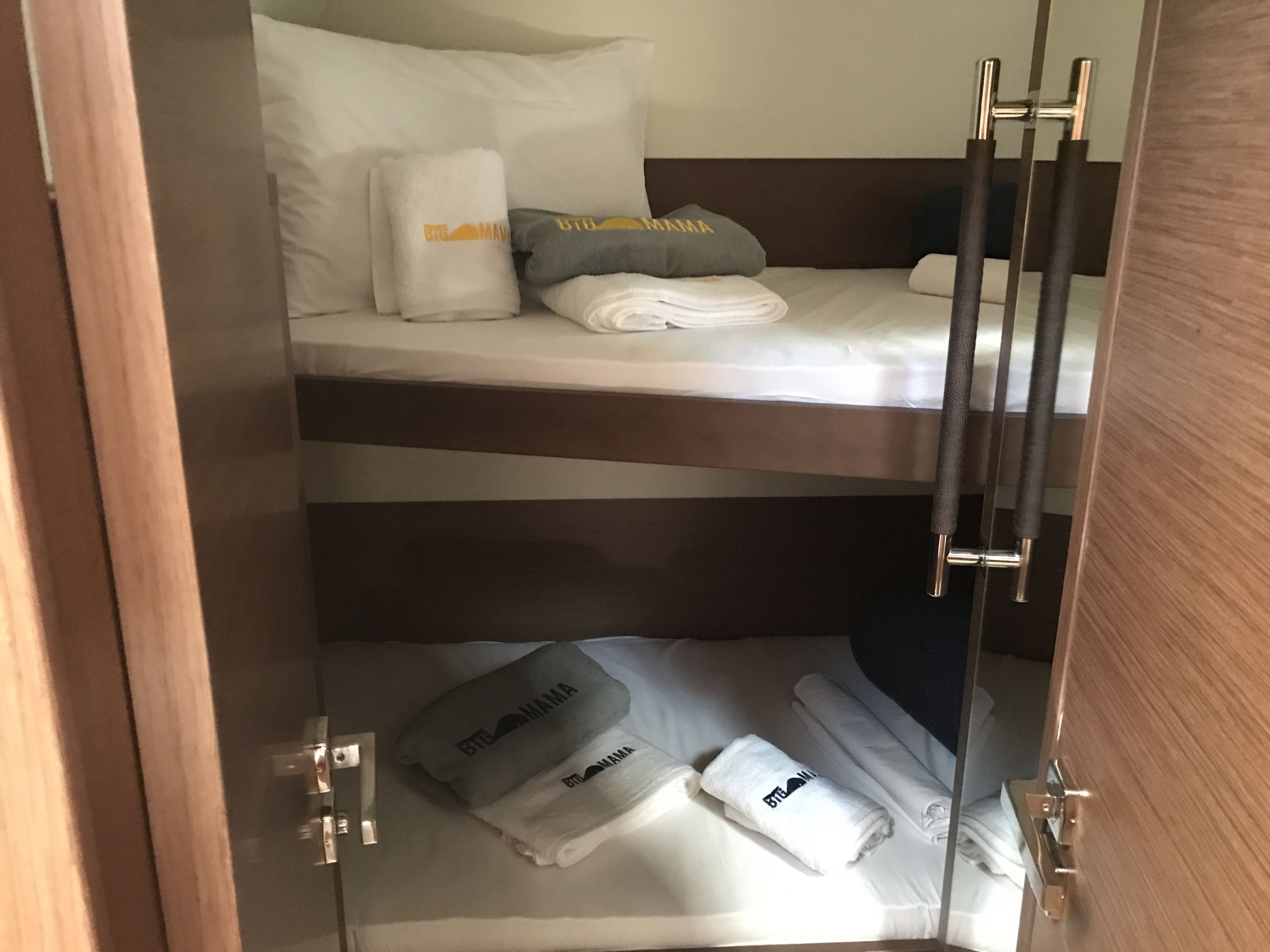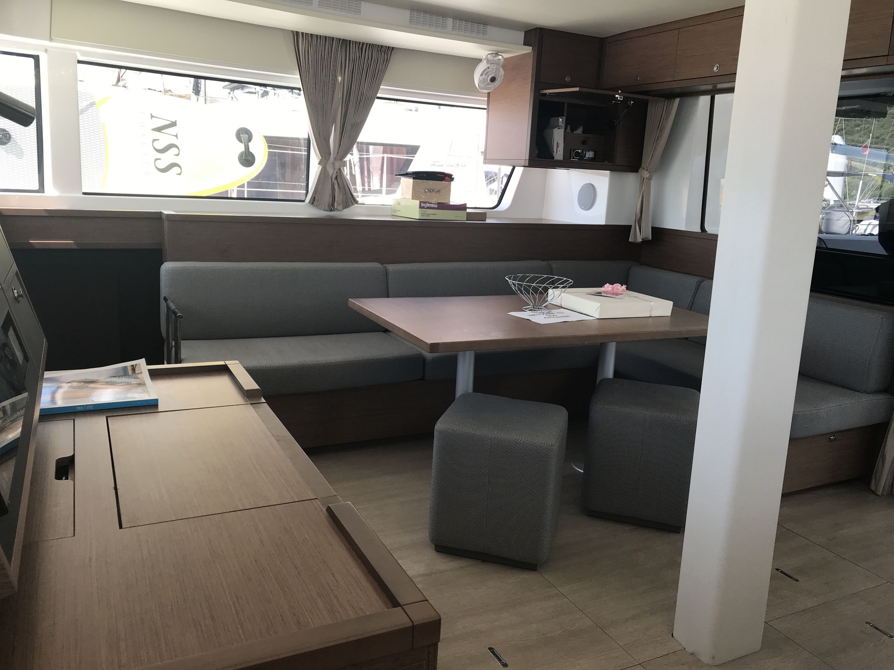 | Inside | Backofen, Eiswürfelmaschine, Generator, Inverter 12V/220V, Kaffeemaschine, Klimaanlage (ohne Landstrombedarf), Landstromkabel, Mikrowelle, Mokkakanne, Pantryausstattung, Radio, Salontisch absenkbar, USB Steckdosen in den Kabinen, Ventilatoren in Kabinen, Warmwasser, Waschmaschine, Watermaker, WC (elektr.) |