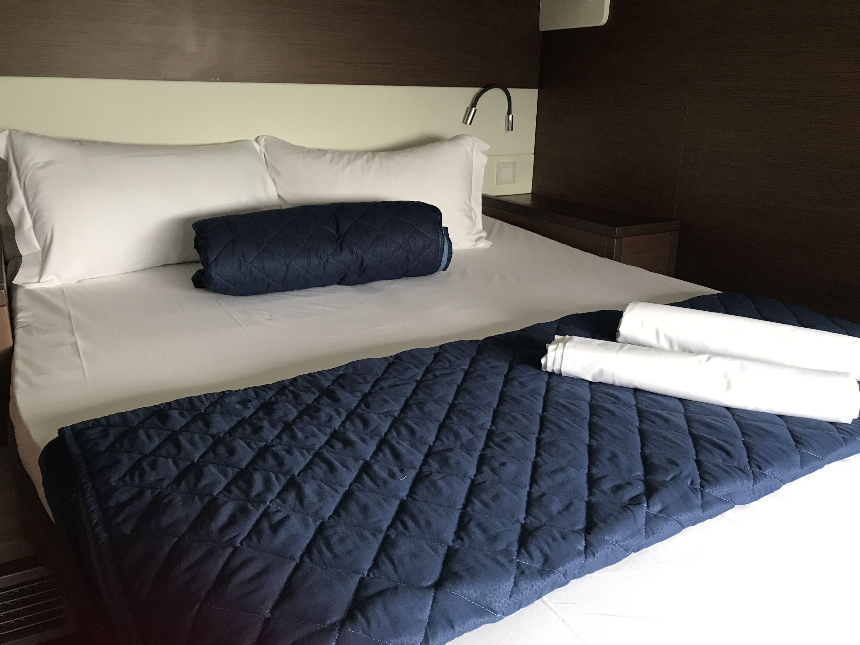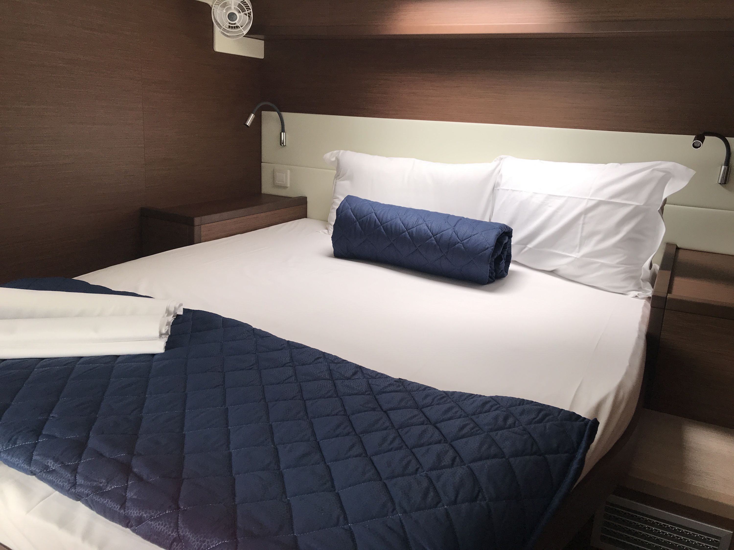 | Inside | Backofen, Eiswürfelmaschine, Generator, Inverter 12V/220V, Klimaanlage (ohne Landstrombedarf), Landstromkabel, Mikrowelle, Mokkakanne, Pantryausstattung, Radio, Ventilatoren in Kabinen, Warmwasser, Waschmaschine, Watermaker, WC (elektr.) |