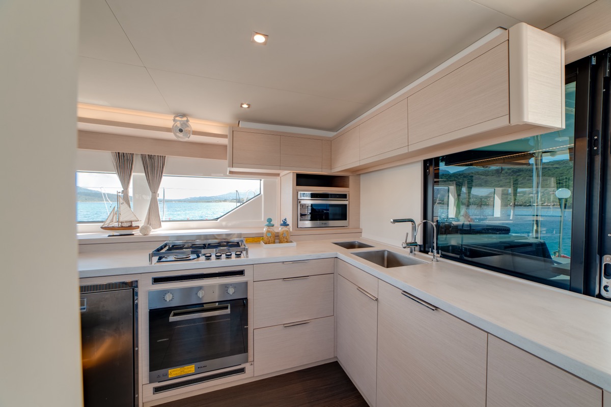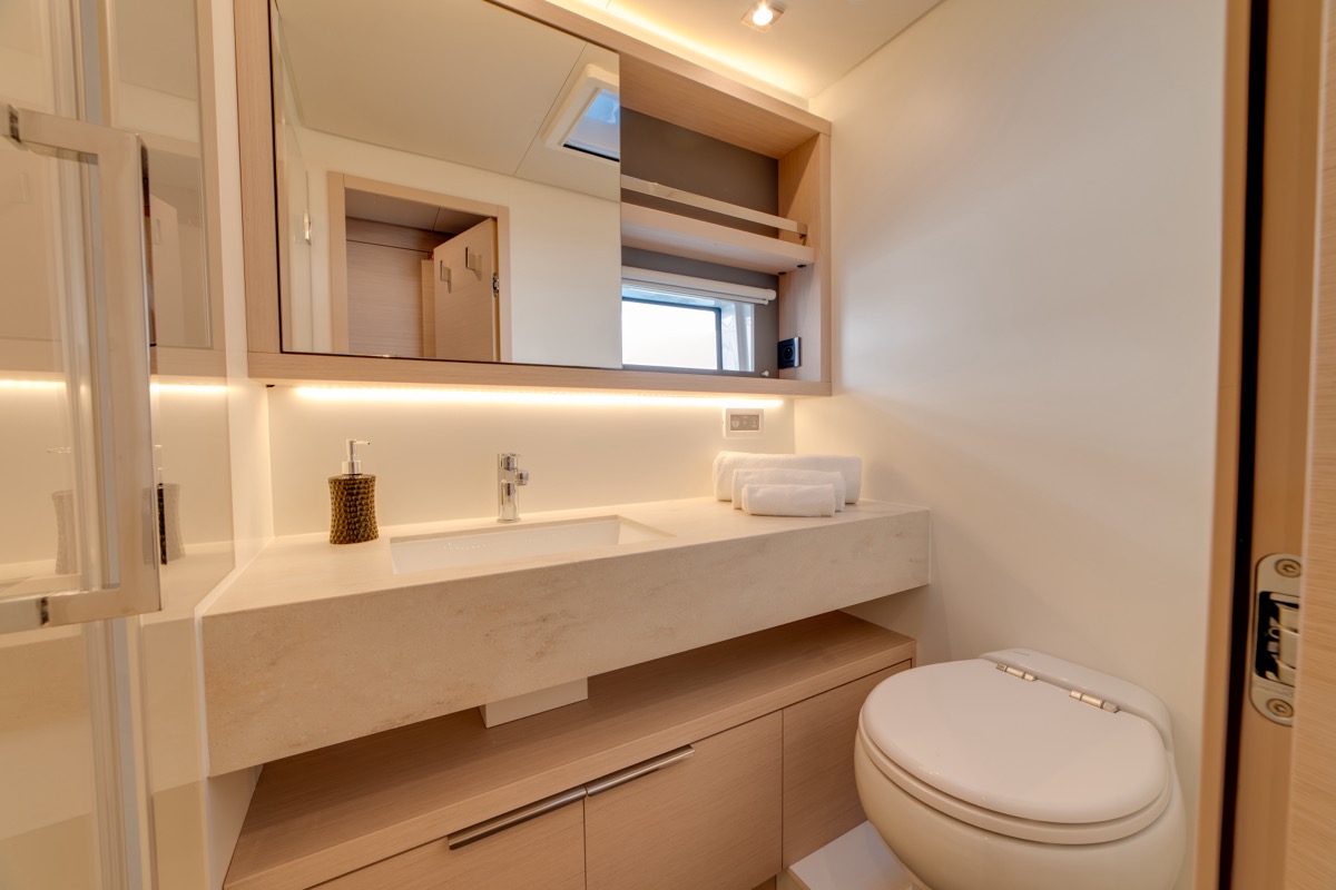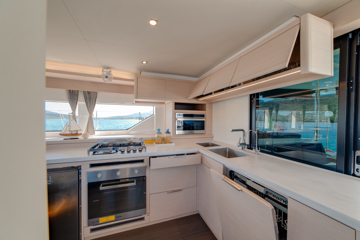 | Inside | Backofen, Fäkalientank, Generator, Inverter 12V/220V, Kaffeemaschine, Klimaanlage (ohne Landstrombedarf), Mikrowelle, Mokkakanne, Moskitonetze, Pantryausstattung, Radio, USB Steckdosen in den Kabinen, Warmwasser, Waschmaschine, Watermaker, WC (elektr.) |