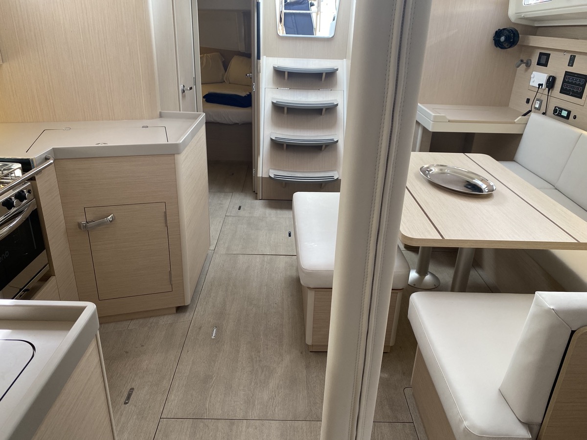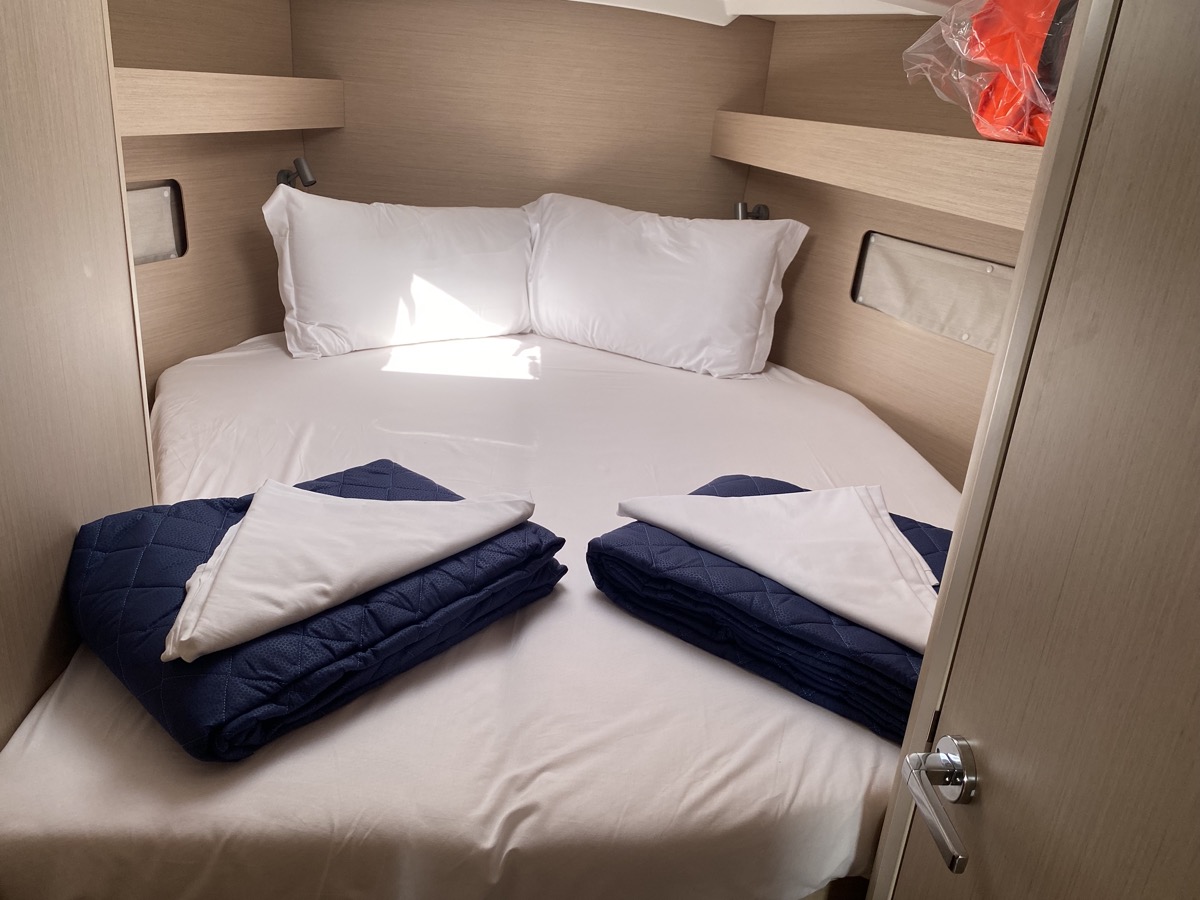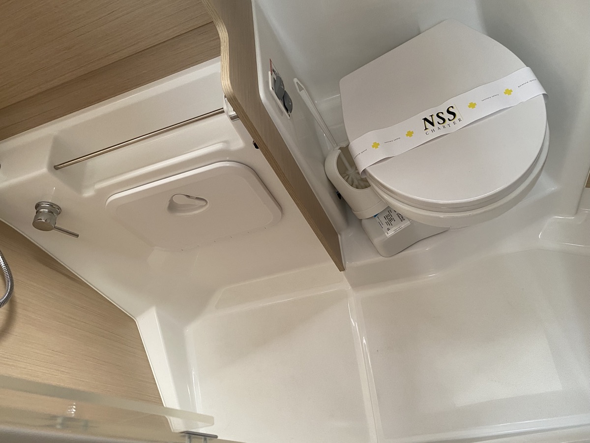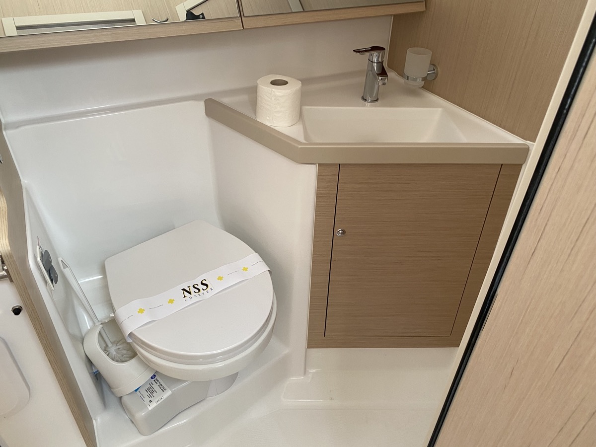 | Inside | Backofen, Inverter 12V/220V, Landstromkabel, Mokkakanne, Pantryausstattung, Radio, Salontisch absenkbar, USB Steckdosen in den Kabinen, Ventilator, Ventilatoren in Kabinen, Warmwasser, WC (elektr.) |