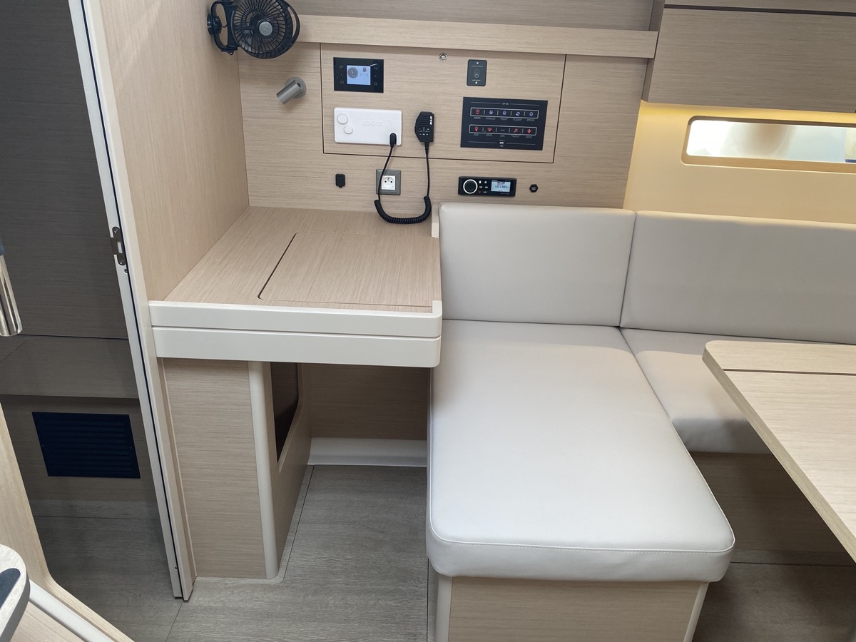 | Outside | Biminitop, Cockpitdusche, Cockpitlautsprecher, Cockpitpolster, Cockpittisch, elektr. Winsch, Teak im Cockpit |