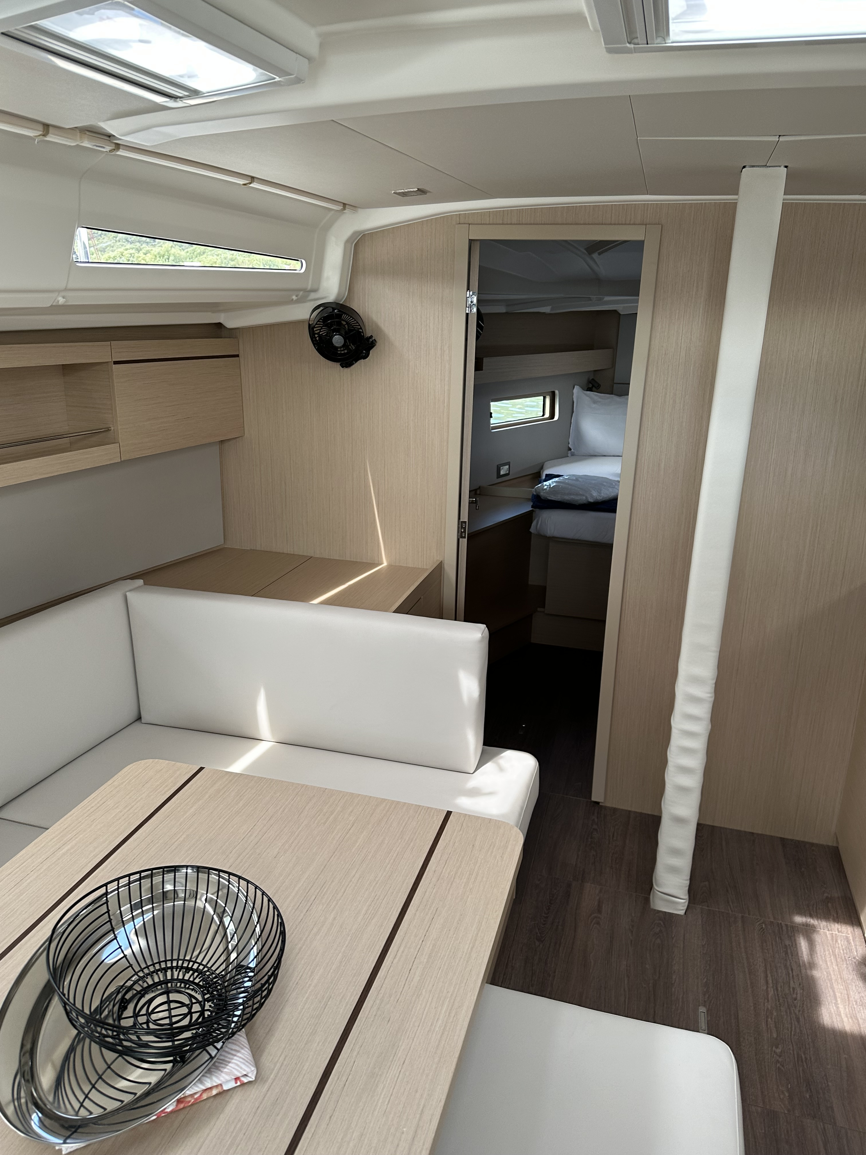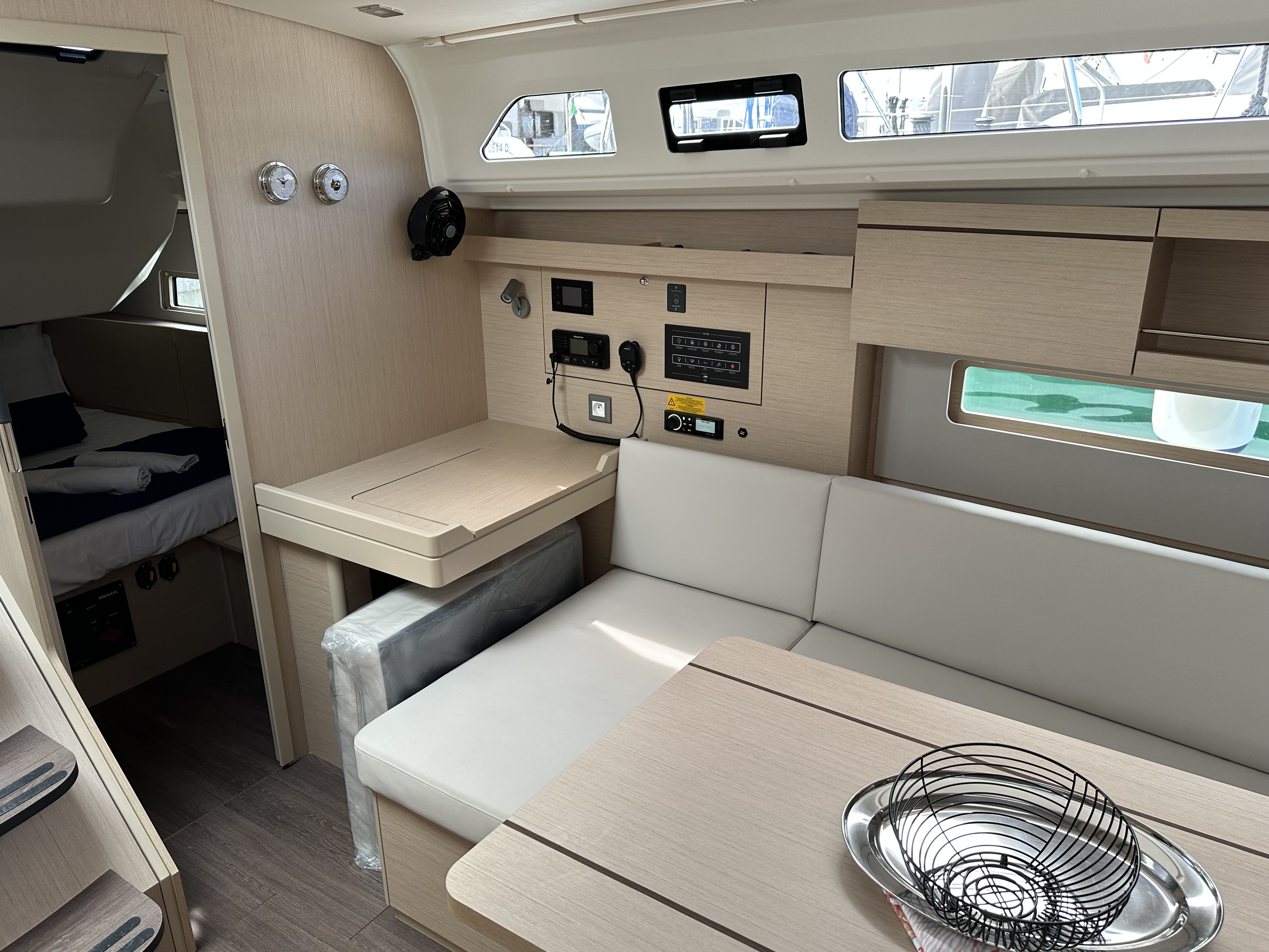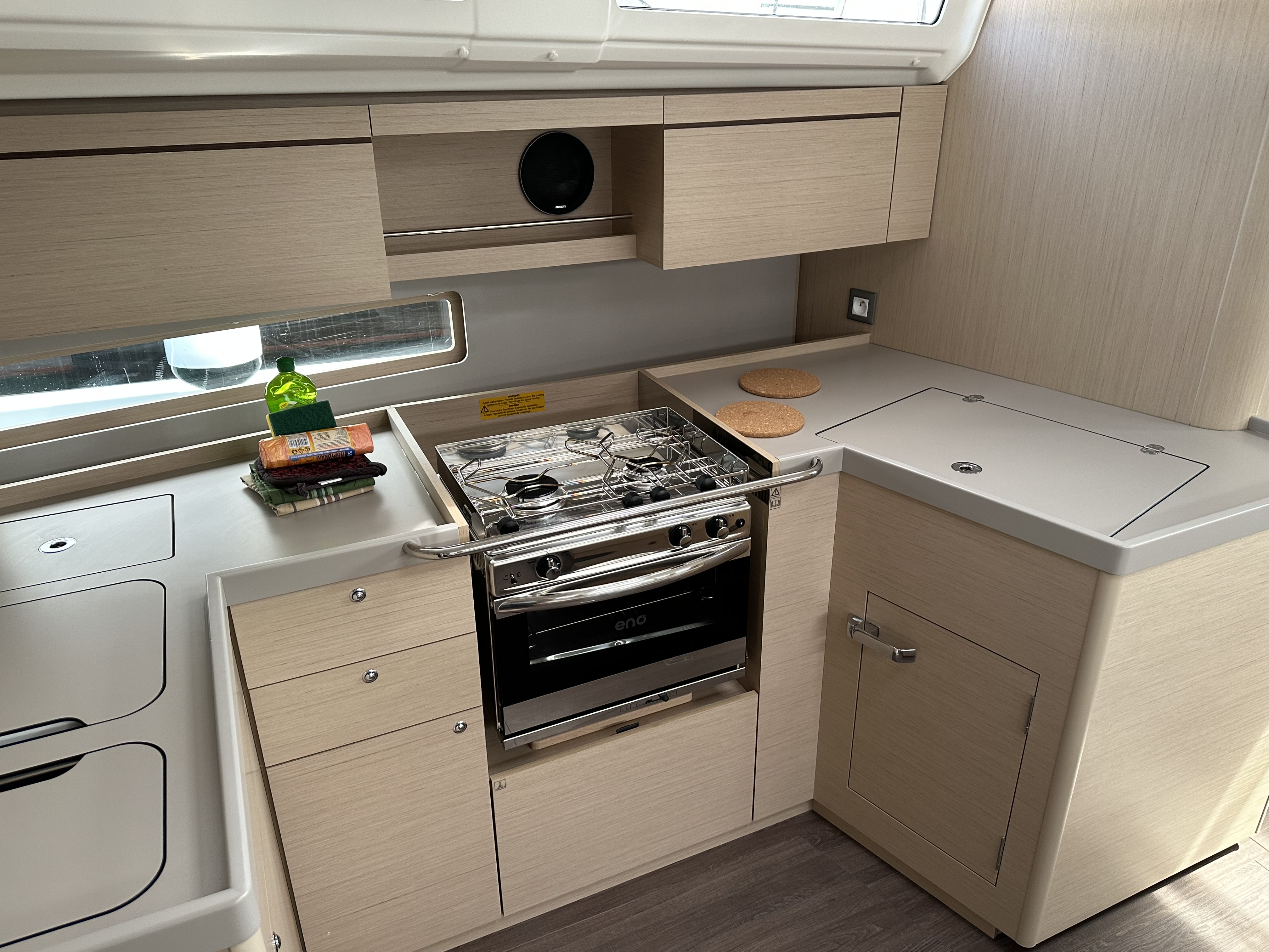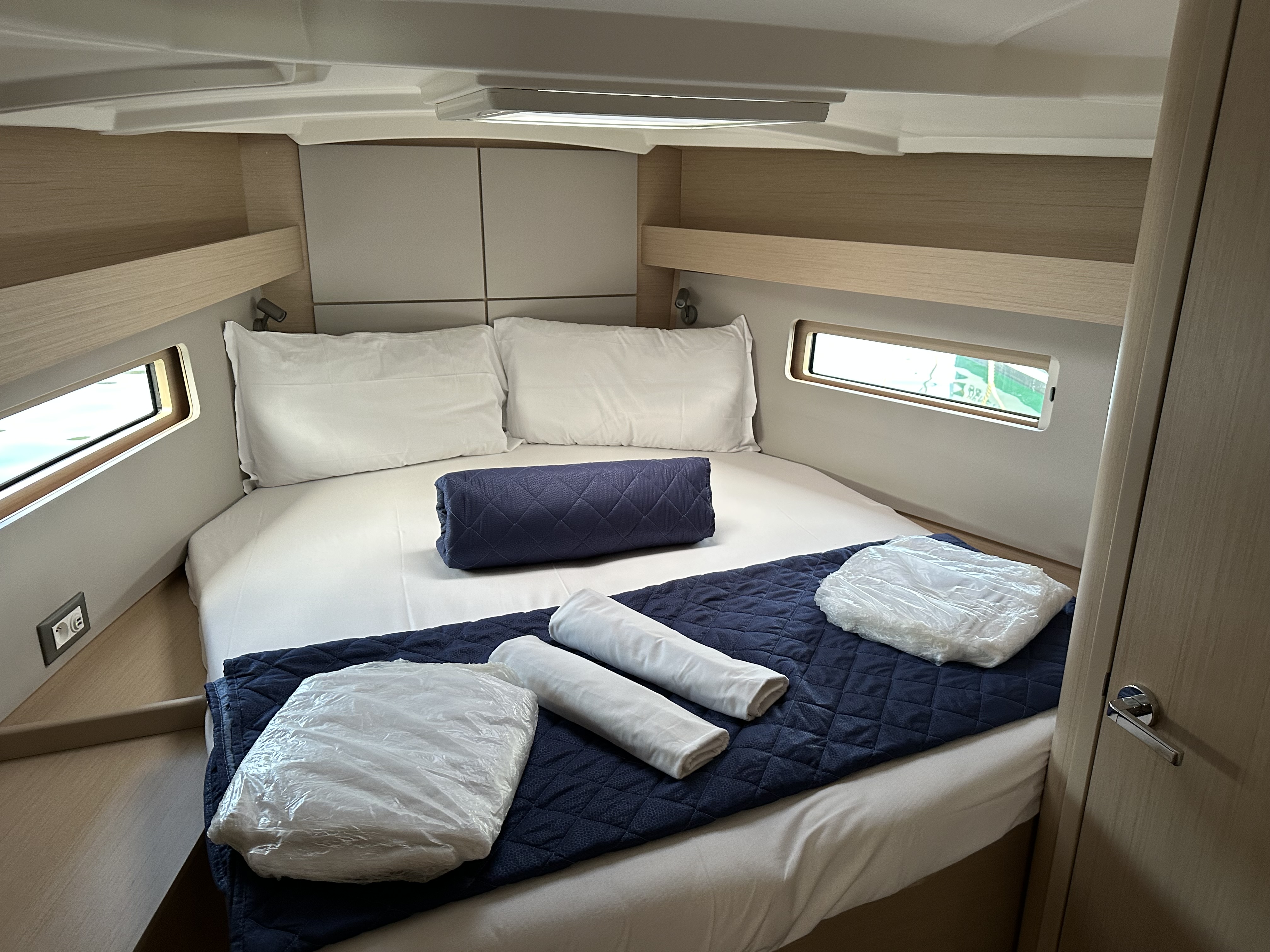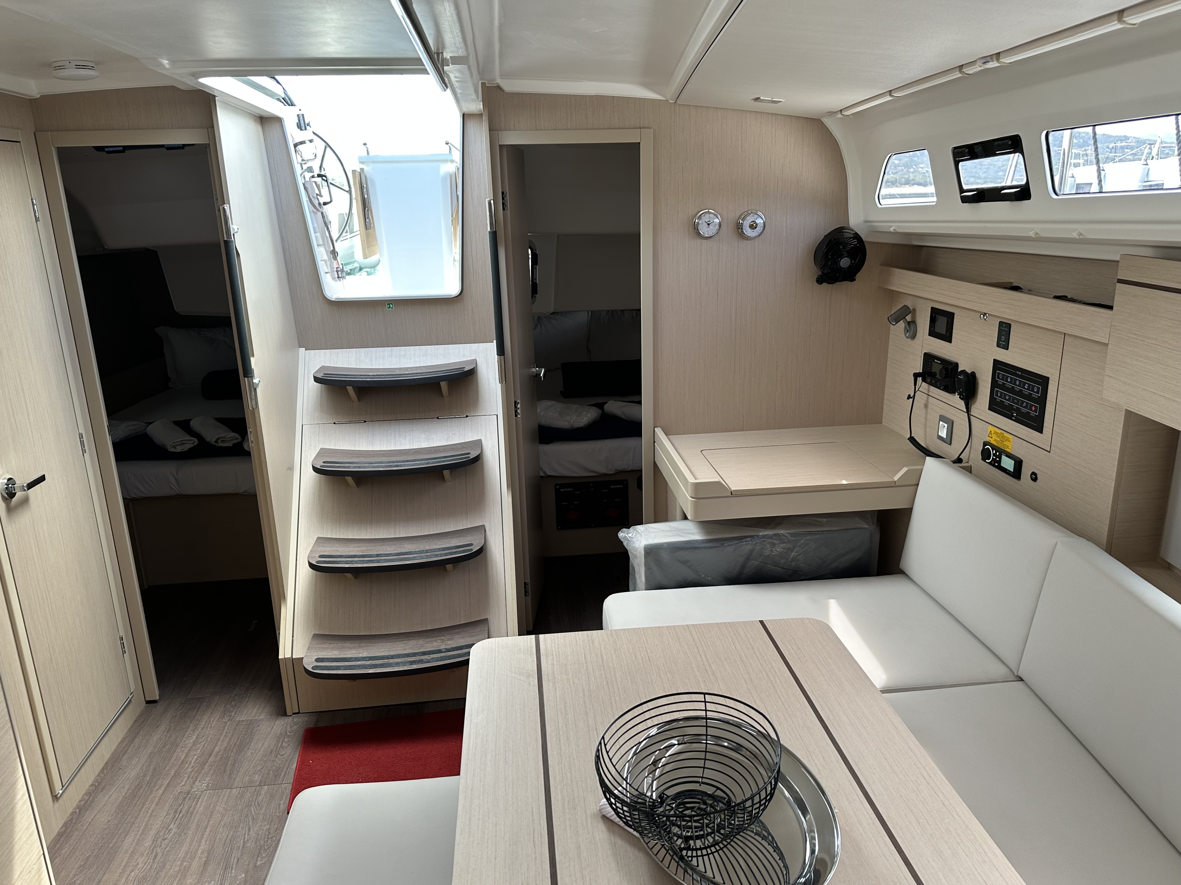 | Inside | Backofen, Inverter 12V/220V, Landstromkabel, Mokkakanne, Moskitonetze, Pantryausstattung, Radio, Salontisch absenkbar, USB Steckdosen in den Kabinen, Warmwasser, WC (elektr.) |