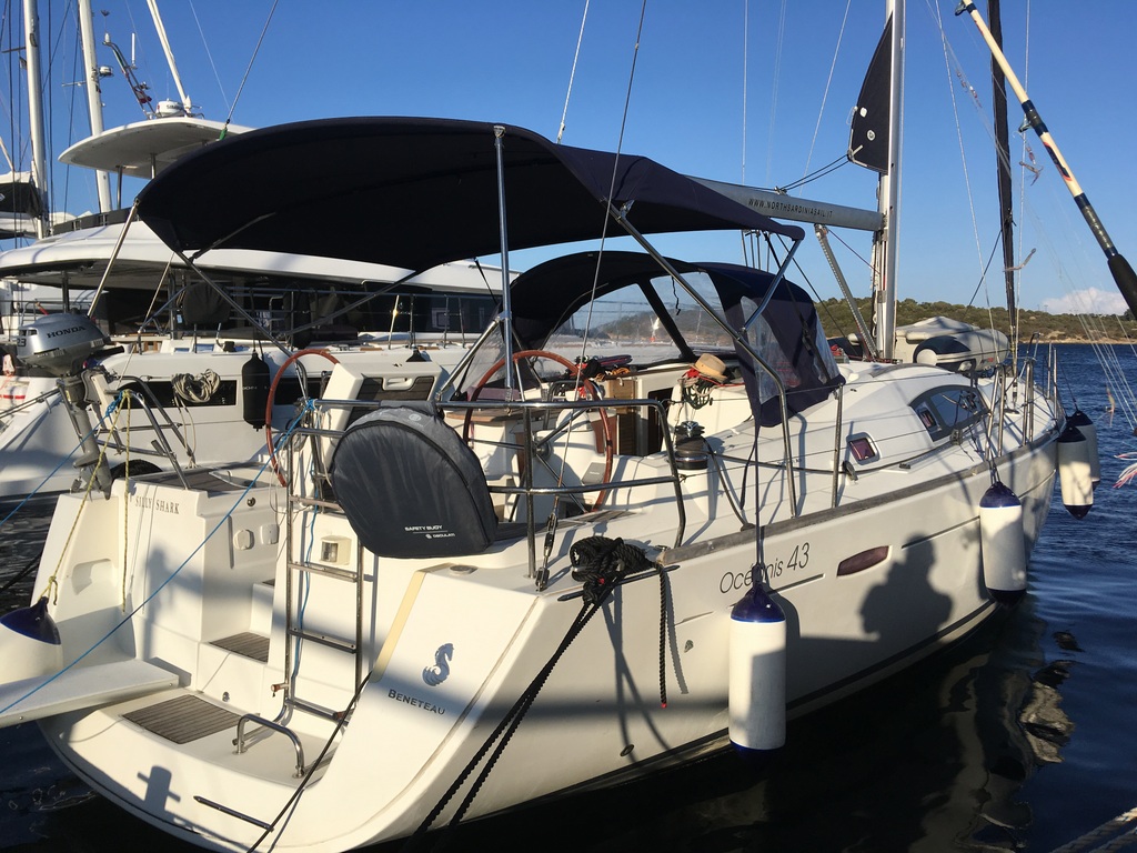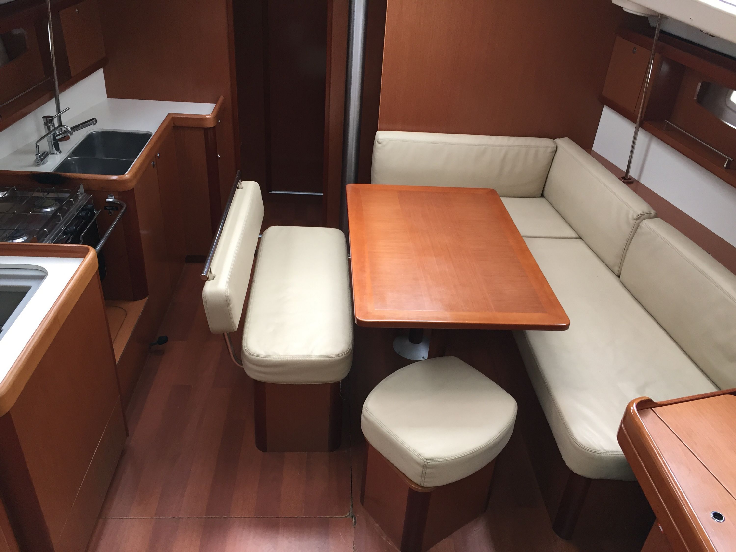 | Outside | Biminitop, Cockpitdusche, Cockpitlautsprecher, Cockpitpolster, elektr. Ankerwinsch, elektr. Winsch, Sprayhood, Teak im Cockpit |