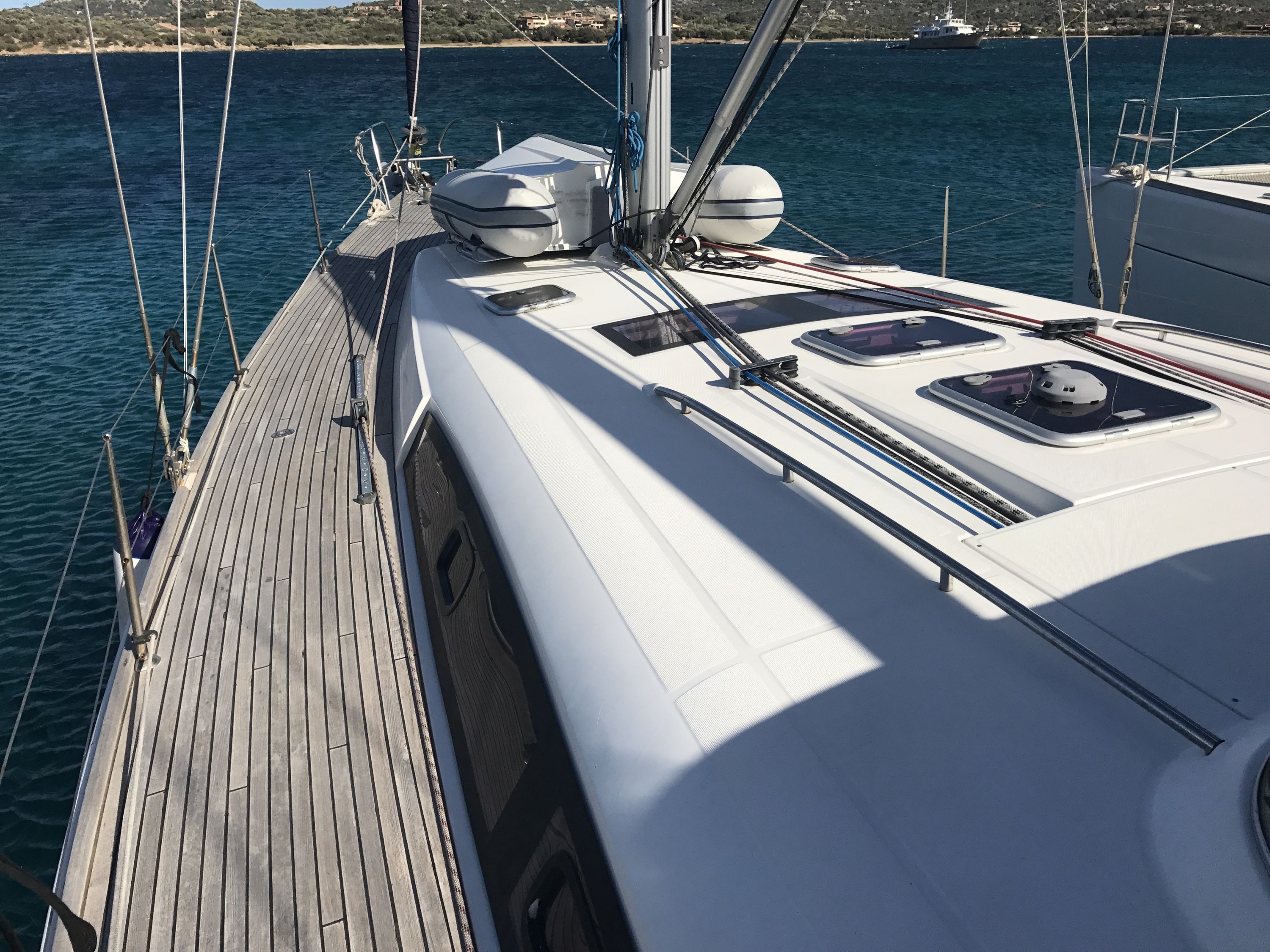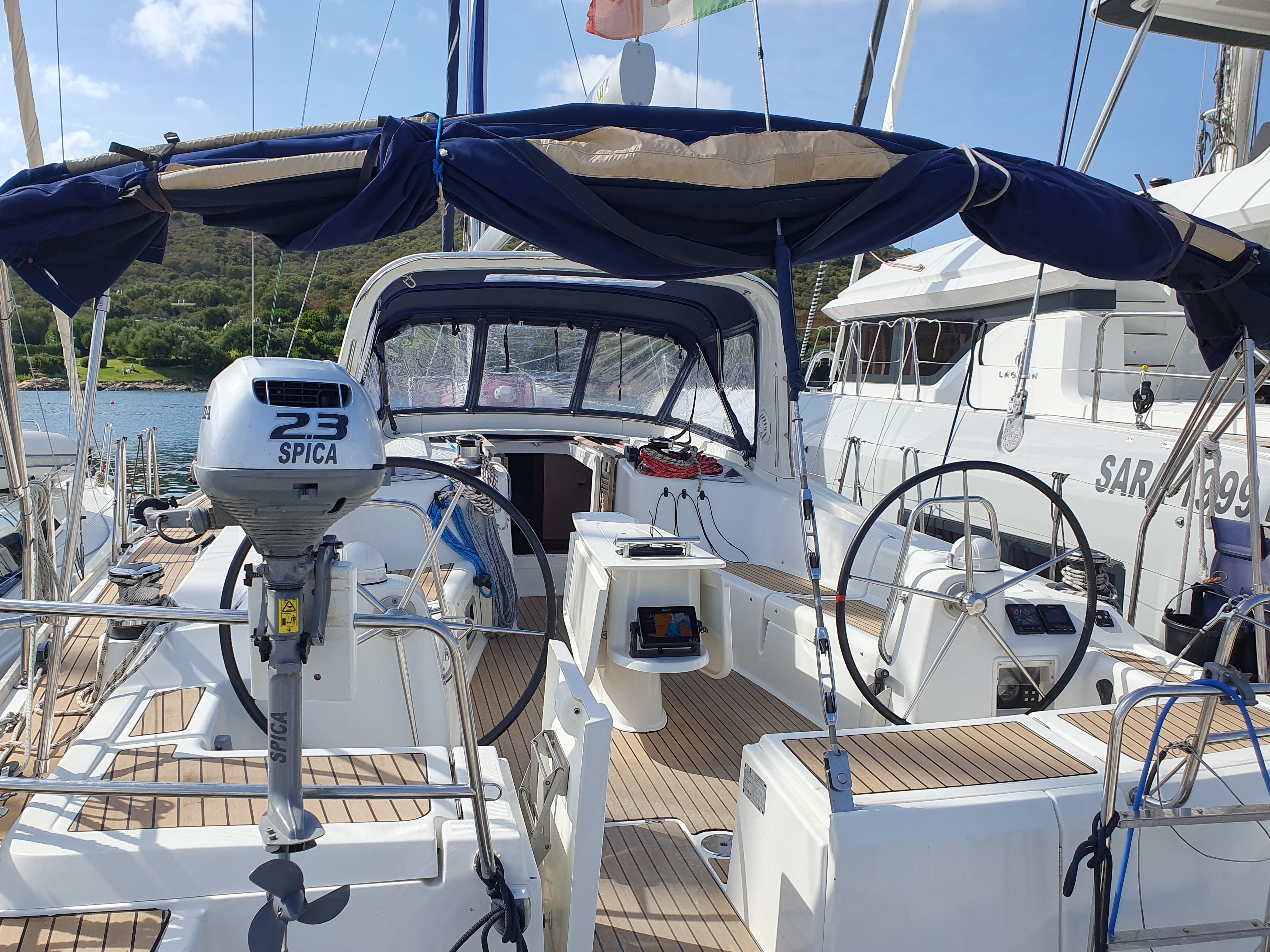 | Outside | Biminitop, Cockpitdusche, Cockpitlautsprecher, Cockpitpolster, elektr. Ankerwinsch, elektr. Winsch, Teak im Cockpit, Teakdeck |