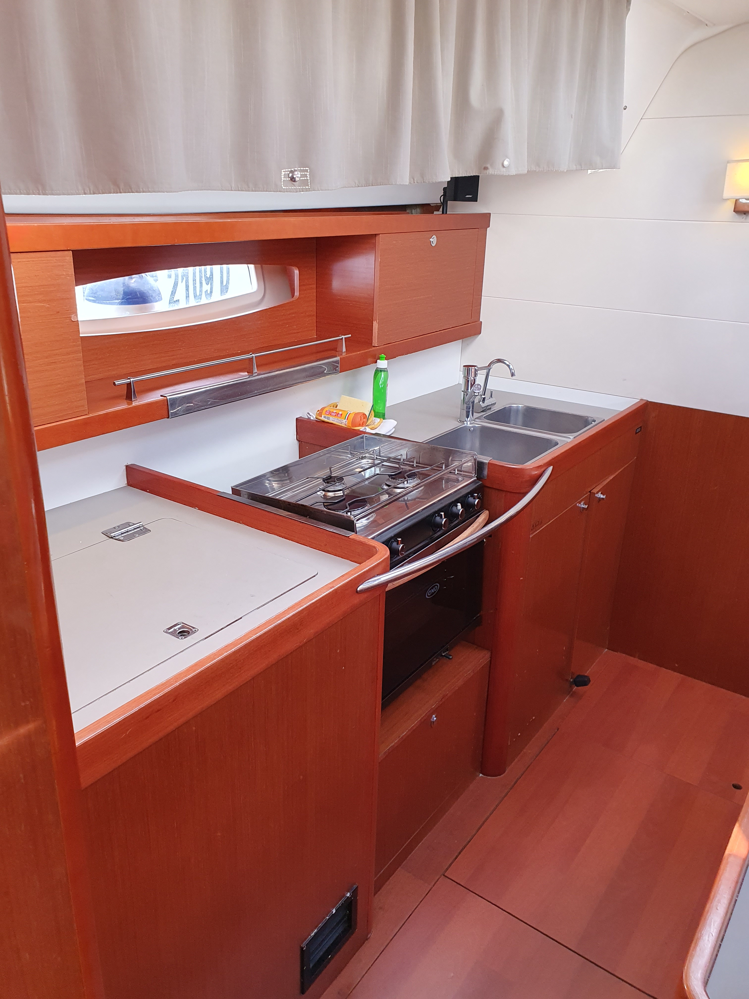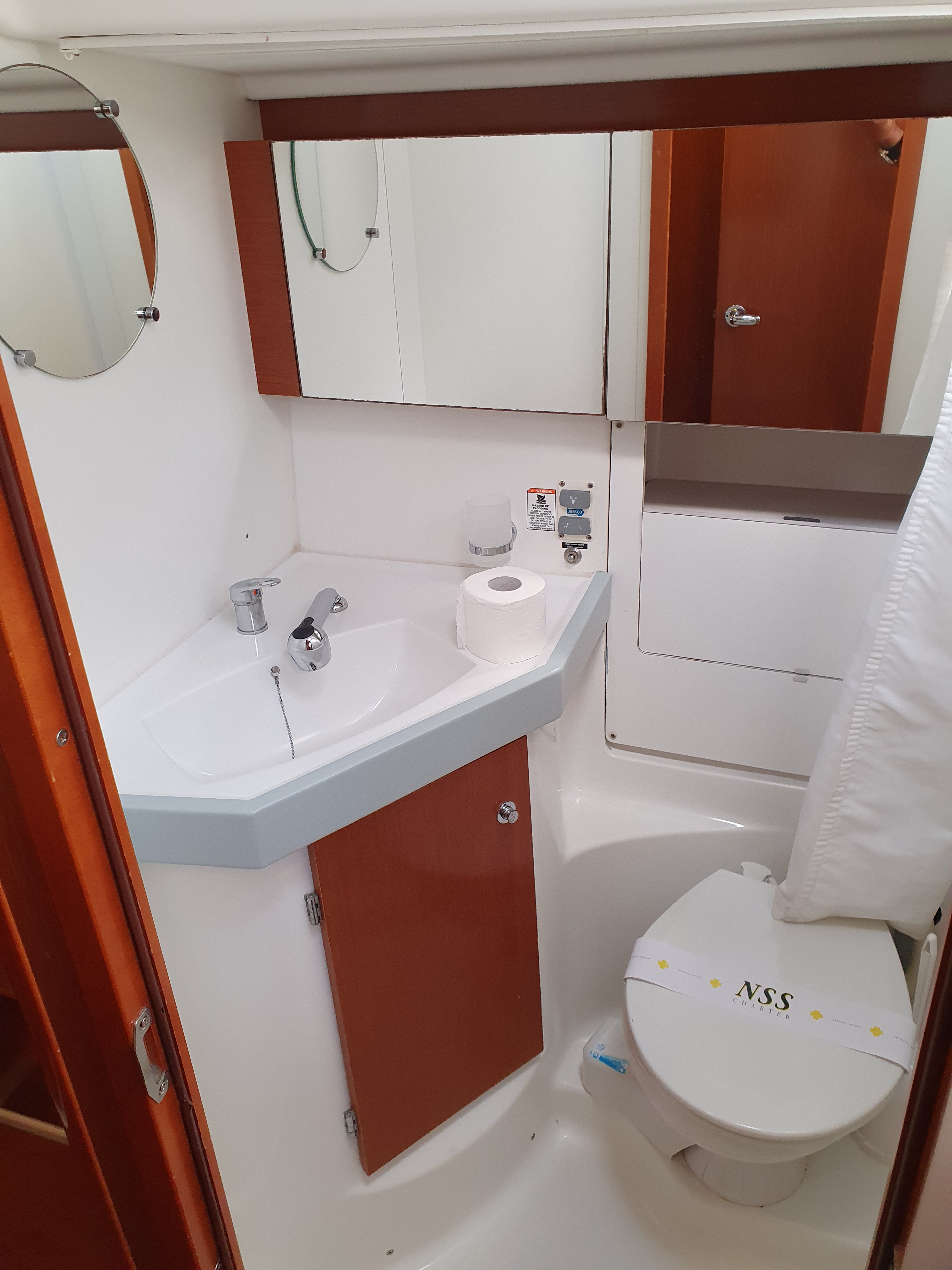 | Safety | Autopilot, Bootsmannstuhl, Bordapotheke, Bugstrahlruder, Feuerlöscher, Notpinne, Notsignale, Rettungsinsel, UKW-Funk, Zweitanker |