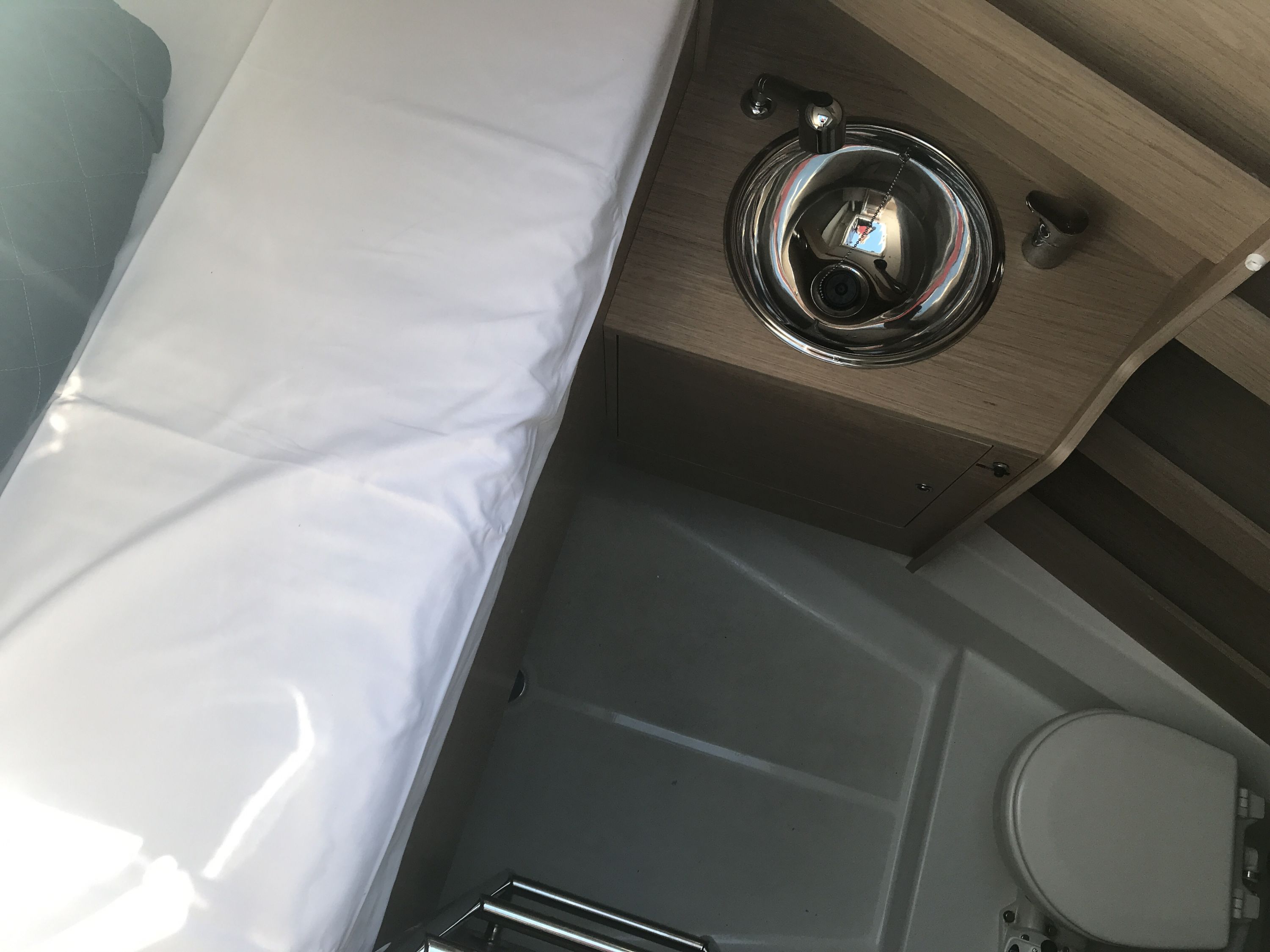 | Inside | Backofen, Inverter 12V/220V, Landstromkabel, Mokkakanne, Pantryausstattung, Radio, Salontisch absenkbar, USB Steckdosen in den Kabinen, Ventilatoren in Kabinen, Warmwasser, WC (elektr.) |