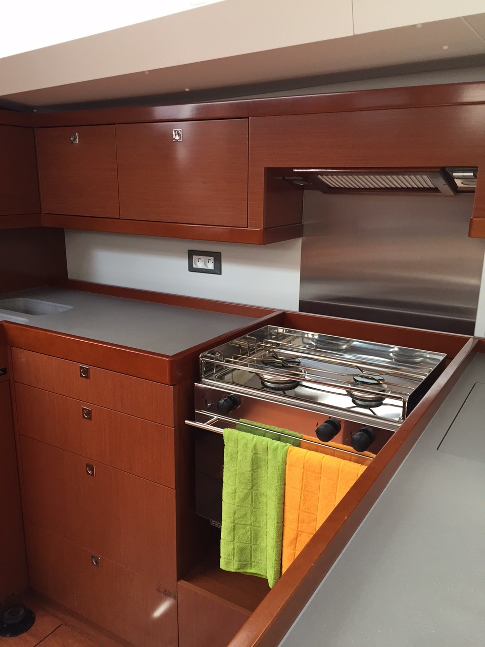 | Navigation | GPS mit Kartenplotter im Cockpit, Hafenhandbücher, Handpeilkompass, Seekarten, Windmesser |