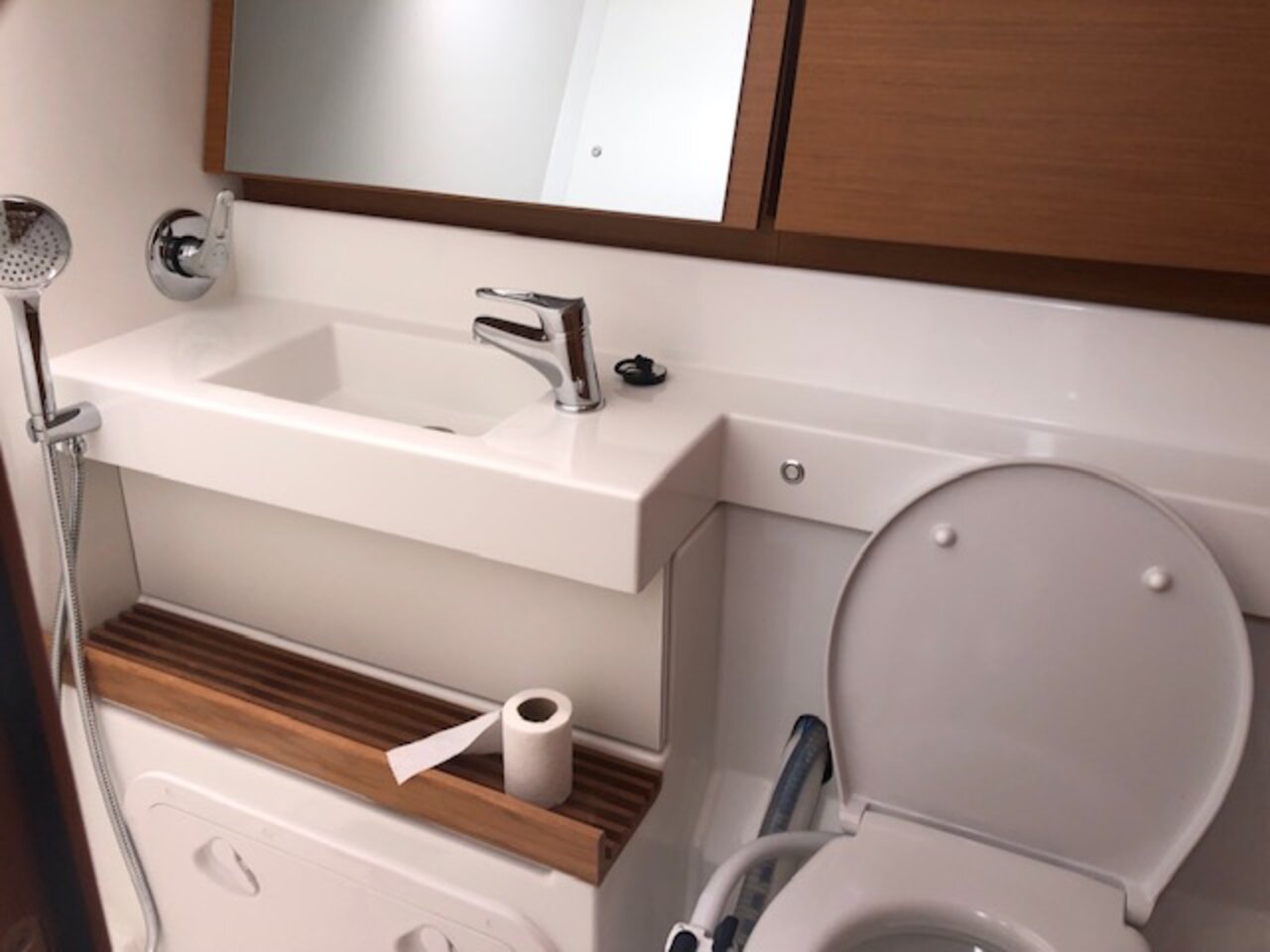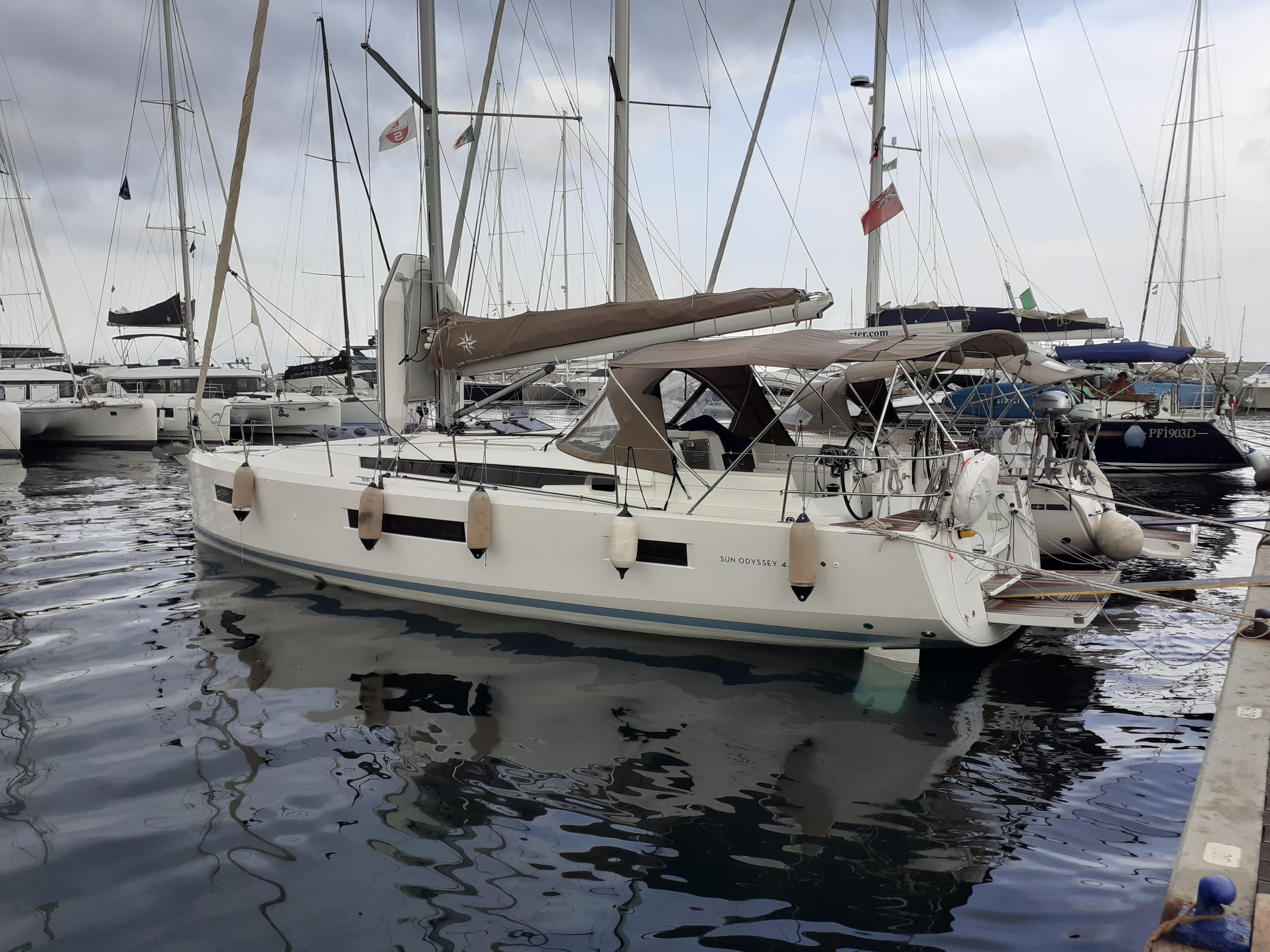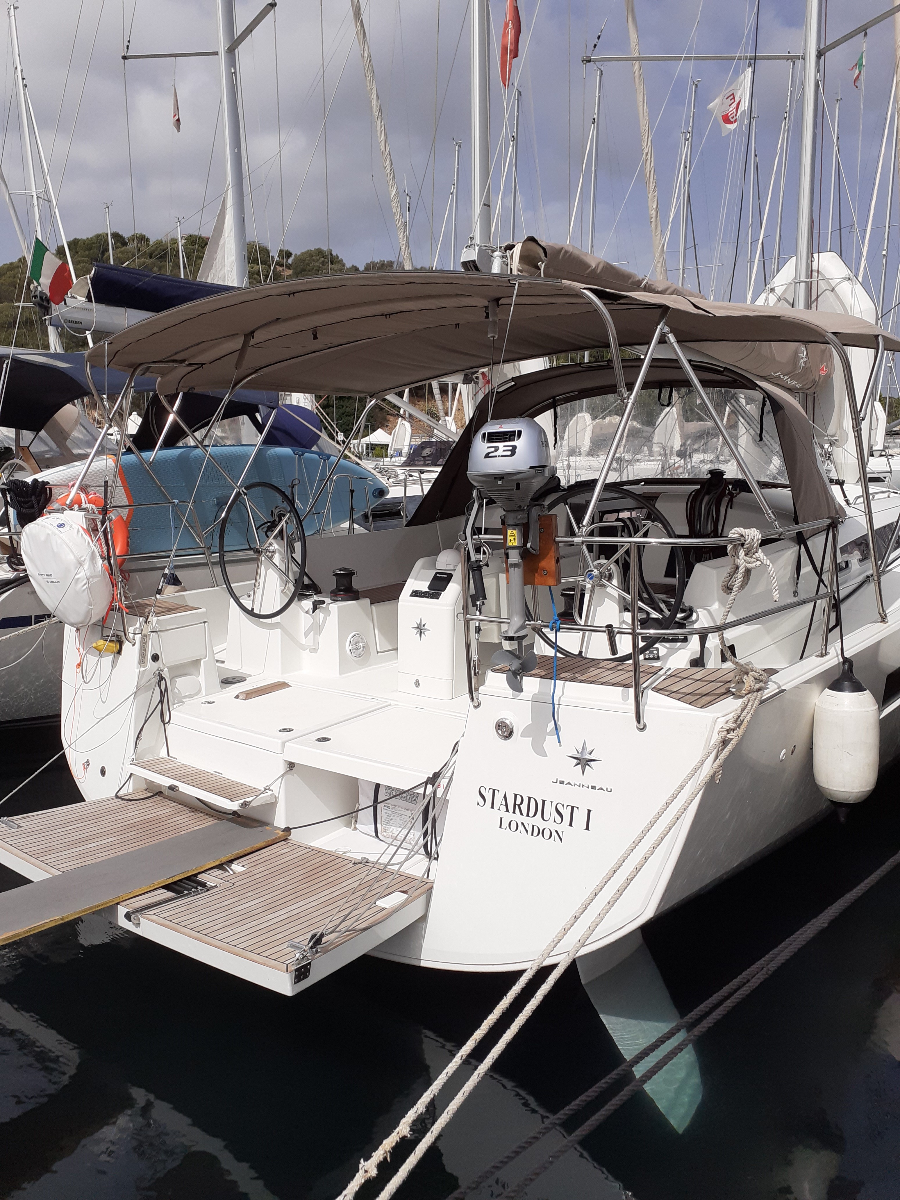 | Outside | Biminitop, Cockpitdusche, Cockpitlautsprecher, elektr. Ankerwinsch, elektr. Winsch, Faltpropeller, Sprayhood |