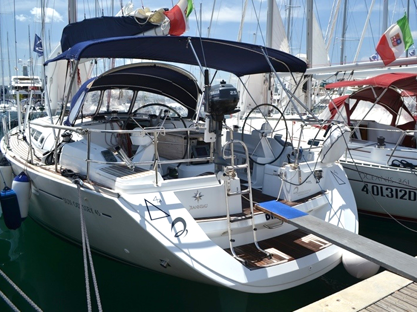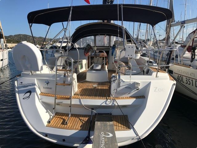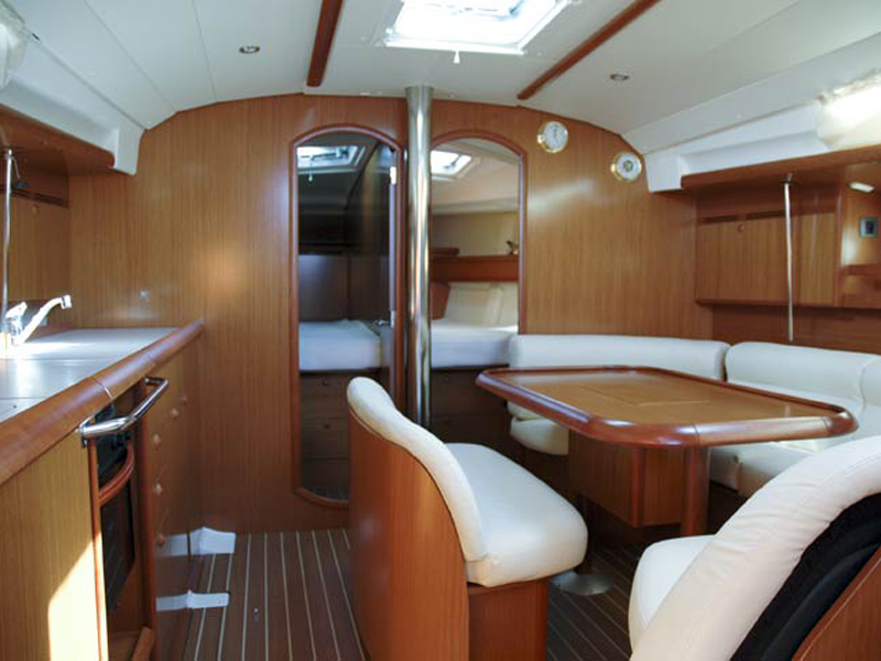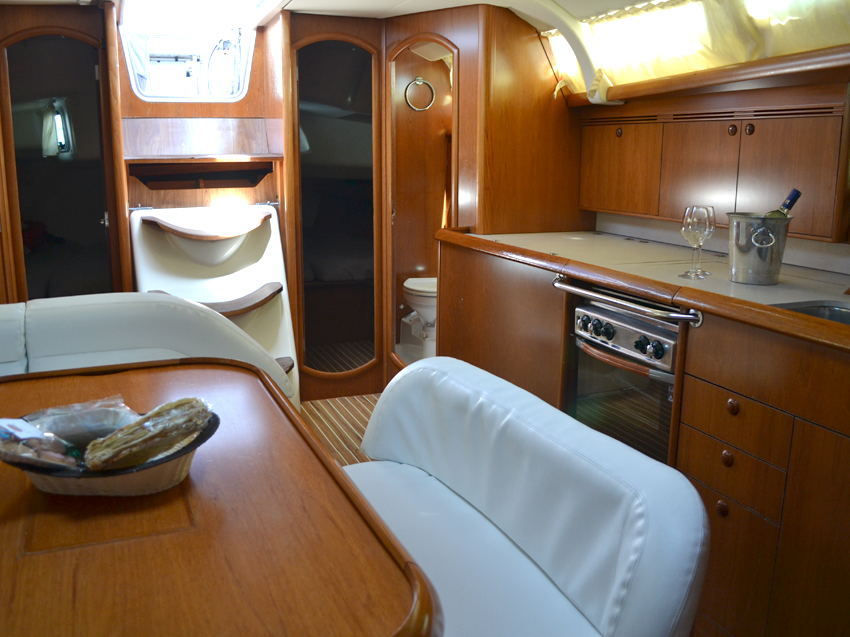 | Outside | Anker mit Kette, Biminitop, Bootshaken, Bürste und Schwamm, Cockpitdusche, elektr. Ankerwinsch, Festmacherleinen, Gangway, Schnorchelausrüstung, Sprayhood, Teakdeck, Wasserschlauch |