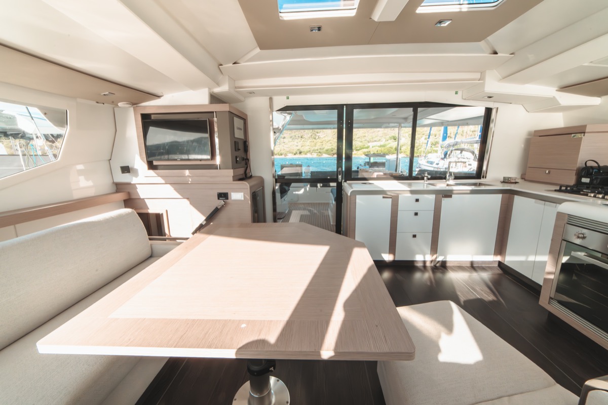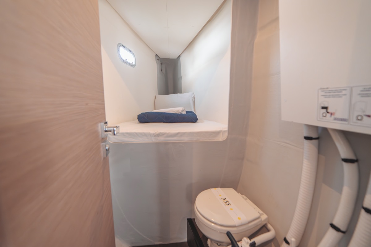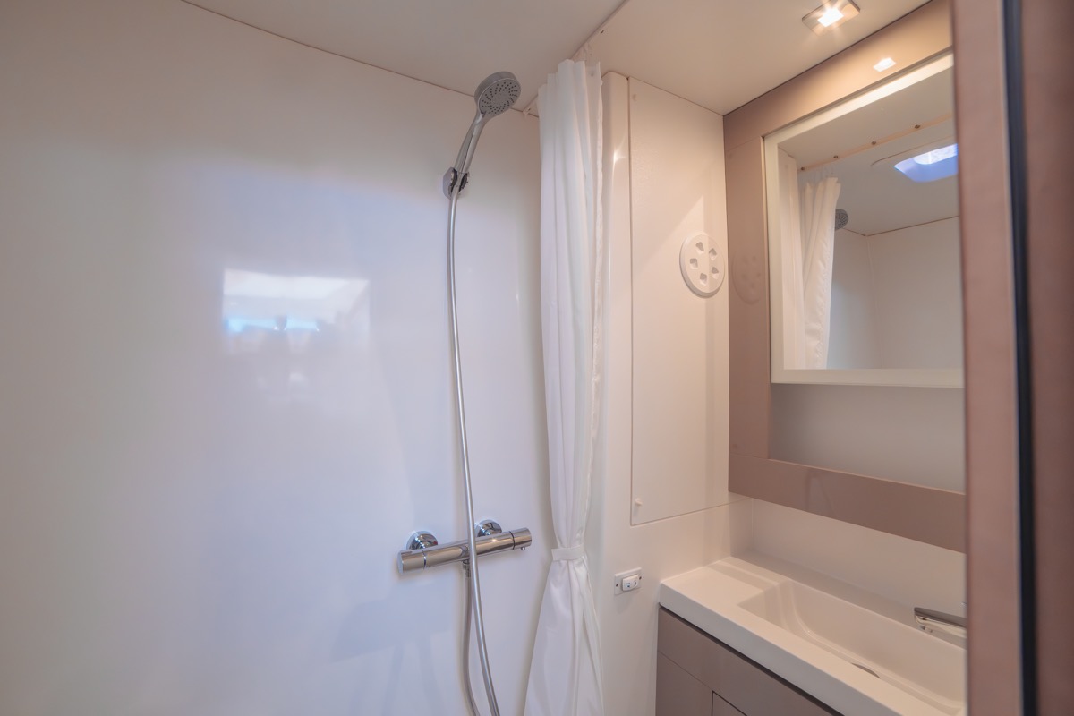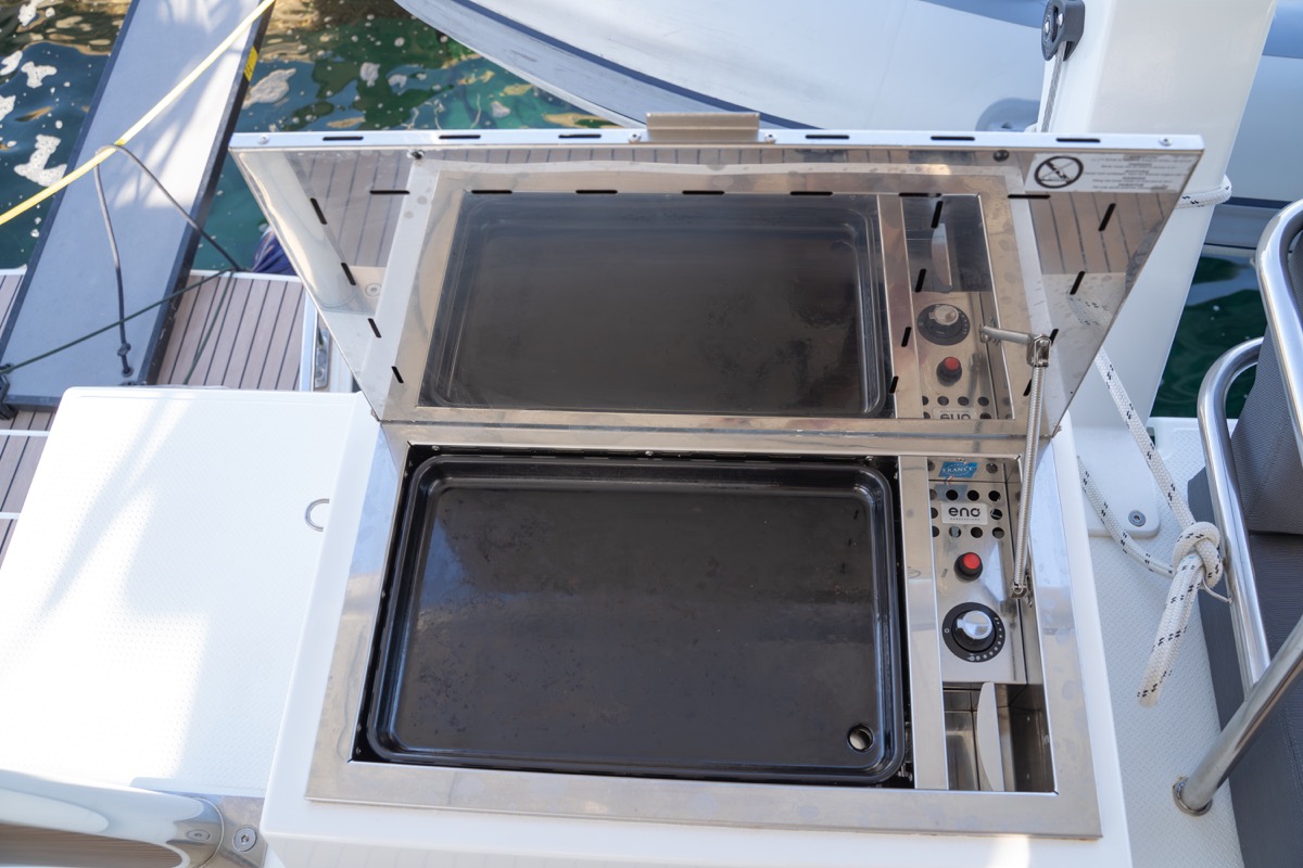| Inside | Backofen, Generator, Geschirrspüler, Inverter 12V/220V, Kaffeemaschine, Klimaanlage (ohne Landstrombedarf), Landstromkabel, Mokkakanne, Pantryausstattung, Radio, USB Steckdosen in den Kabinen, Ventilator, Ventilatoren in Kabinen, Warmwasser, Watermaker |