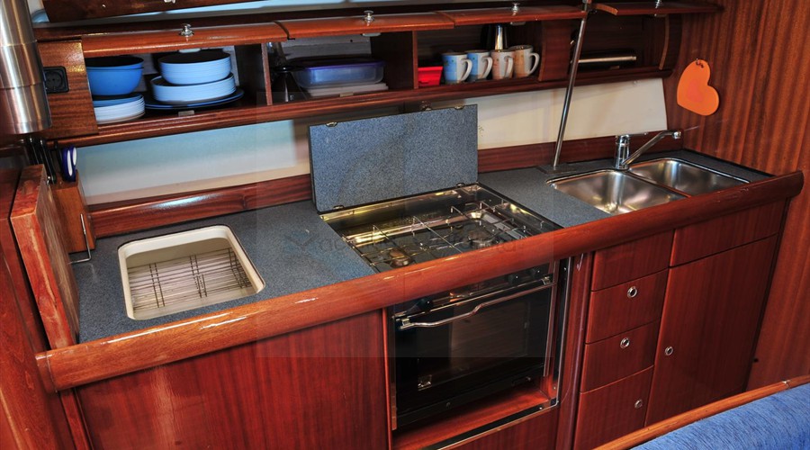 | Outside | Anker mit Kette, Biminitop, Cockpitlautsprecher, elektr. Ankerwinsch, Gangway, Solaranlage, Sprayhood, Teak im Cockpit |