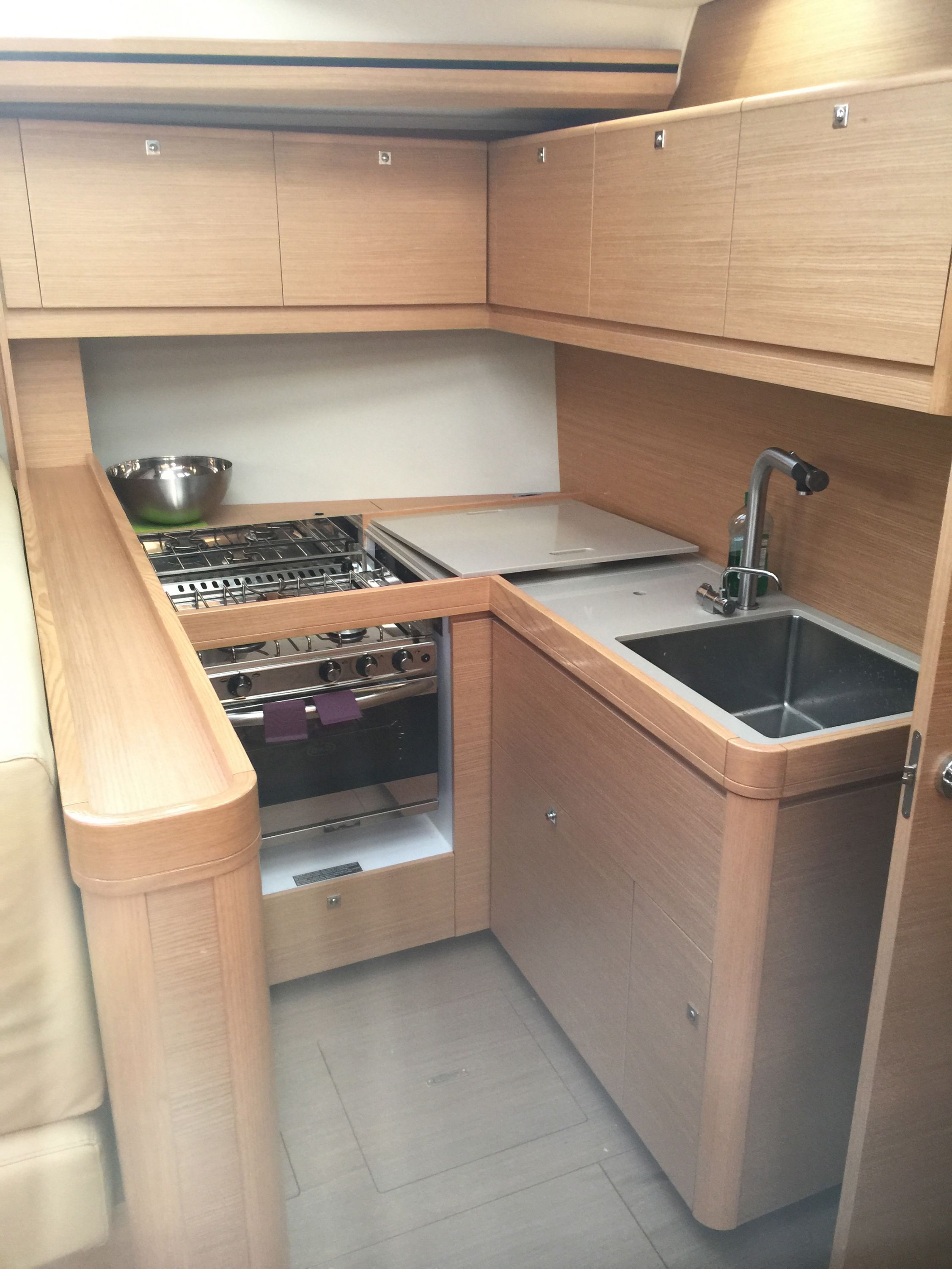 | Inside | Gefrierschrank, Heizung, Inverter 12V/220V, Kühlschrank, Ladegerät, Mikrowelle, Pantryausstattung, Radio, Spülbecken, Süßwasser-Aufbereitungsanlage, TV, Warmwasser, WC (elektr.) |
