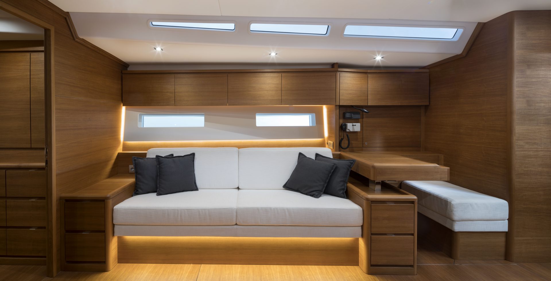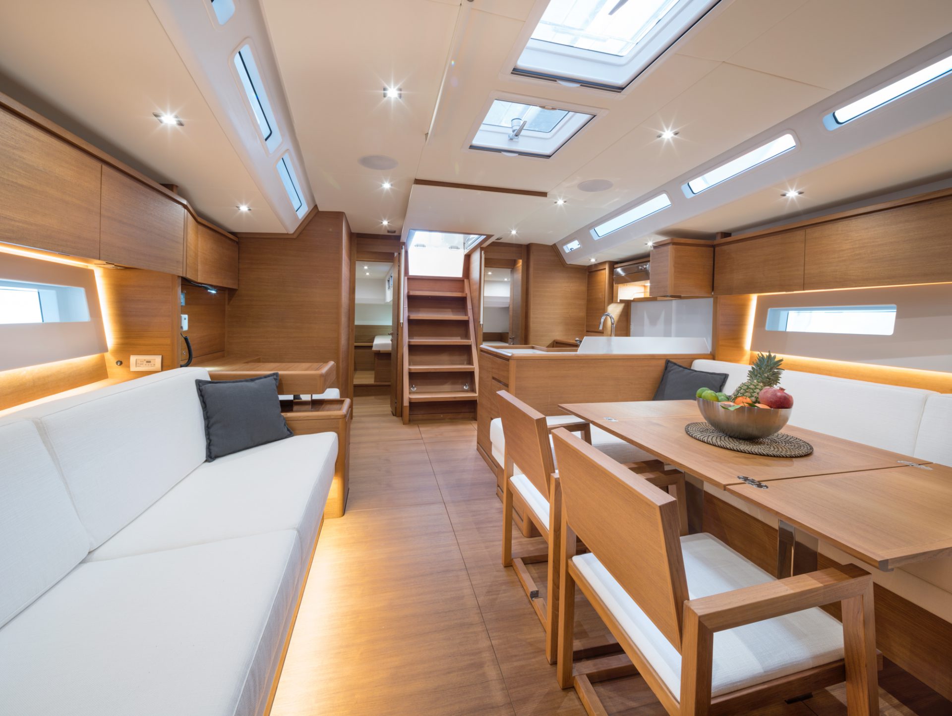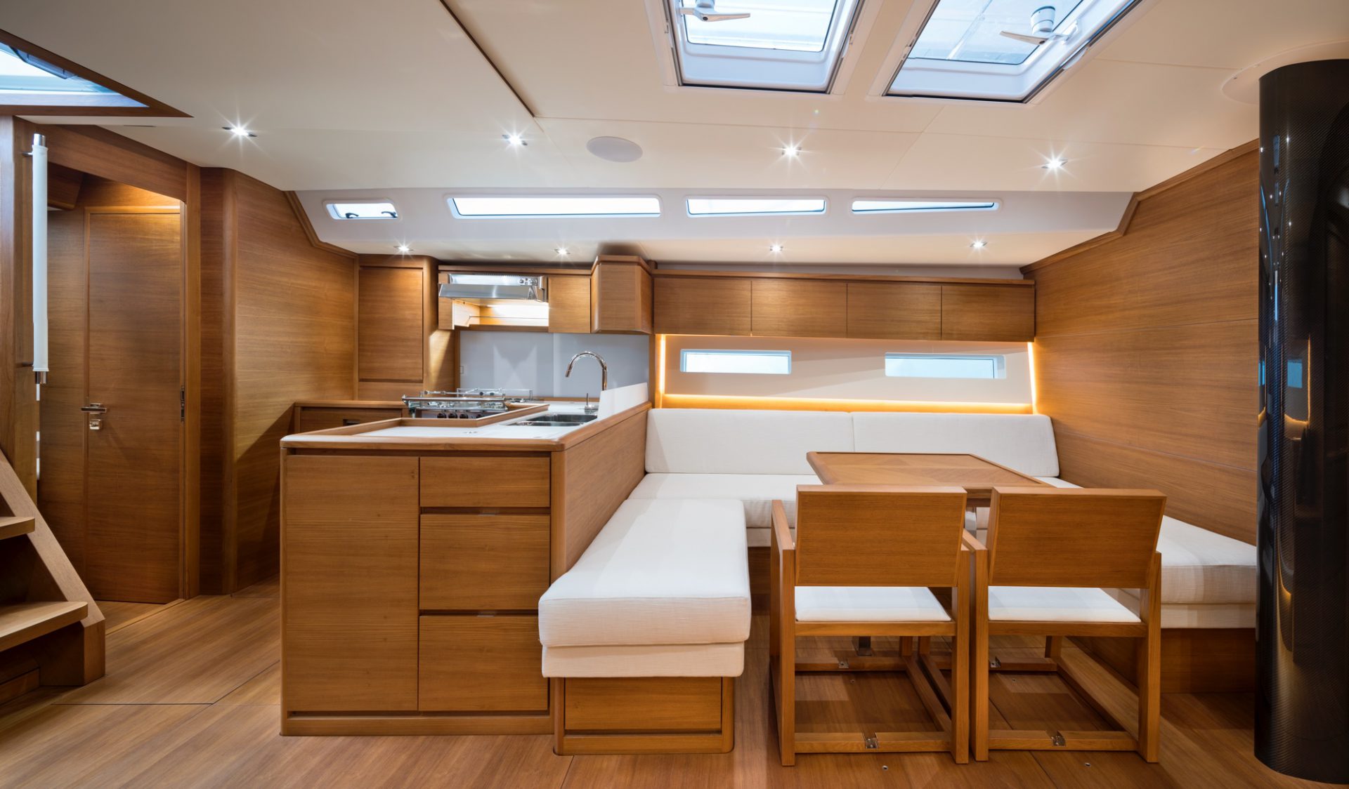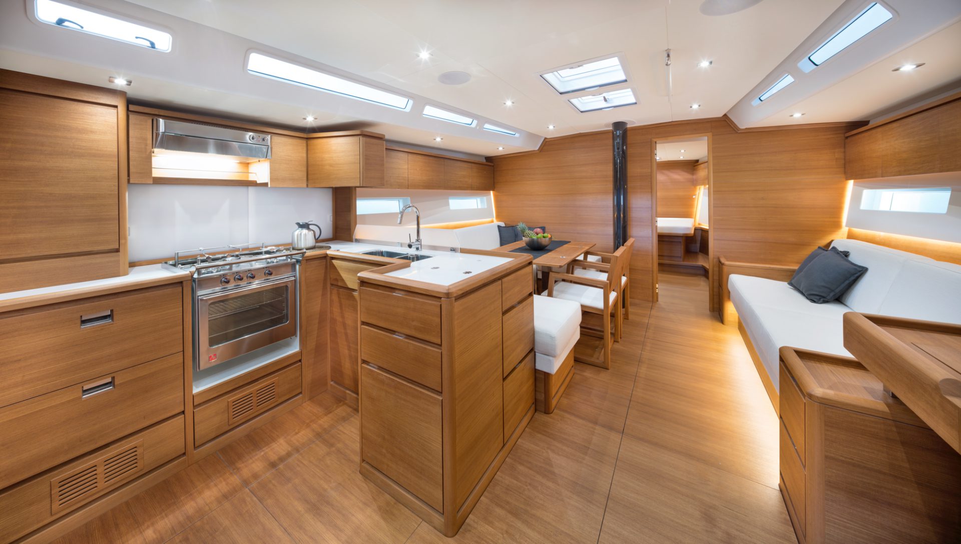| Inside | Geschirrspüler, Klimaanlage (ohne Landstrombedarf), Lautsprecher im Salon, Mikrowelle, Radio, Salontisch absenkbar, Trockner, TV, Waschmaschine, Watermaker, WC (elektr.) |