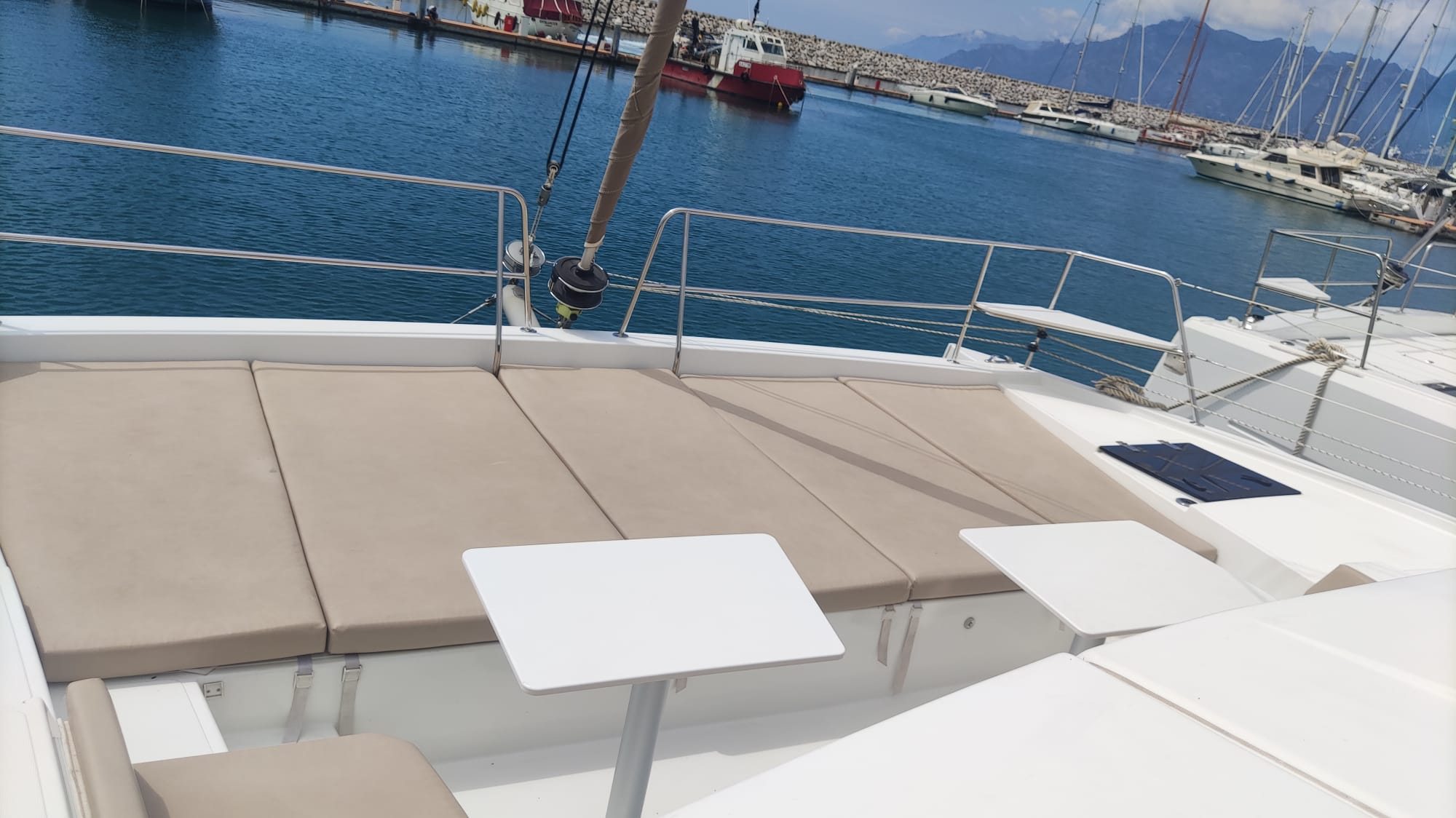 | Inside | 3-flammiger Gasherd, Borduhr, Generator, Inverter 12V/220V, Klimaanlage (ohne Landstrombedarf), Landstromkabel, Luftpumpe für Beiboot, Pantryausstattung, Radio, Salontisch absenkbar, WC (elektr.) |