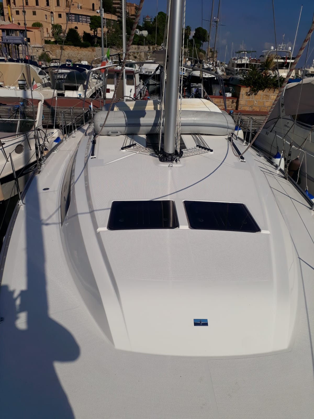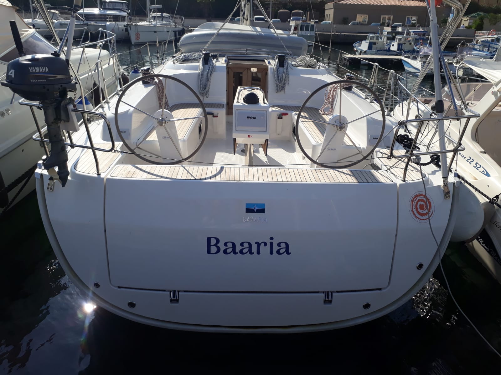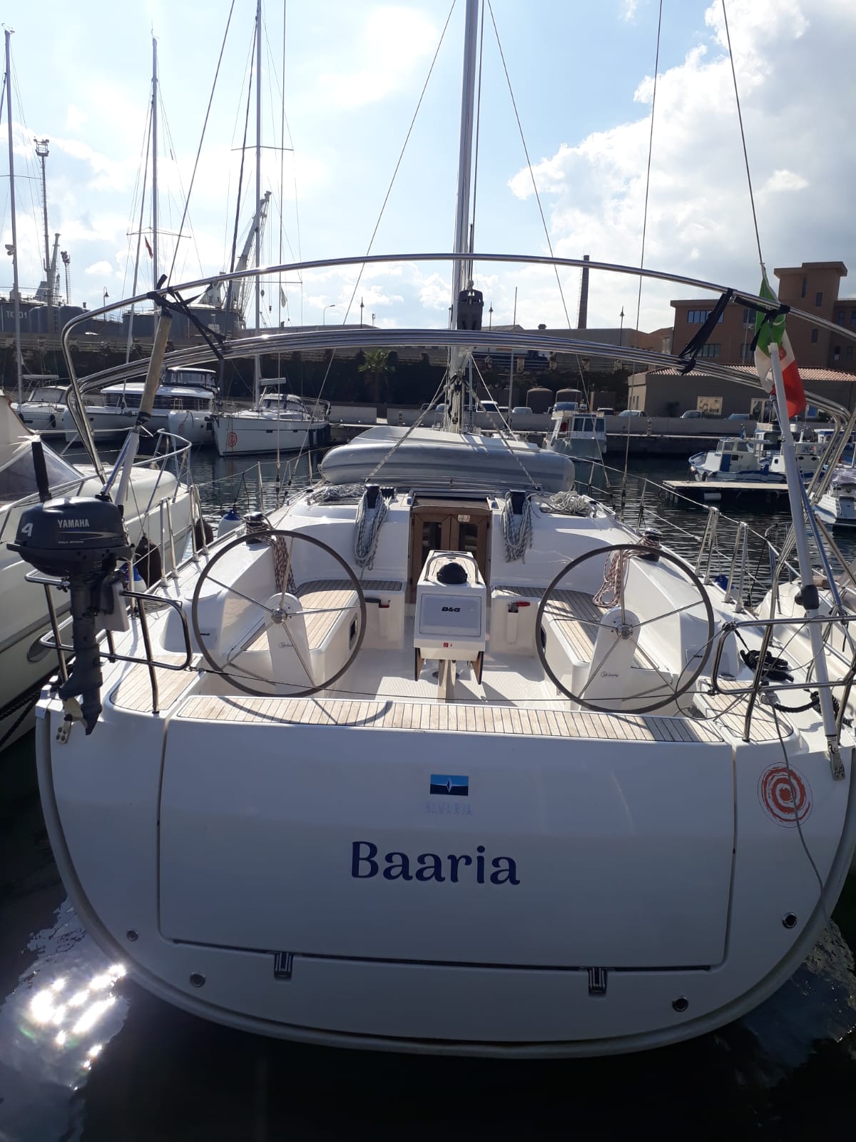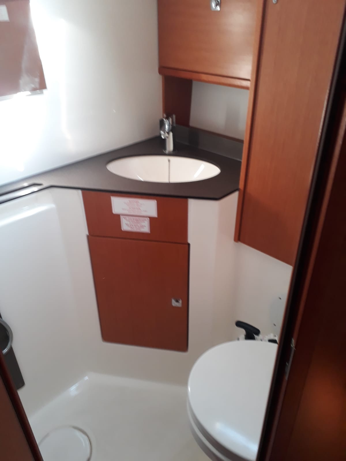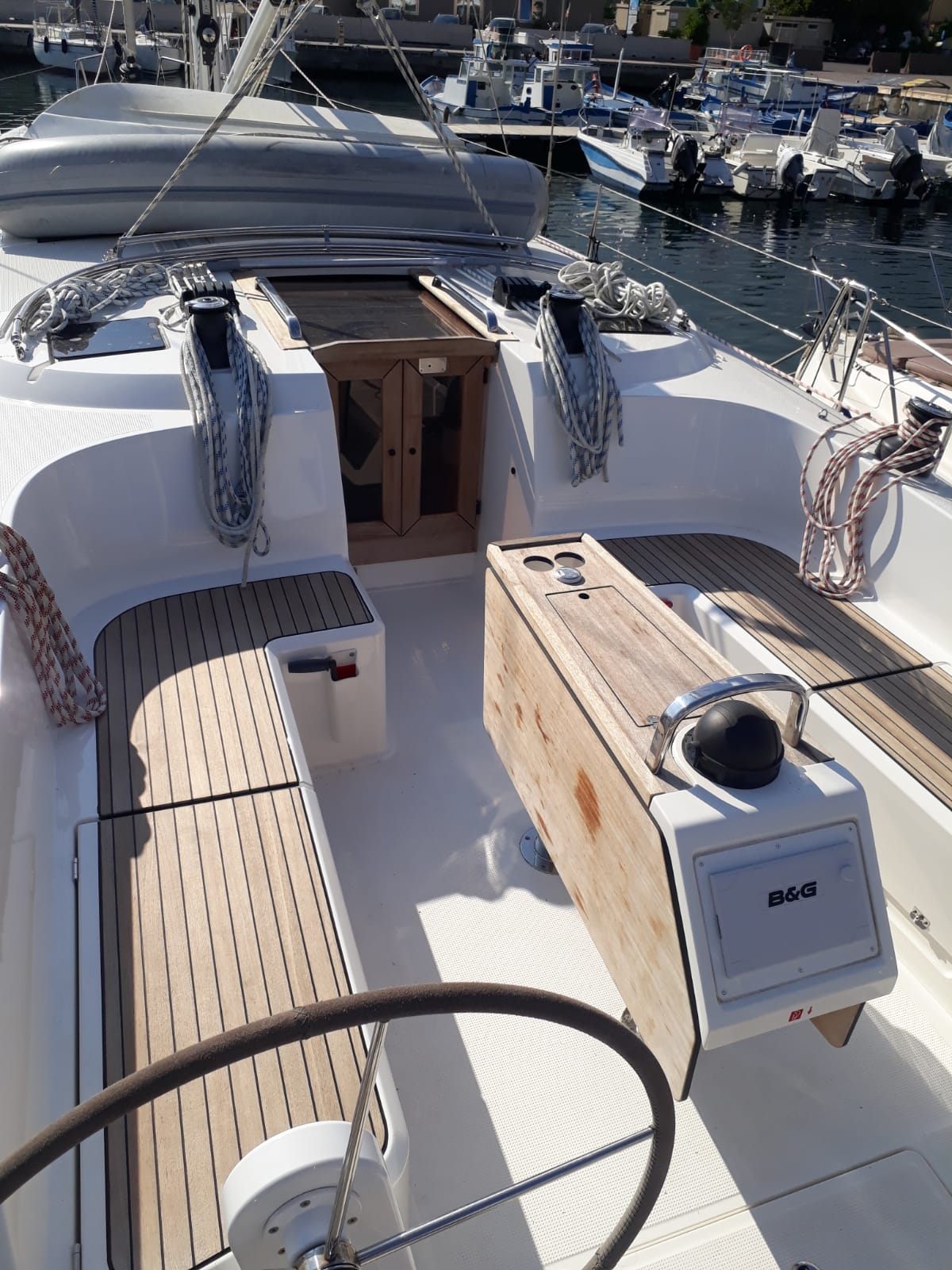 | Outside | Biminitop, Cockpitdusche, elektr. Ankerwinsch, Festmacherleinen, Sprayhood |
