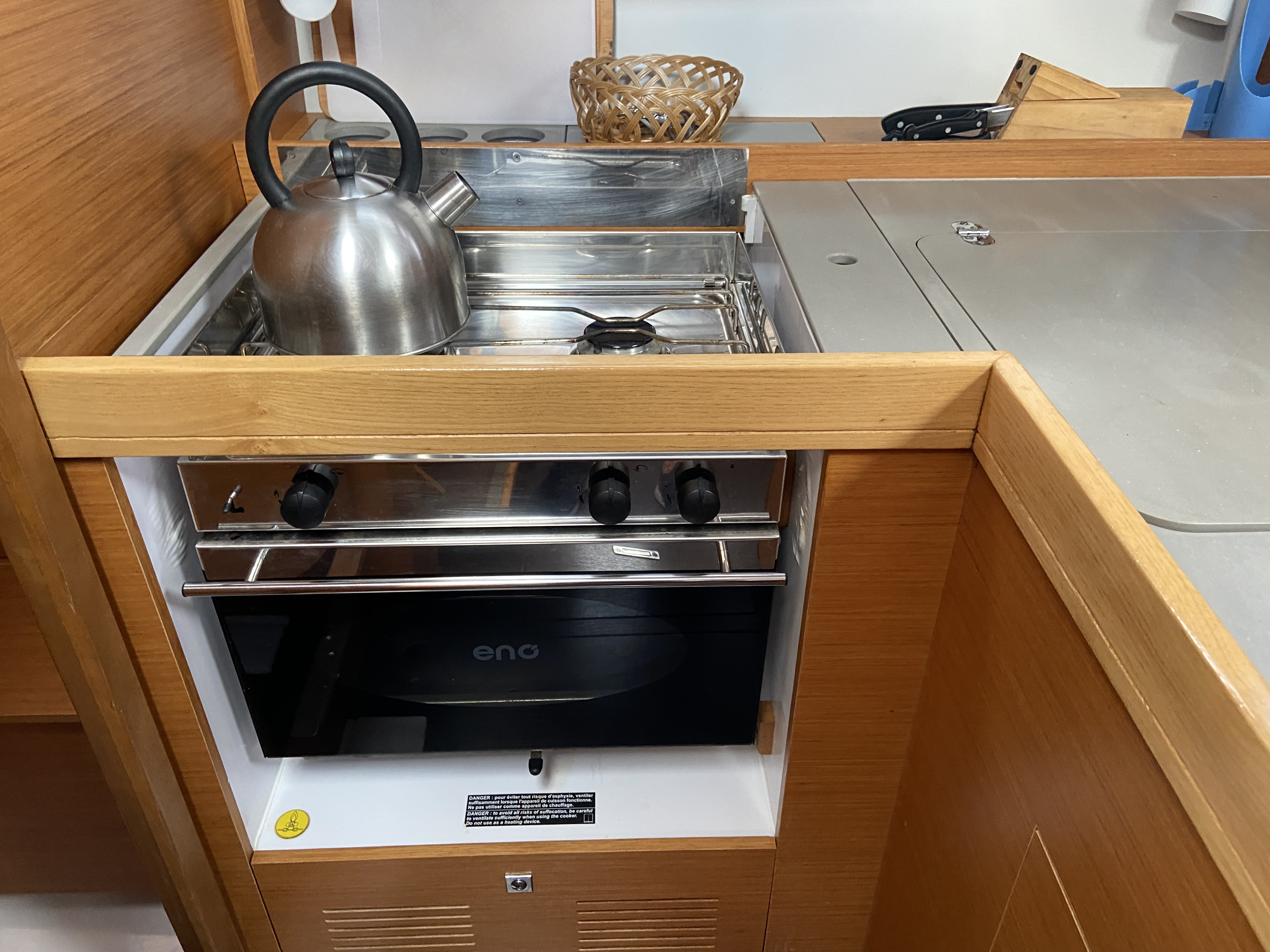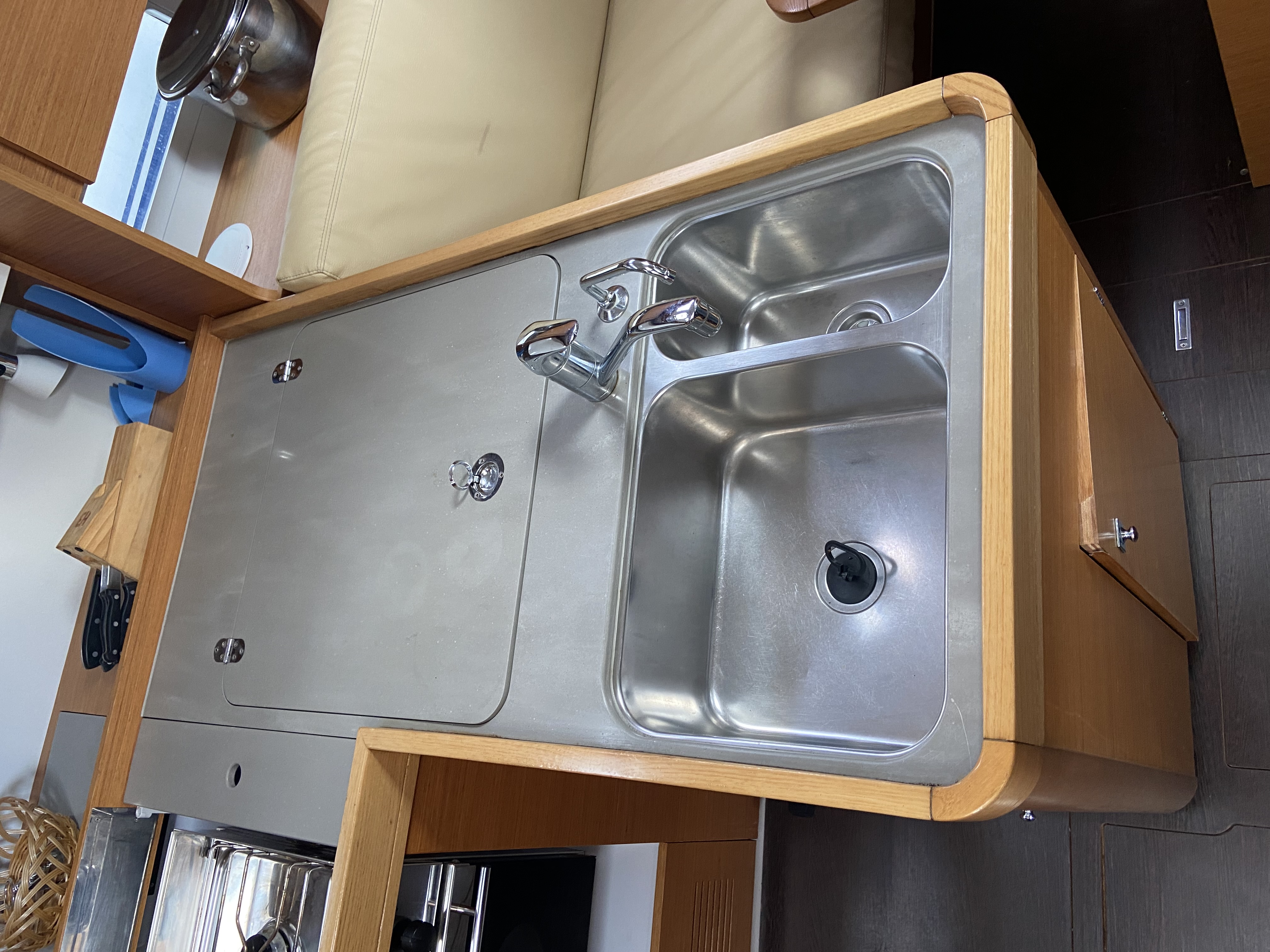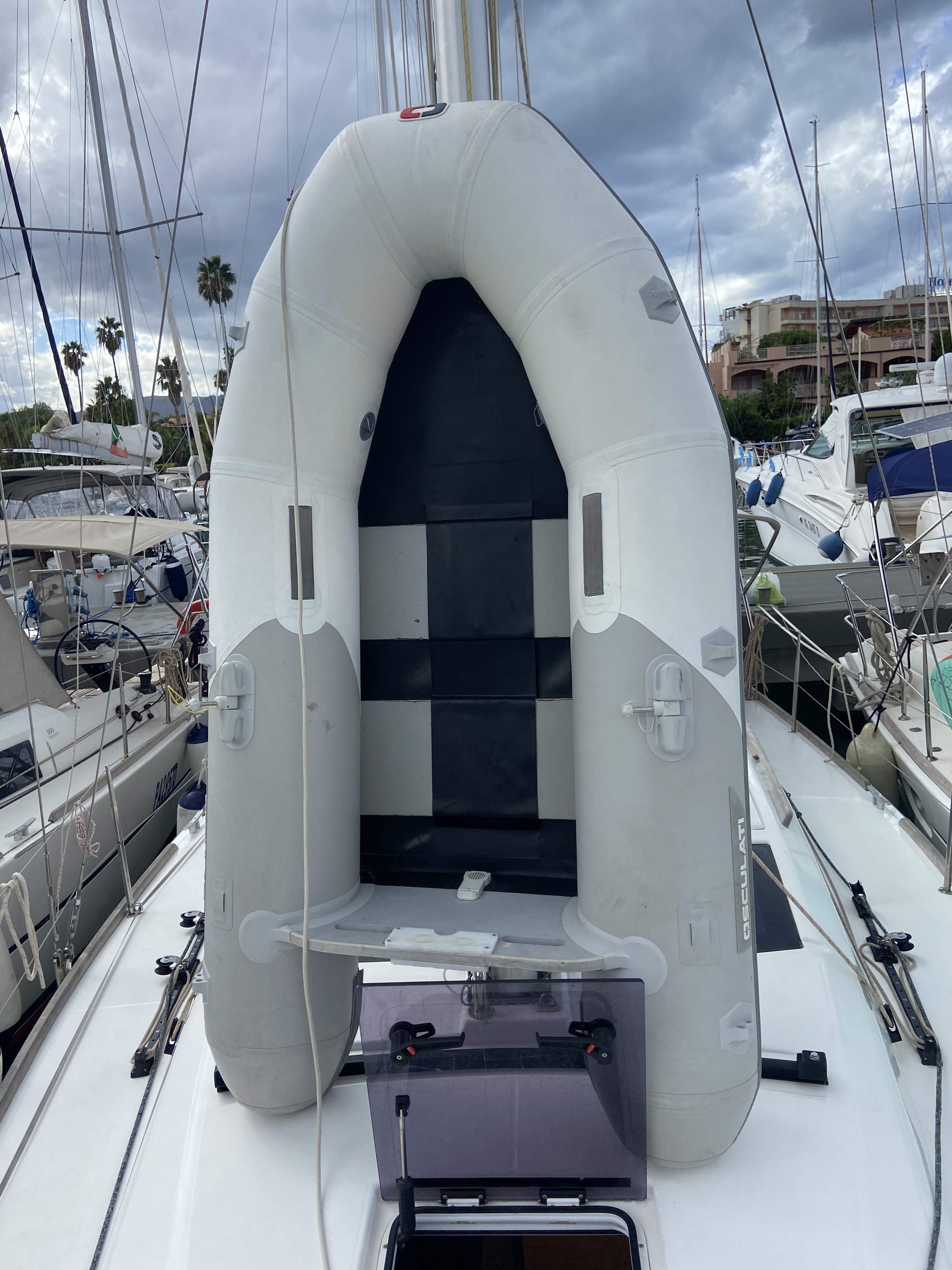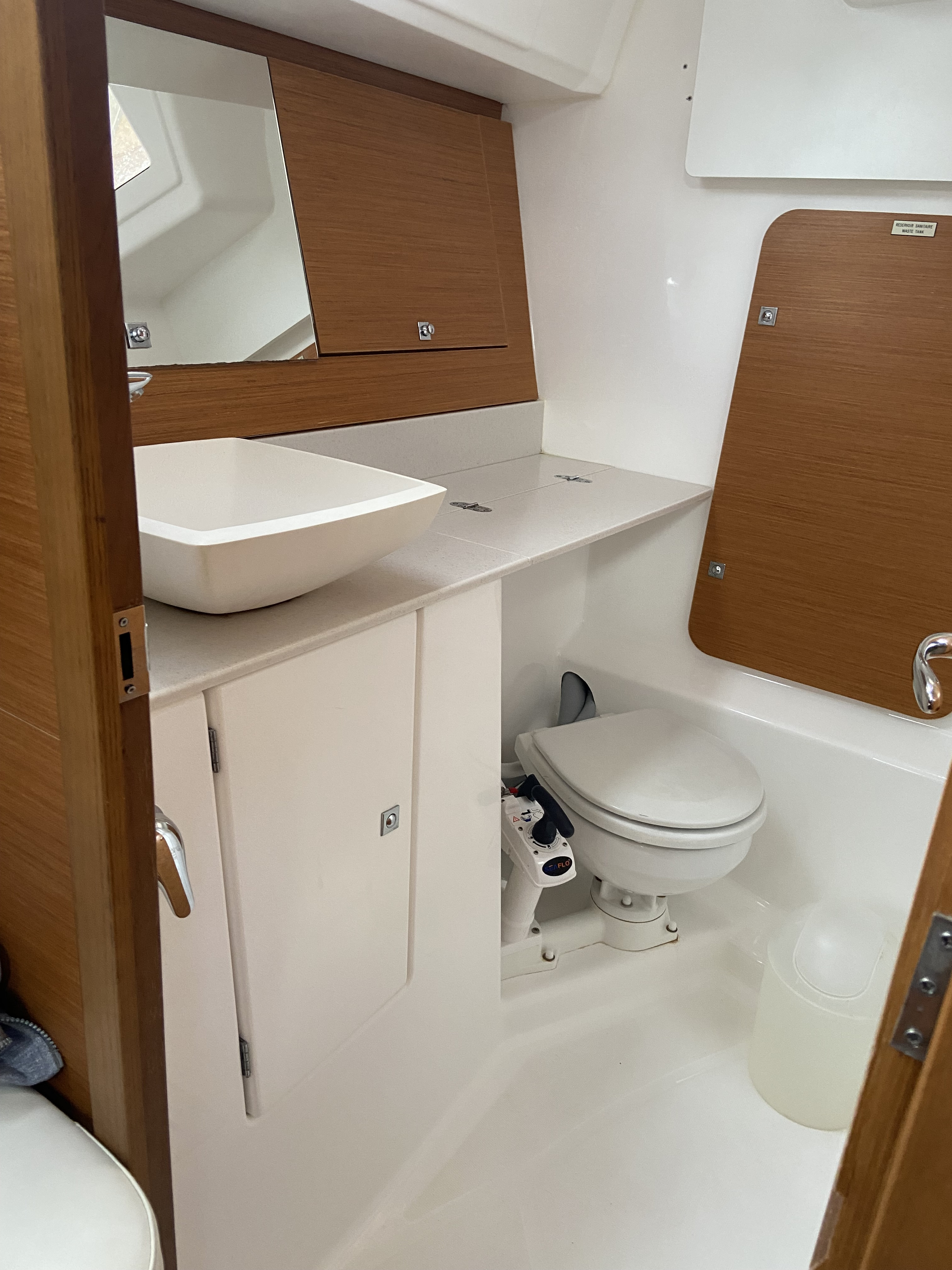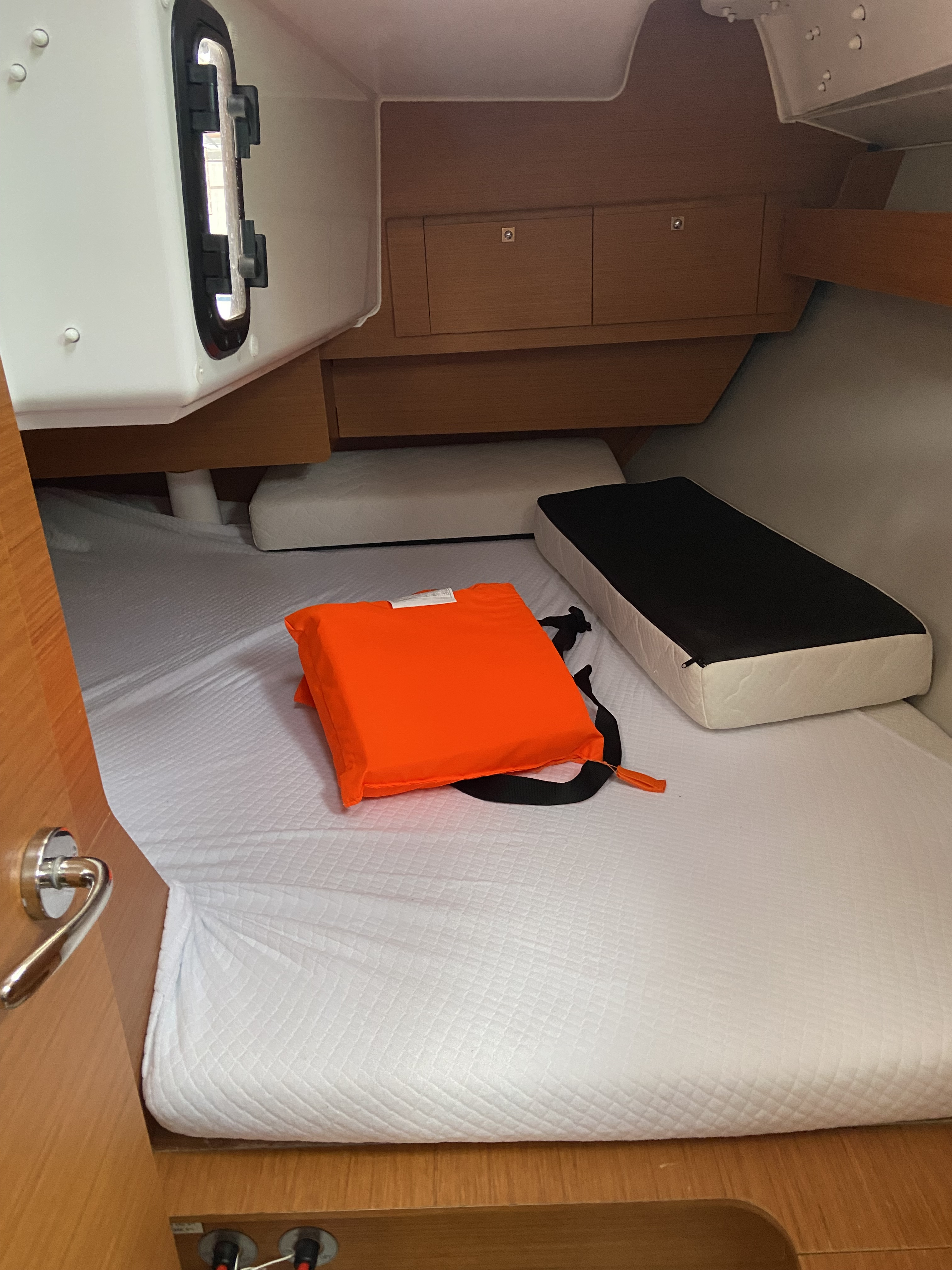 Outside 220 V-Landanschluss, Anker mit Kette, Biminitop, Cockpitlautsprecher, Cockpitpolster, Cockpittisch, Deckbeleuchtung, elektr. Ankerwinsch, Sprayhood