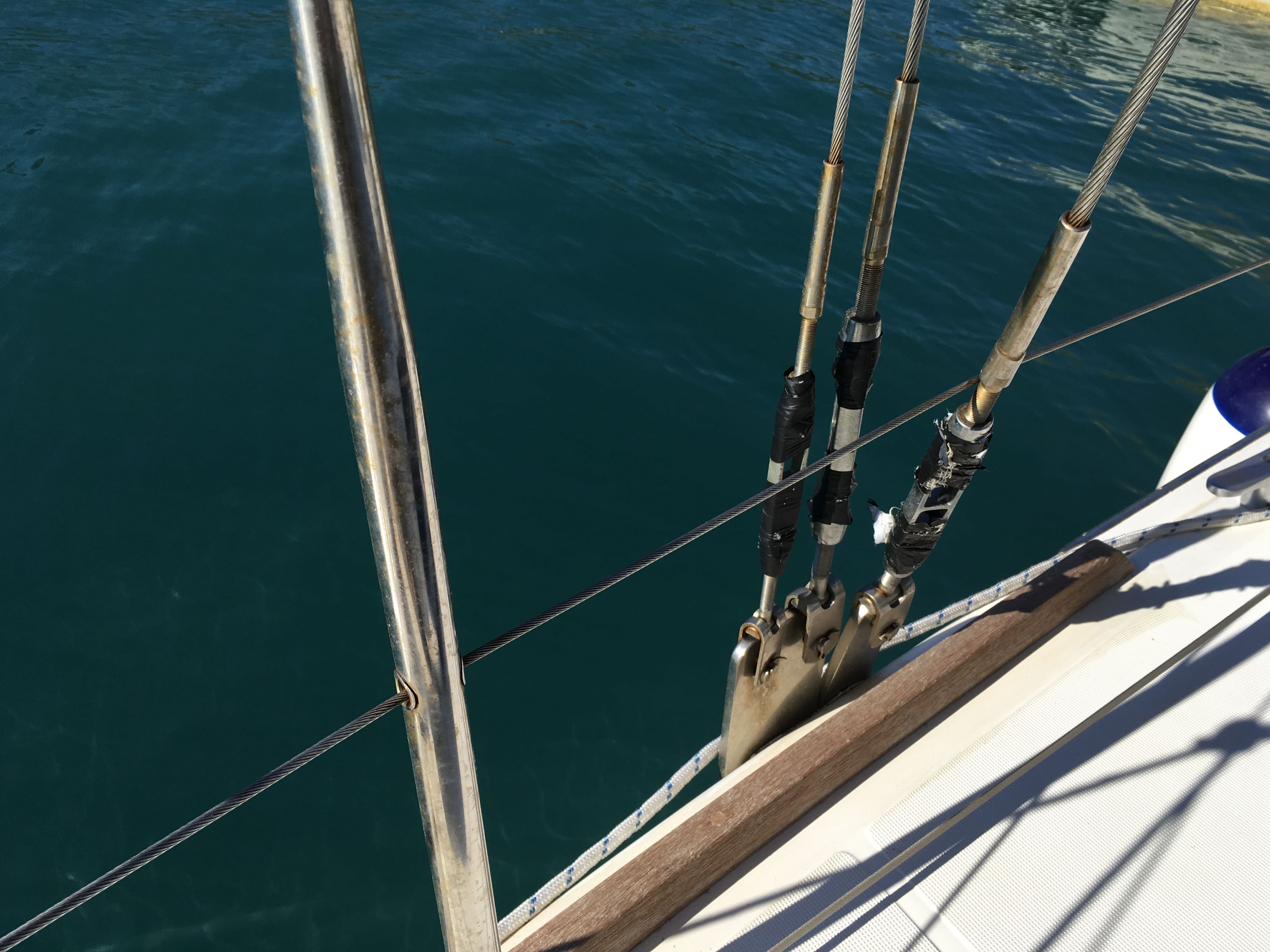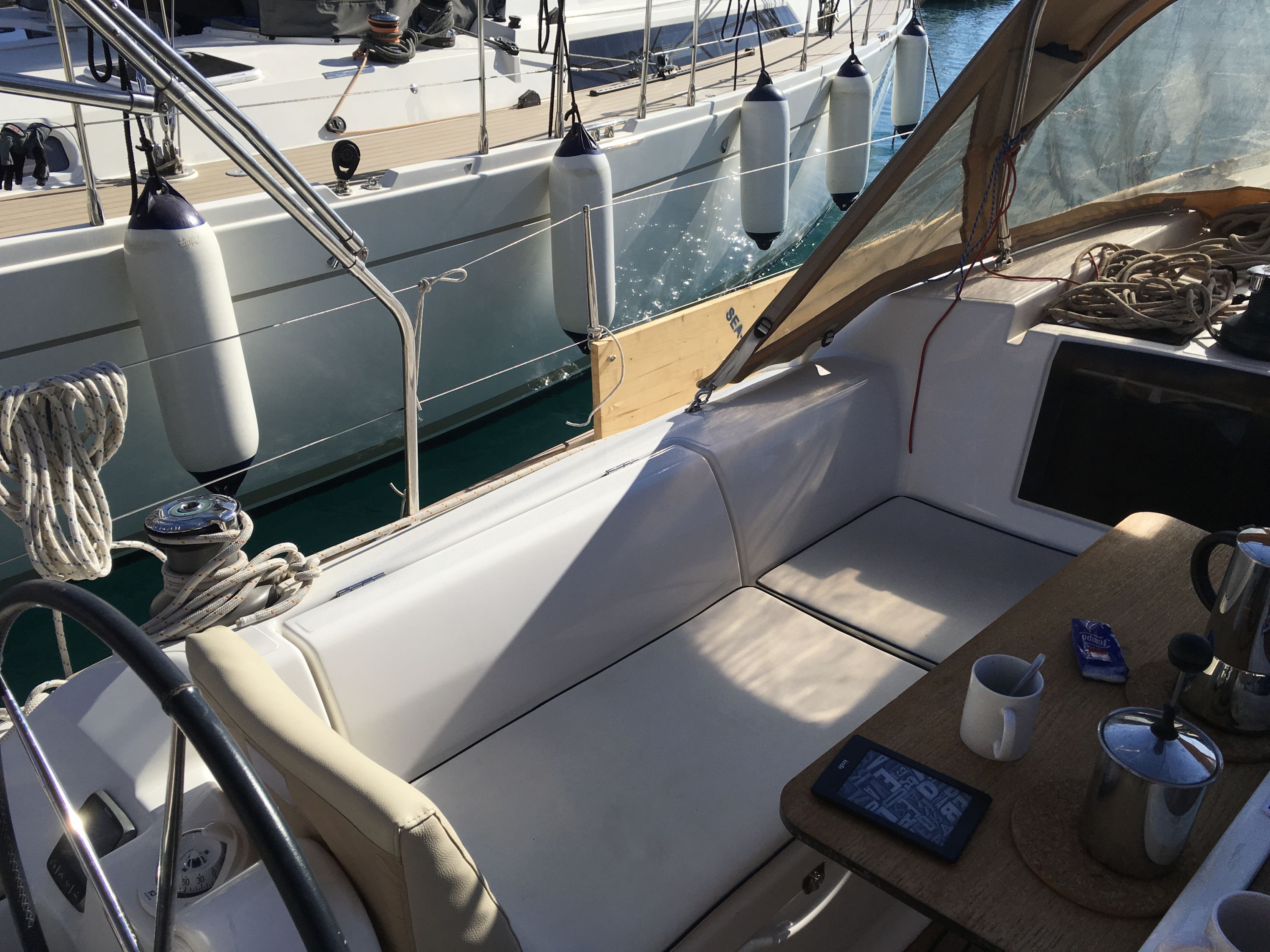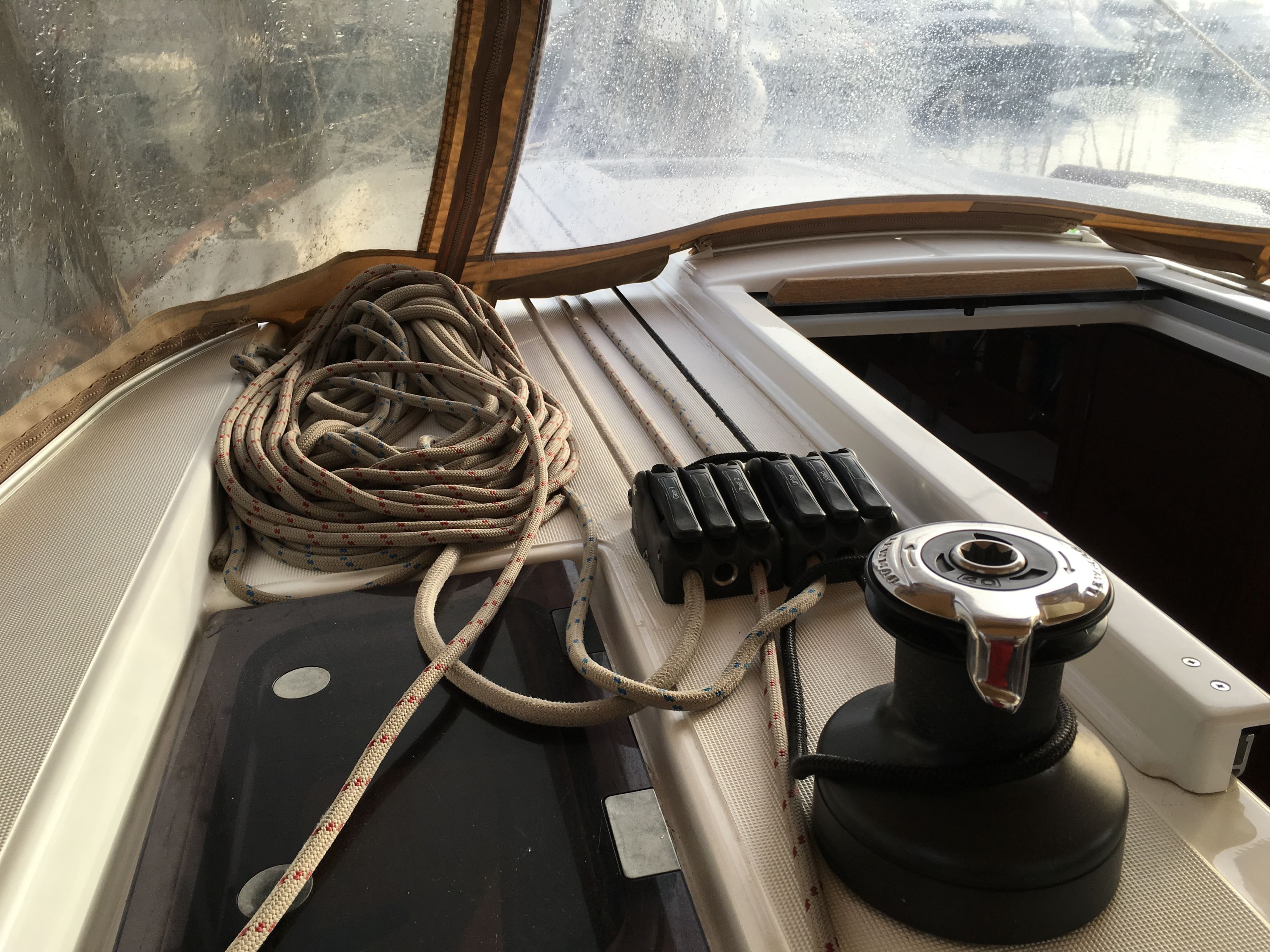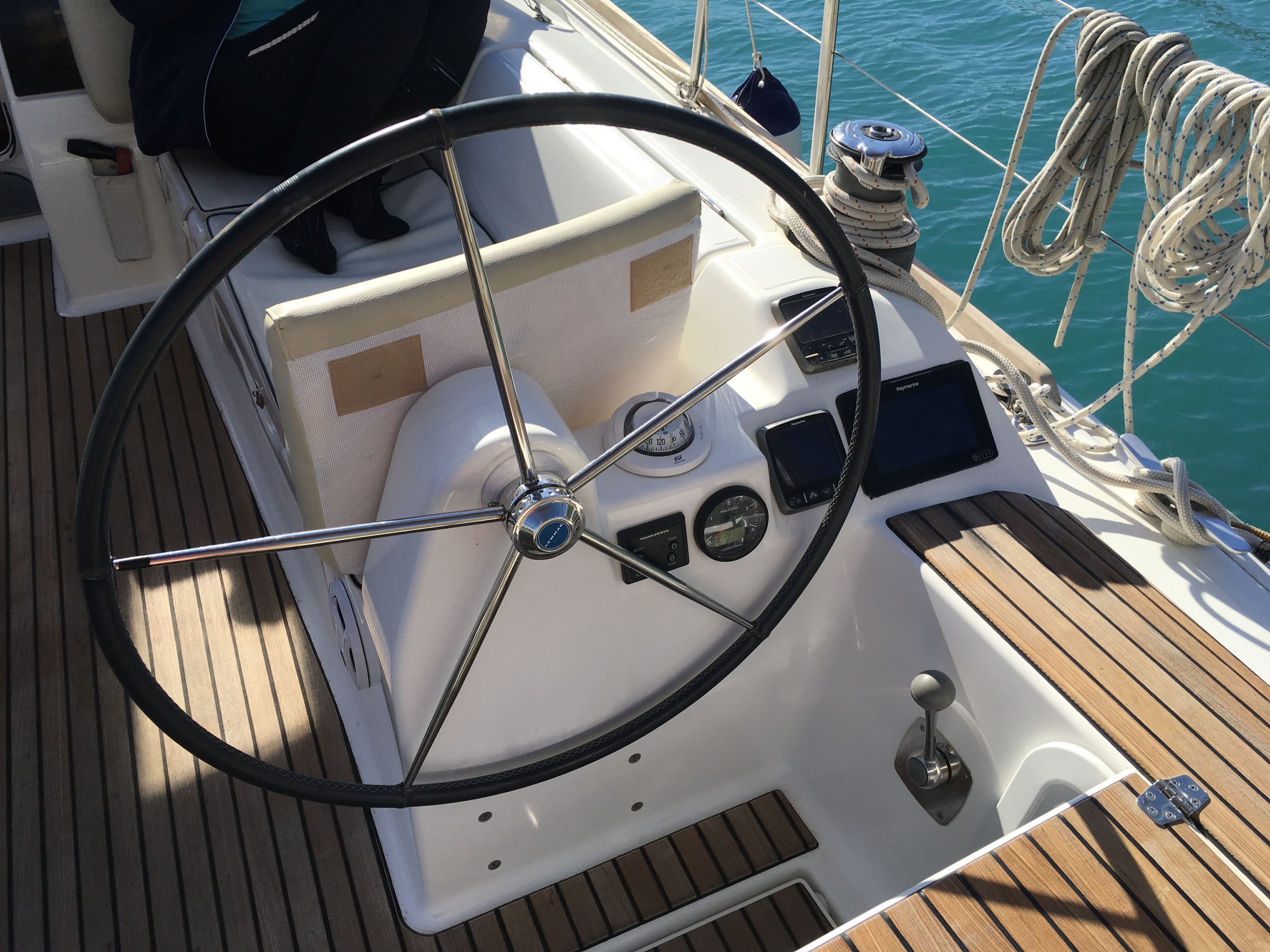 | Navigation | Barometer, Echolot, elektr. Seekarten, Fernglas, GPS mit Kartenplotter, GPS mit Kartenplotter im Cockpit, Hafenhandbücher, Handpeilkompass, Kompass, Seekarten, Sumlog, Windmesser |