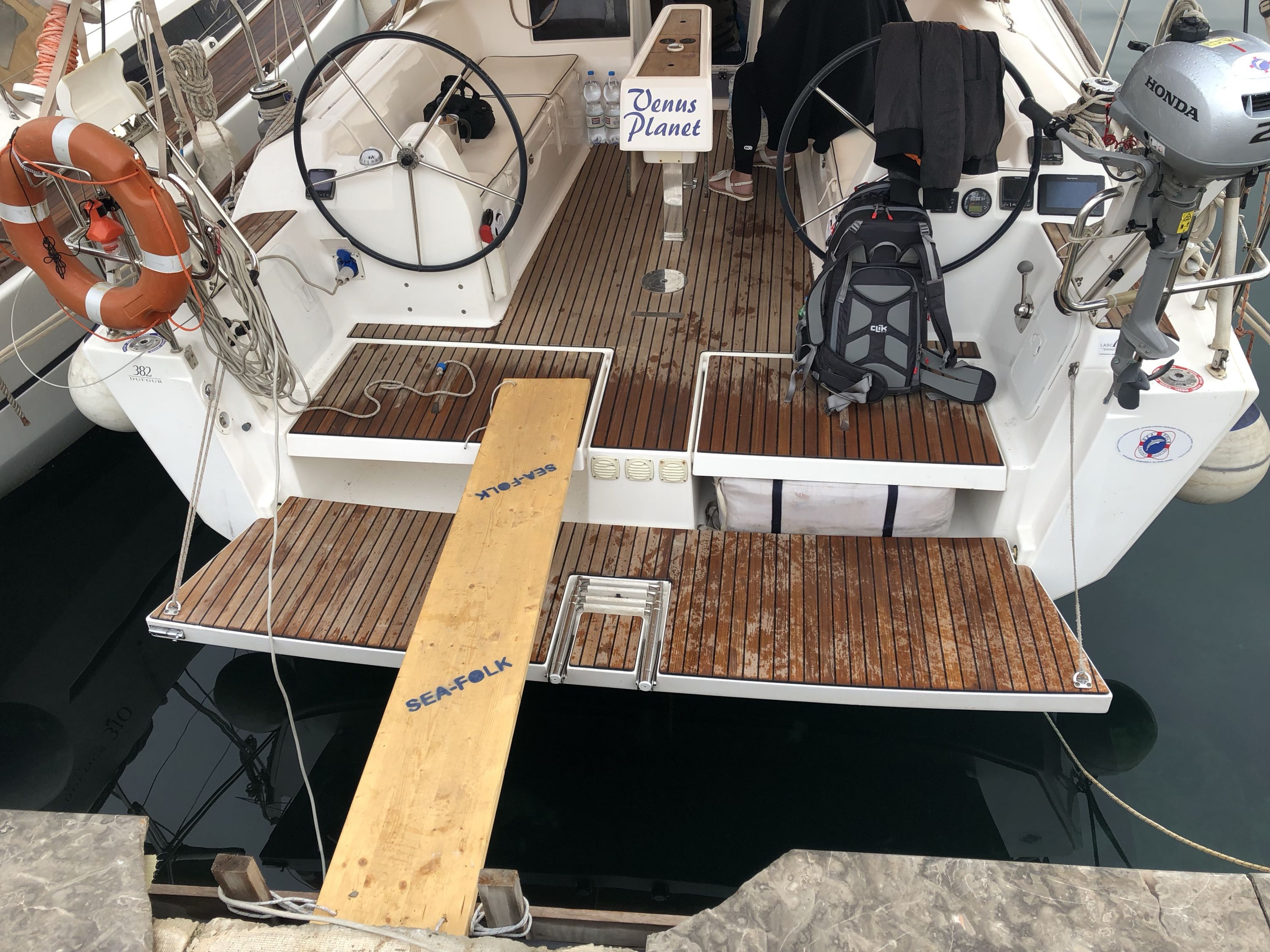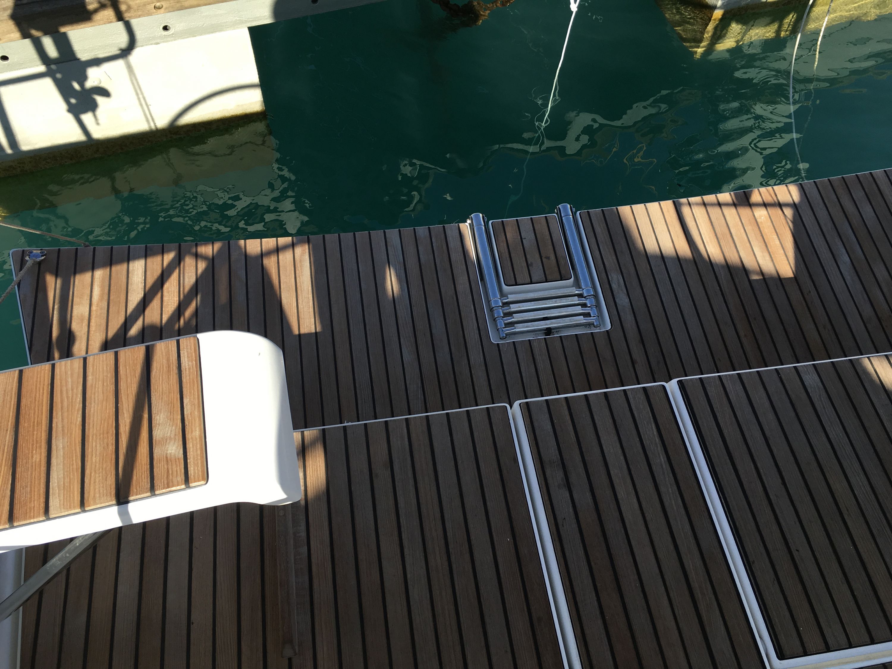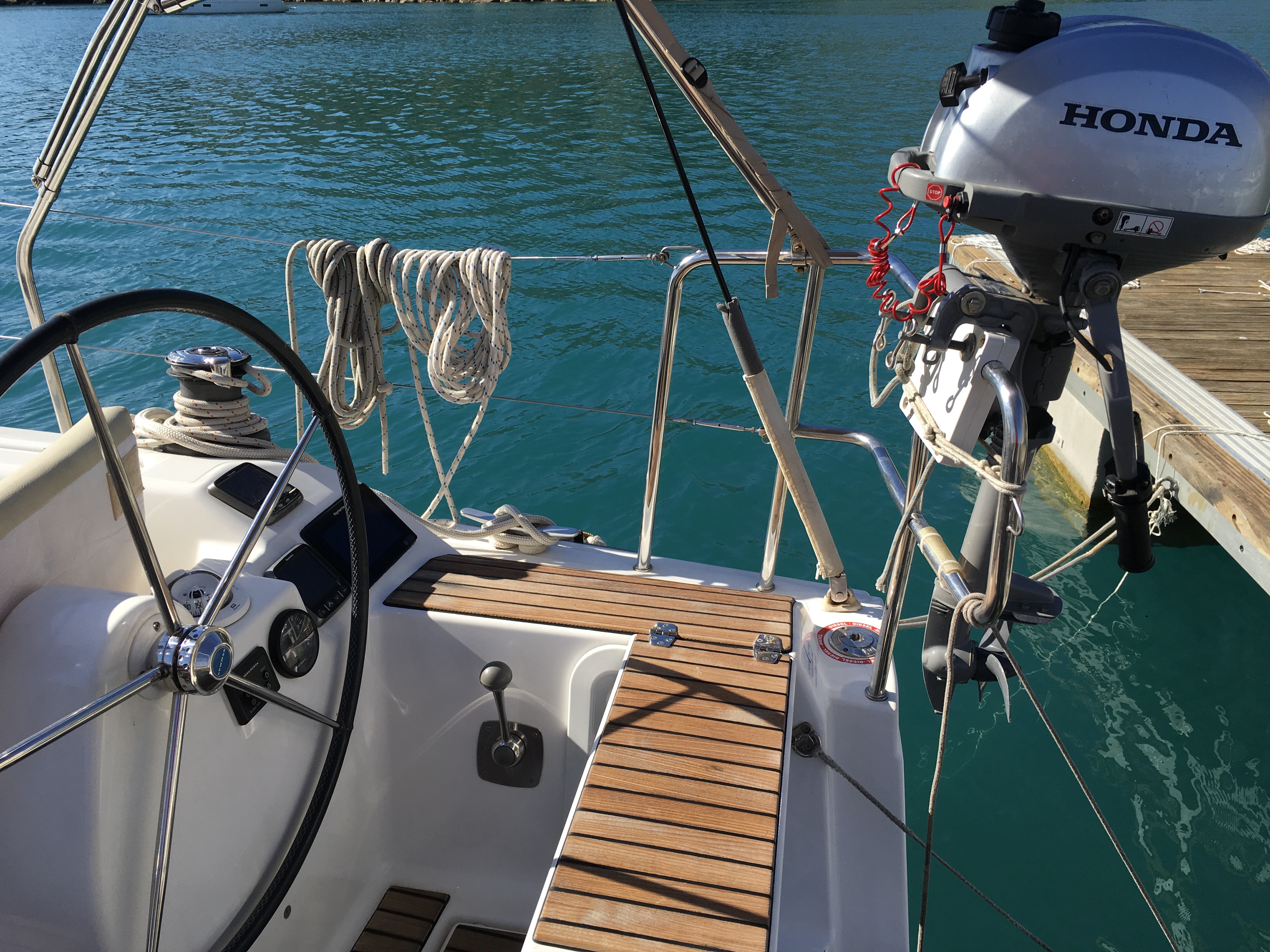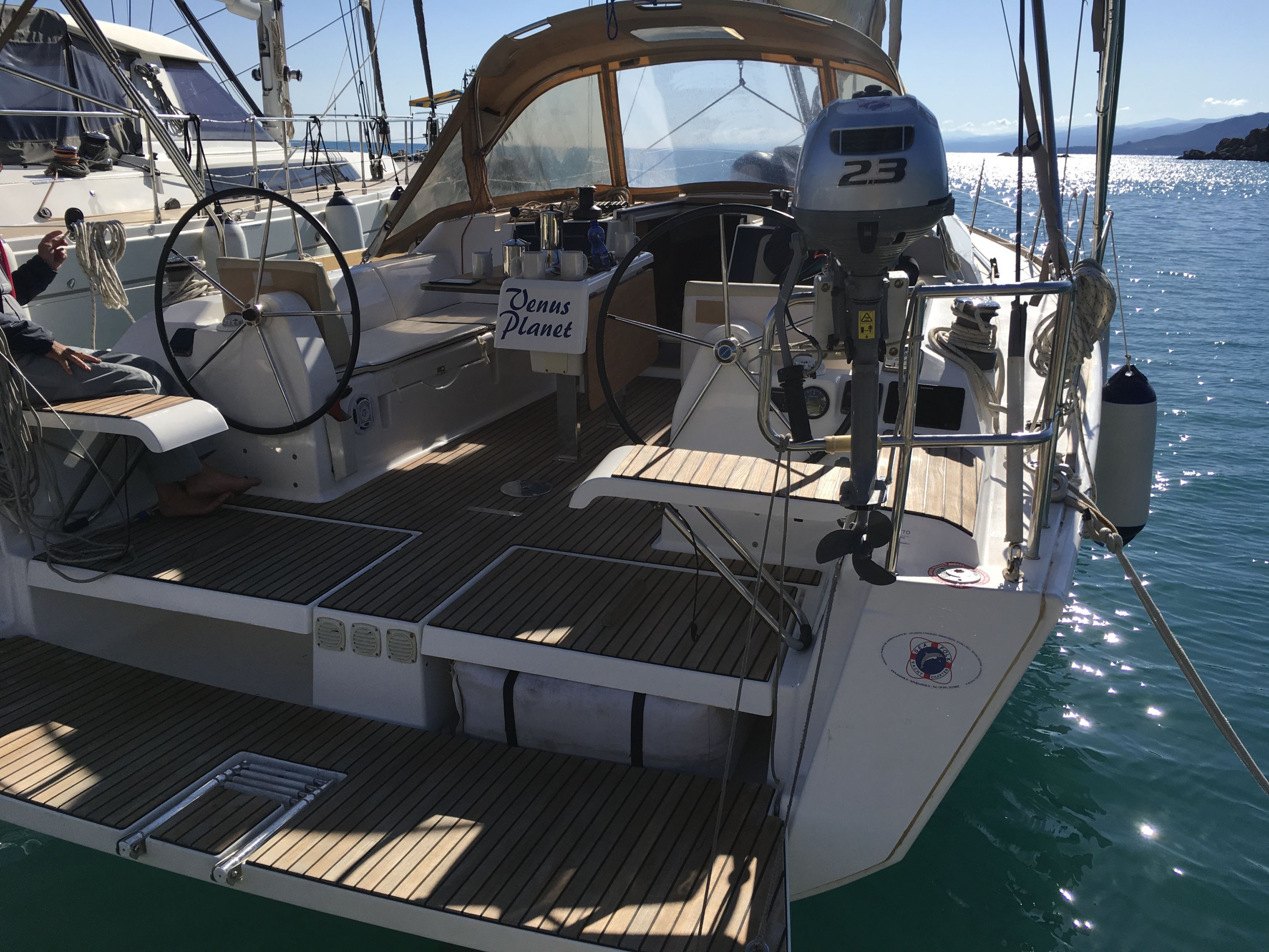 | Outside | 220 V-Landanschluss, Badeleiter, Biminitop, Cockpitdusche, Cockpitlautsprecher, Cockpitpolster, Cockpittisch, Deckbeleuchtung, Delta-Anker, elektr. Ankerwinsch, Gangway, Heckdusche, Sprayhood, Windex |