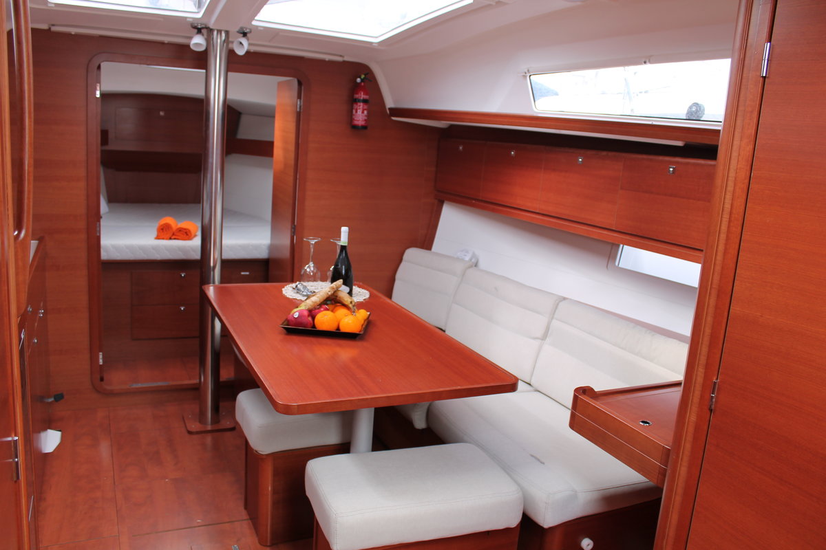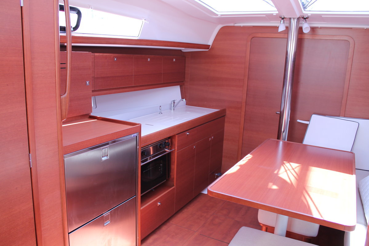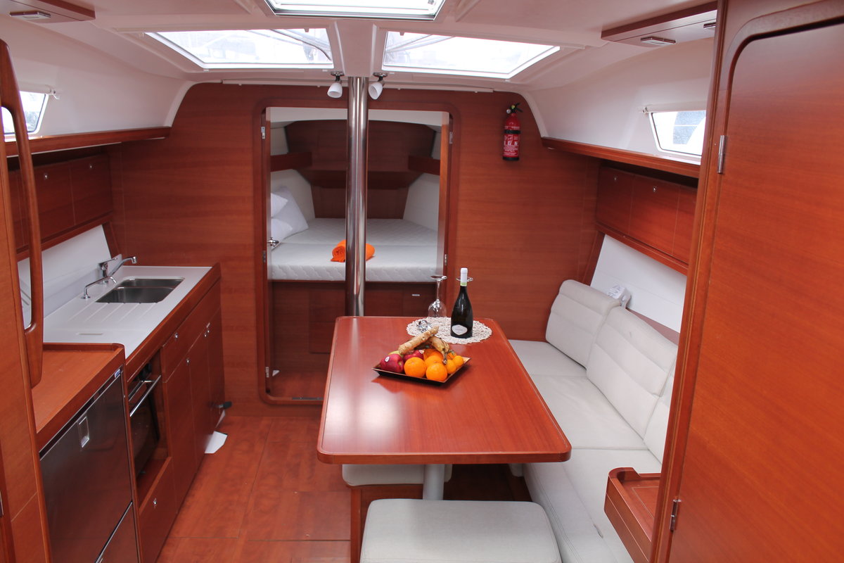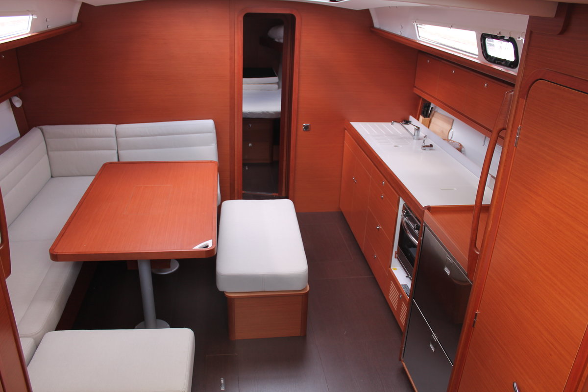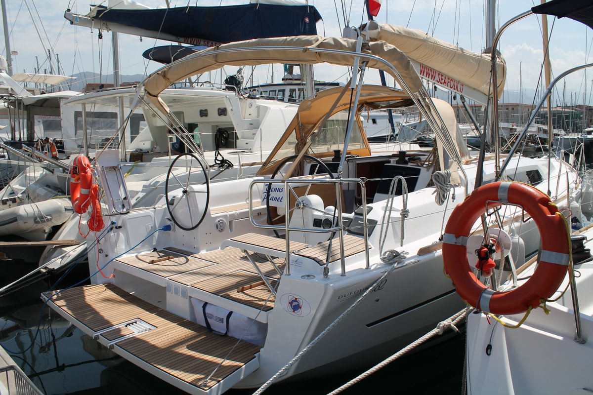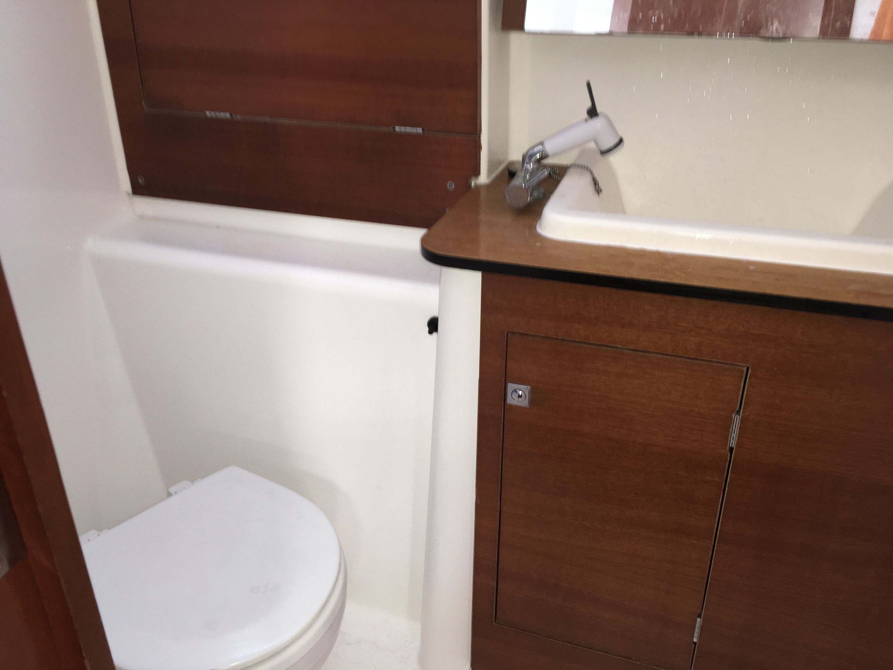 | Outside | 220 V-Landanschluss, Badeleiter, Biminitop, Cockpitdusche, Cockpitlautsprecher, Cockpitpolster, Cockpittisch, Deckbeleuchtung, Delta-Anker, elektr. Ankerwinsch, Gangway, Heckdusche, Sprayhood, Windex |