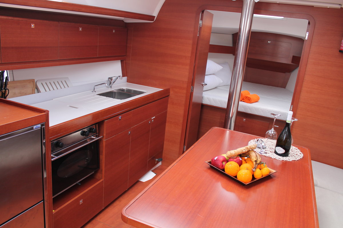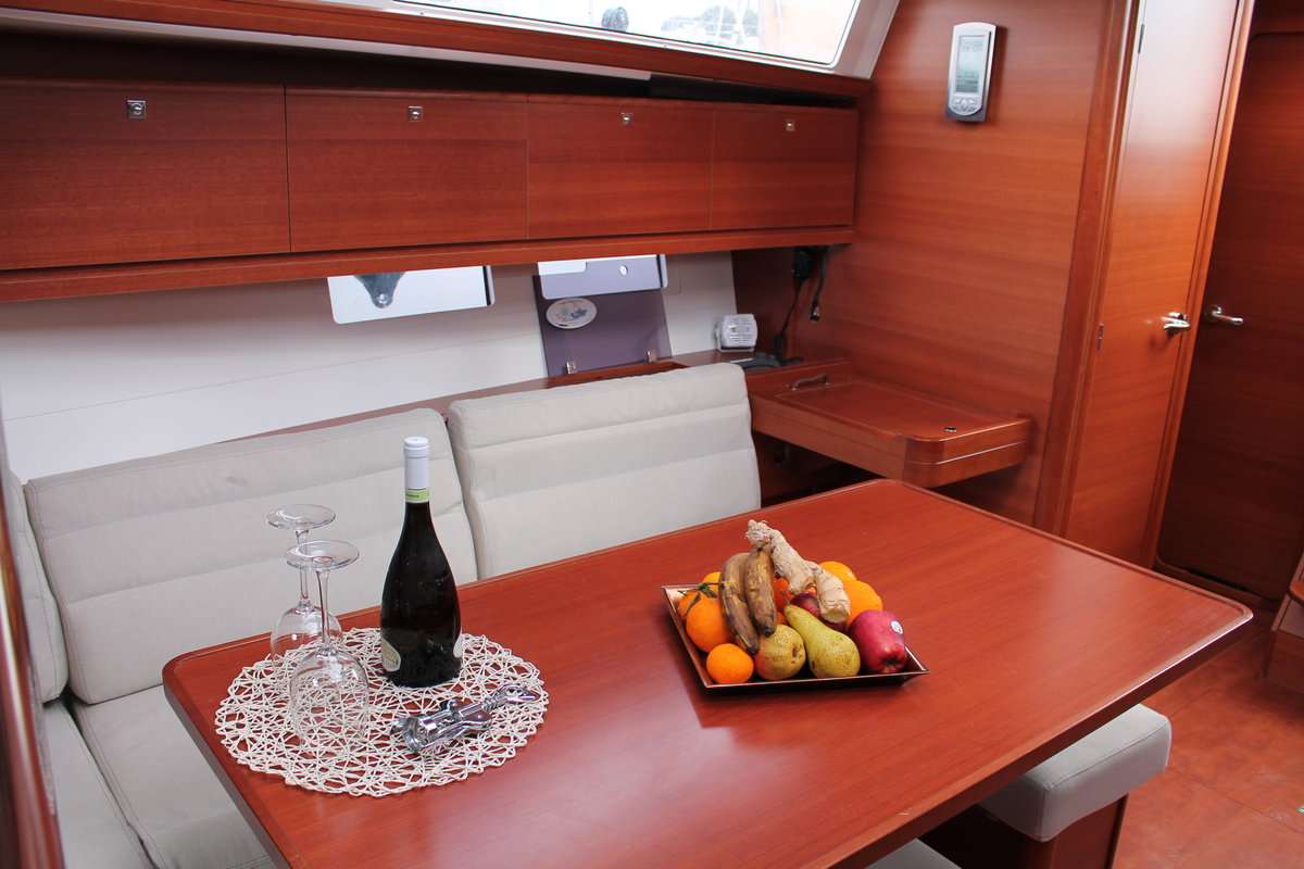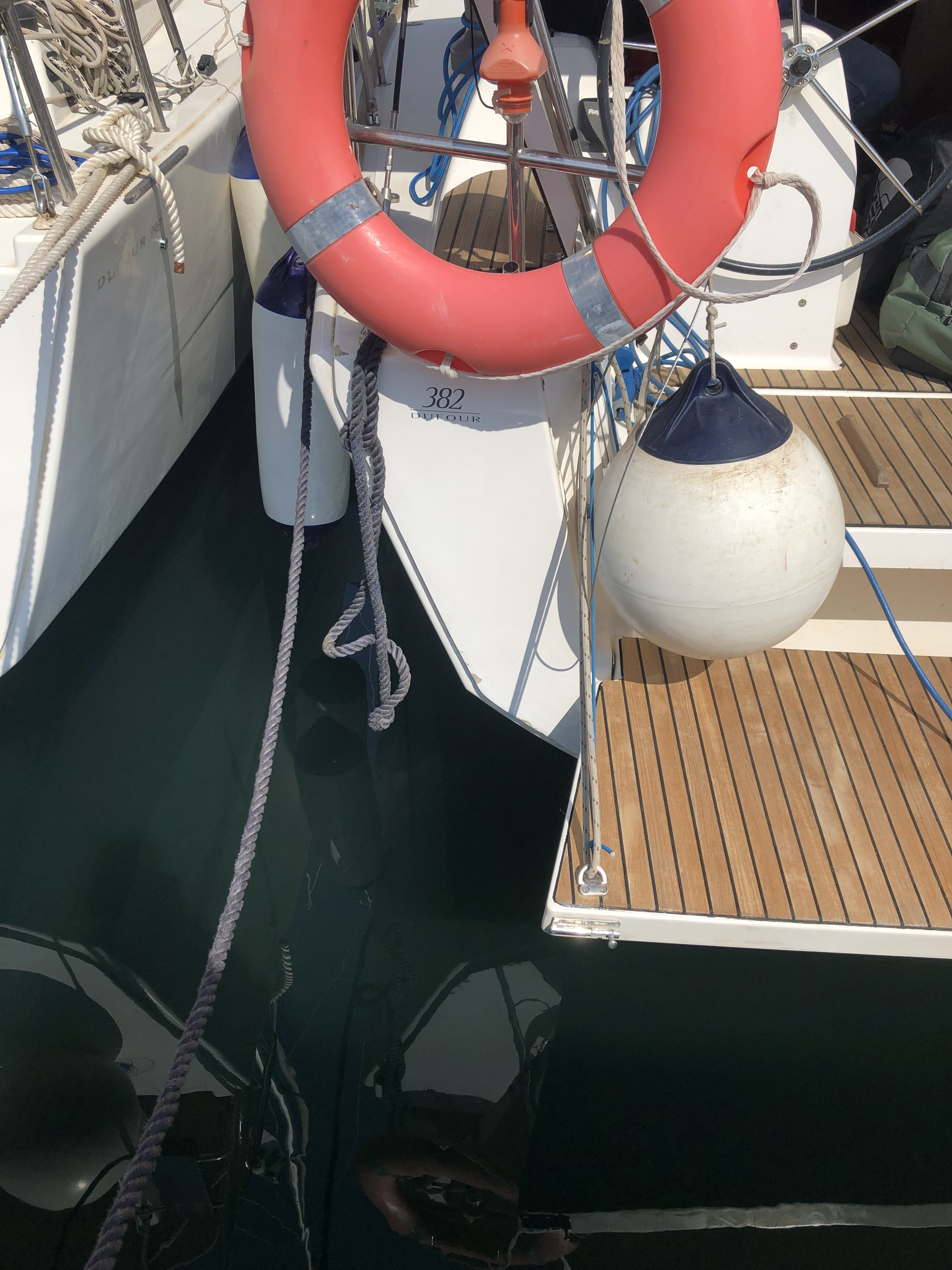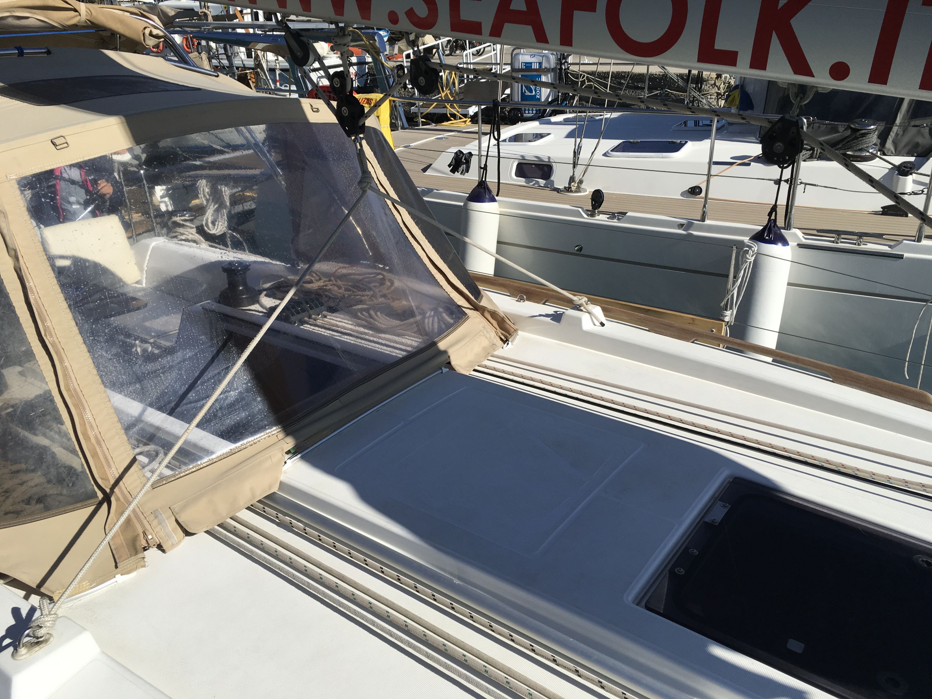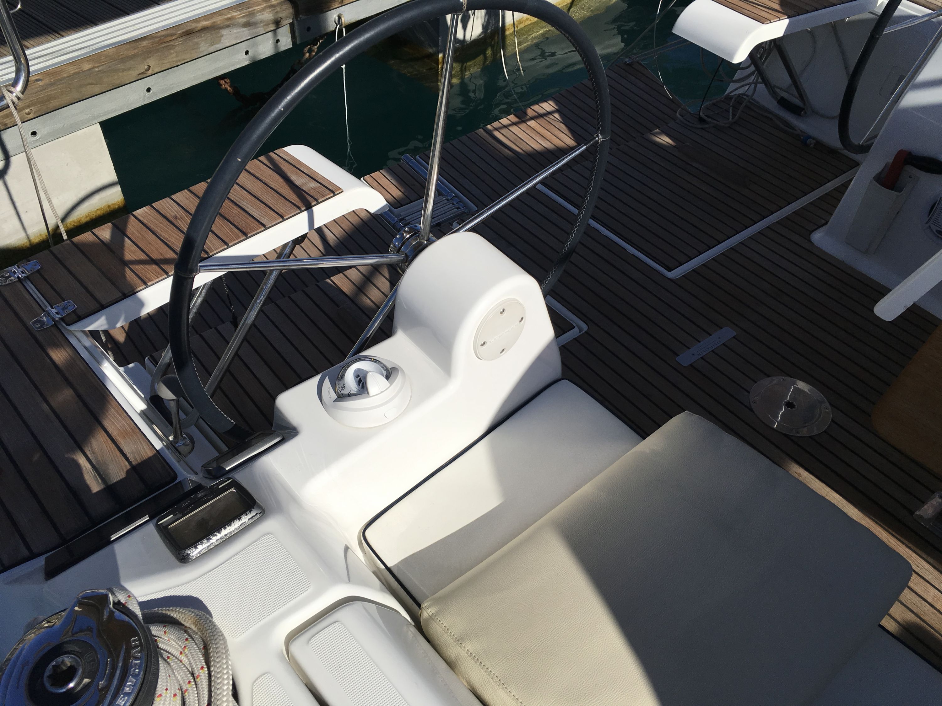 | Safety | Autopilot, Bootsmannstuhl, Bordapotheke, Bordwerkzeug, elektr. Bilgepumpe, Feststoffschwimmwesten, Leuchtboje, Navigationslichter, Notpinne, Notsignale, Rettungsinsel, Rettungskragen, Sicherheitsausrüstung, Sicherheitsgurt, Taschenlampe, UKW-Funk |