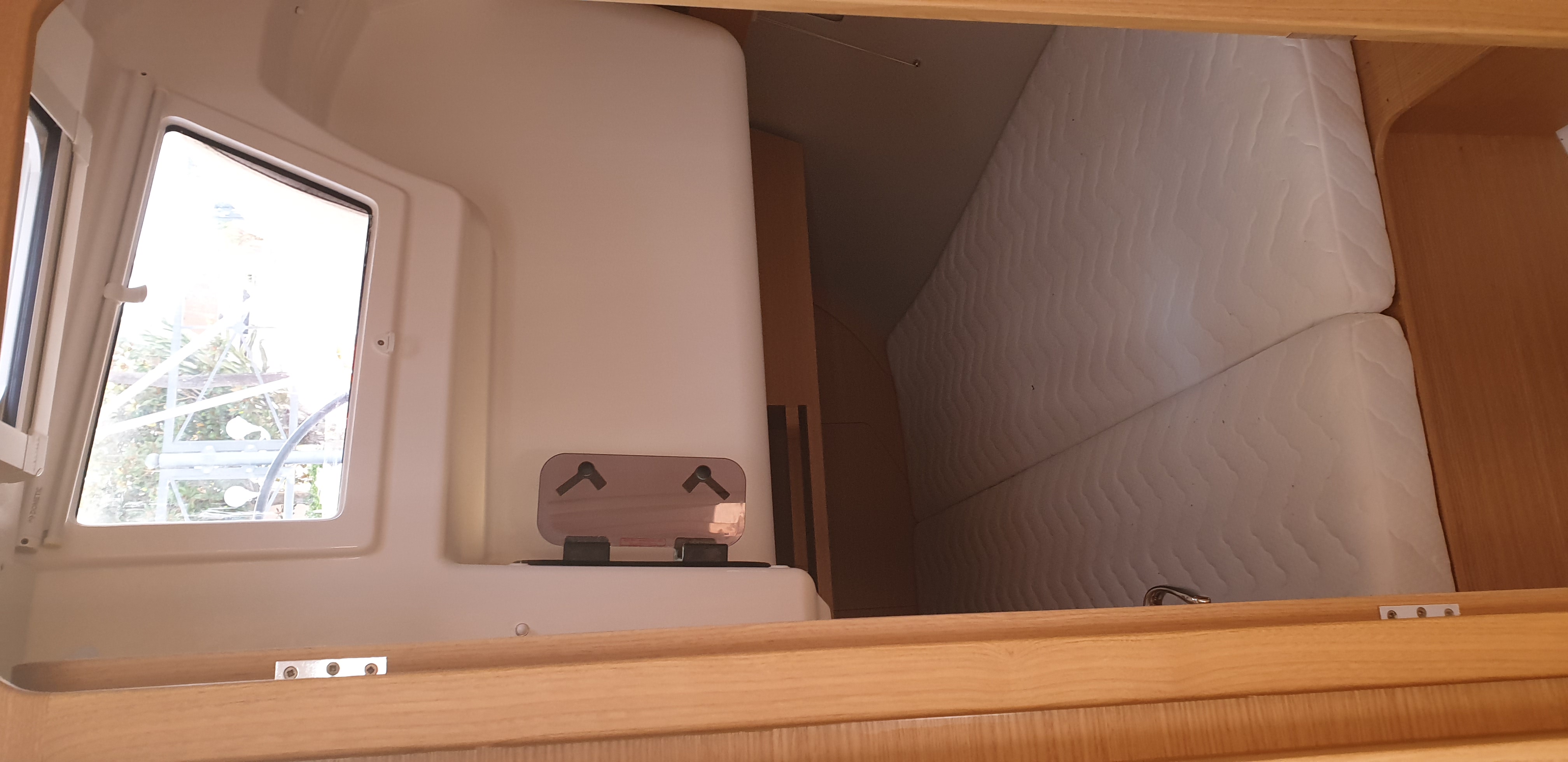 | Safety | AIS Empfänger, Autopilot, Bilgepumpe, Bootsmannstuhl, Bordapotheke, Feststoffschwimmwesten, Feuerlöscher, Flaggen, Handbilgepumpe, Lifebelts, Navigationslichter, Notpinne, Notsignale, Radarreflektor, Rettungsinsel, Taschenlampe, UKW-Funk, Zweitanker |