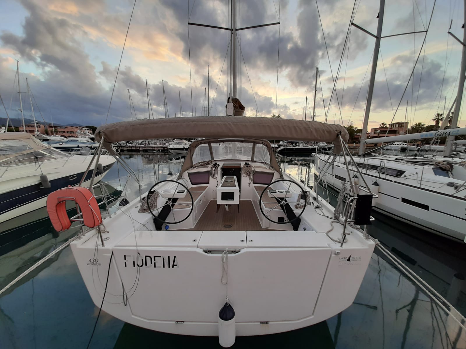 | Outside | Anker mit Kette, Außendusche, Badeplattform, Biminitop, Bootshaken, Cockpitdusche, Cockpitlautsprecher, Cockpittisch, elektr. Ankerwinsch, Fender, Grill, Kunststoff-Eimer (Pütz), Sprayhood, Teak im Cockpit, Windex, Winschen |