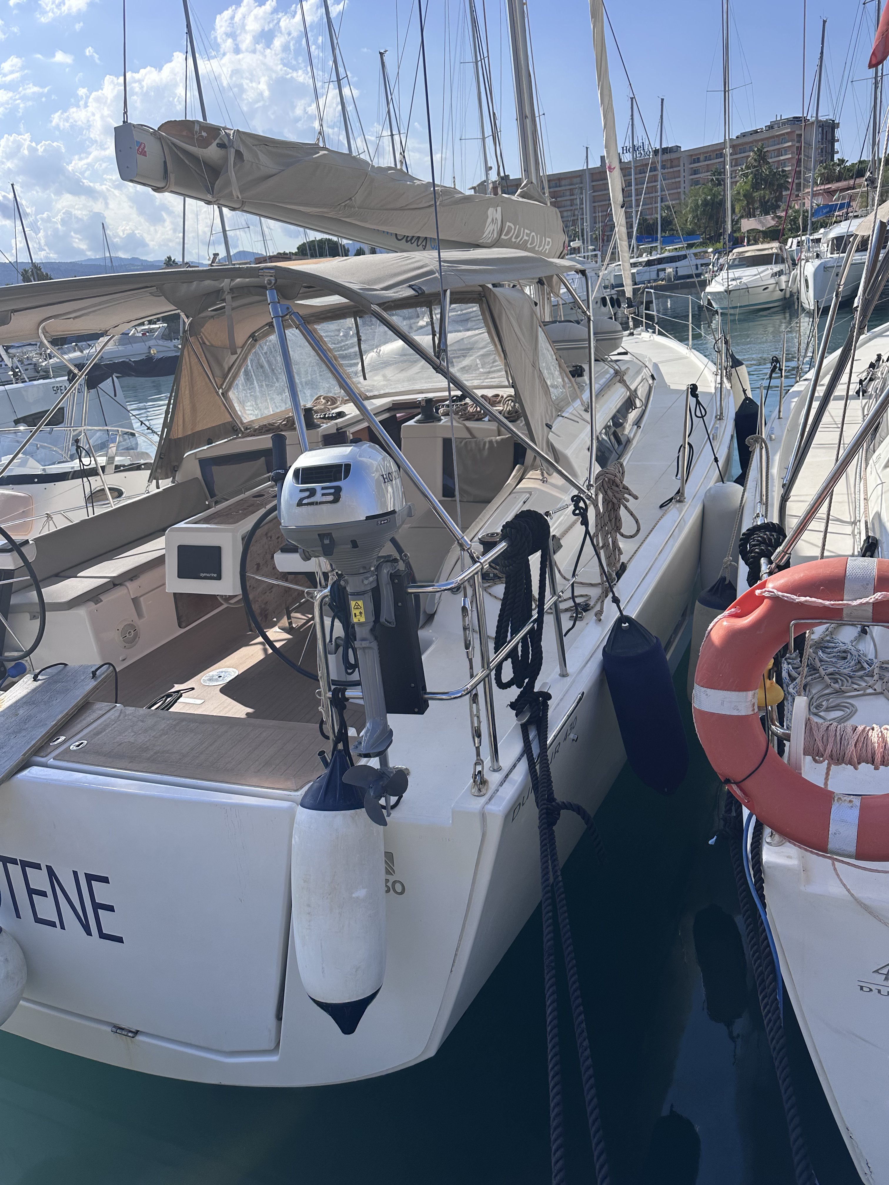 | Outside | Ankerwinsch, Außendusche, Badeleiter, Biminitop, Cockpitdusche, Fender, Grill, Sprayhood, Teak im Cockpit, Winschen |