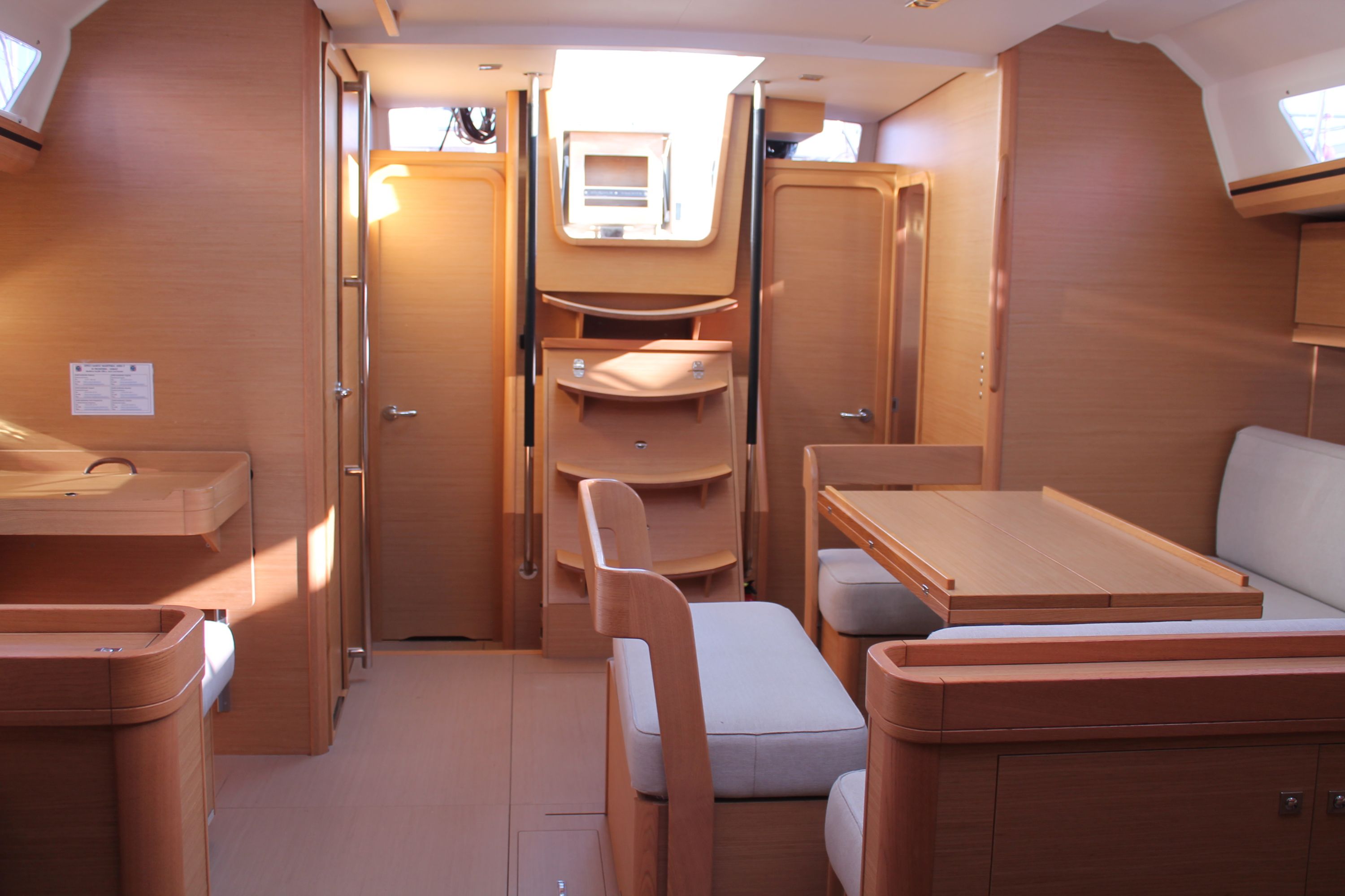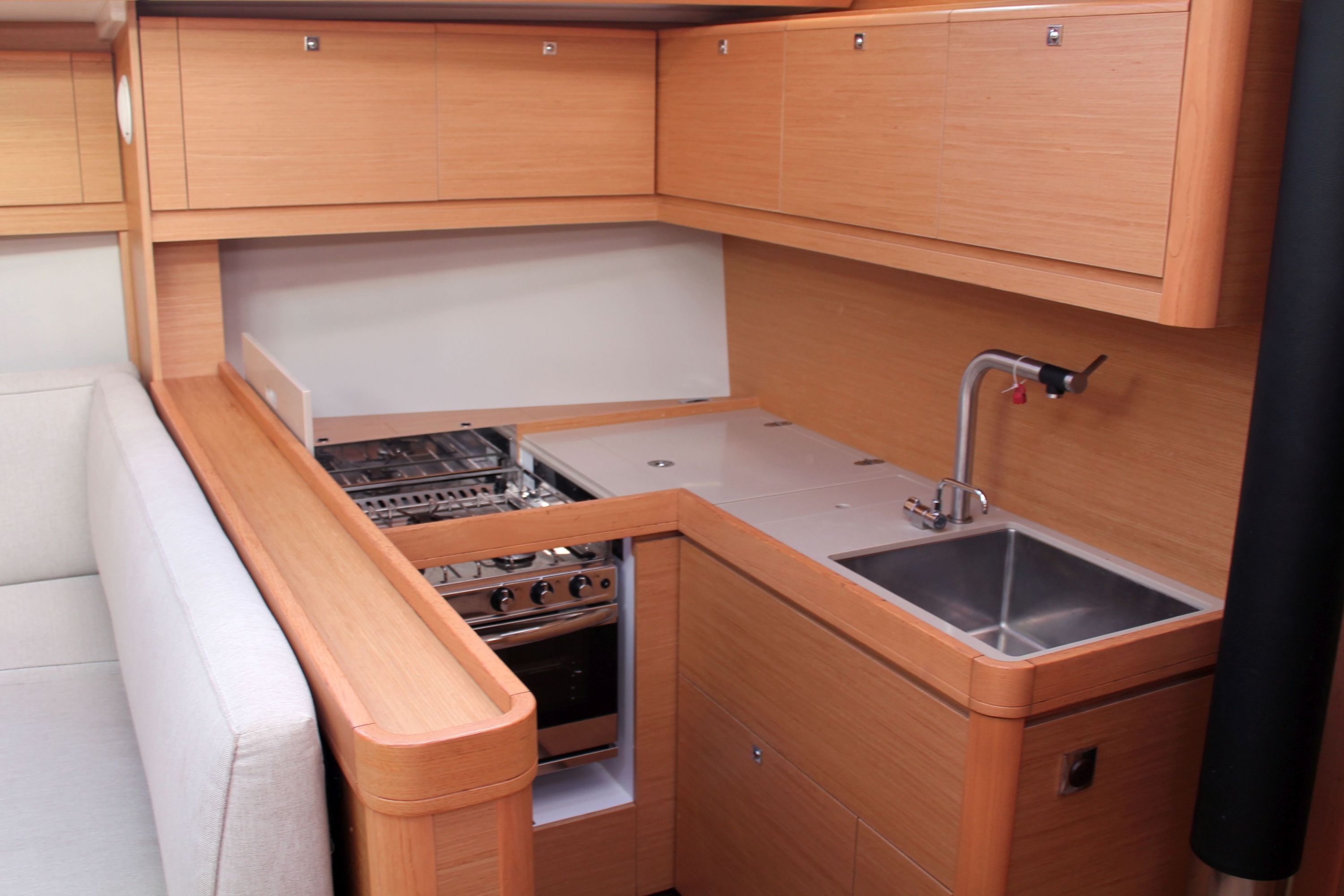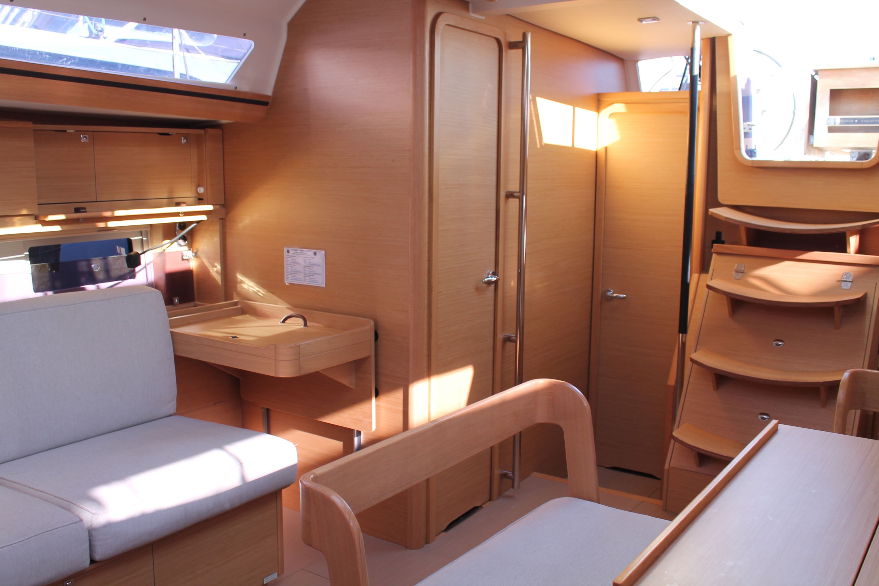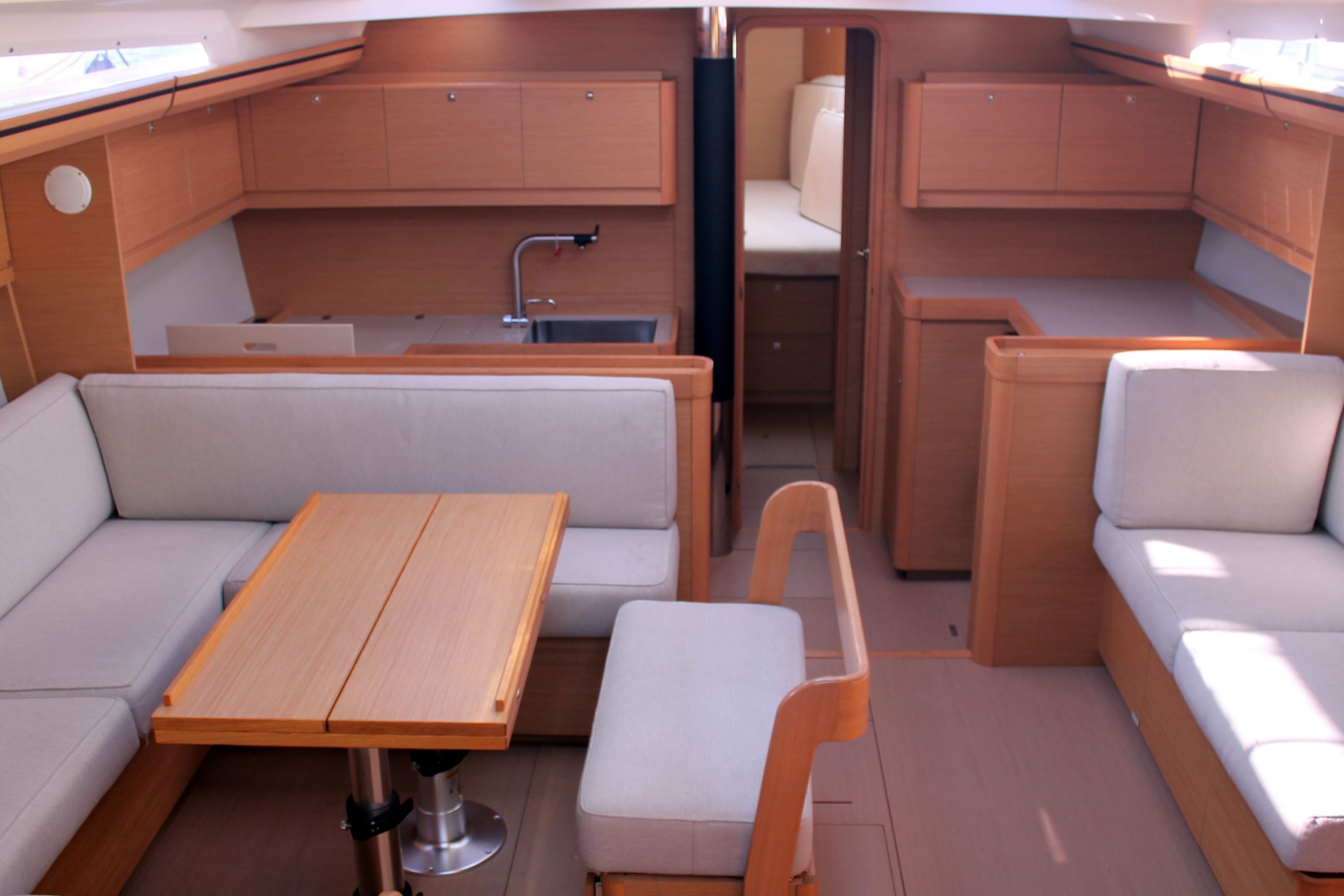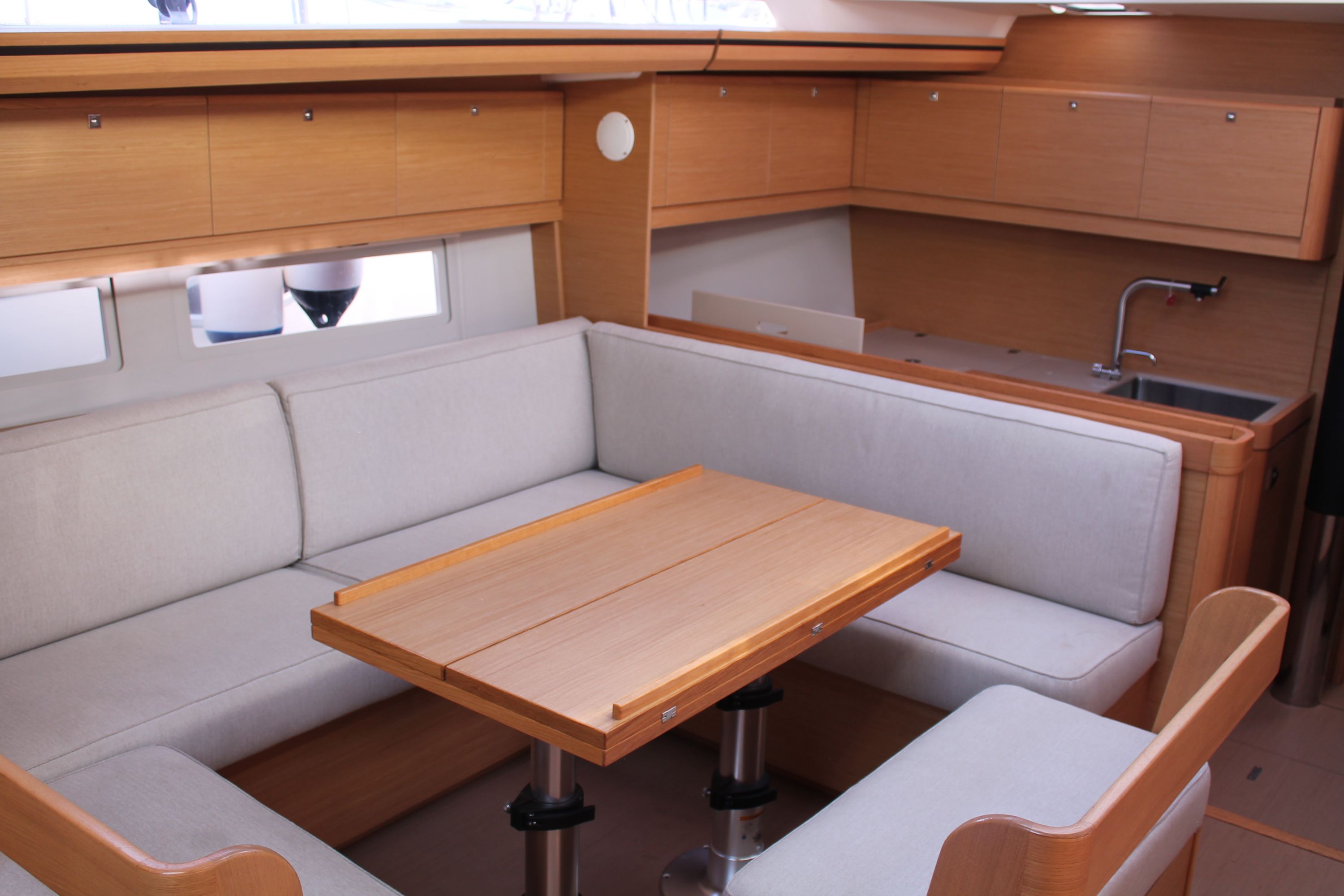 | Outside | Anker mit Kette, Biminitop, Cockpitdusche, Cockpitlautsprecher, Cockpitpolster, Cockpittisch, Deckbeleuchtung, elektr. Ankerwinsch, Gas-Barbecue-Grill im Cockpit, Sprayhood, Teak im Cockpit |