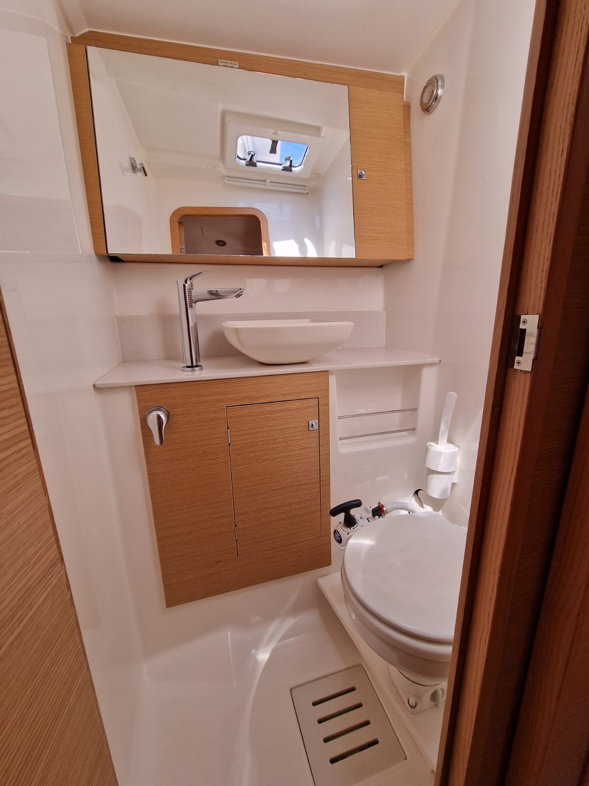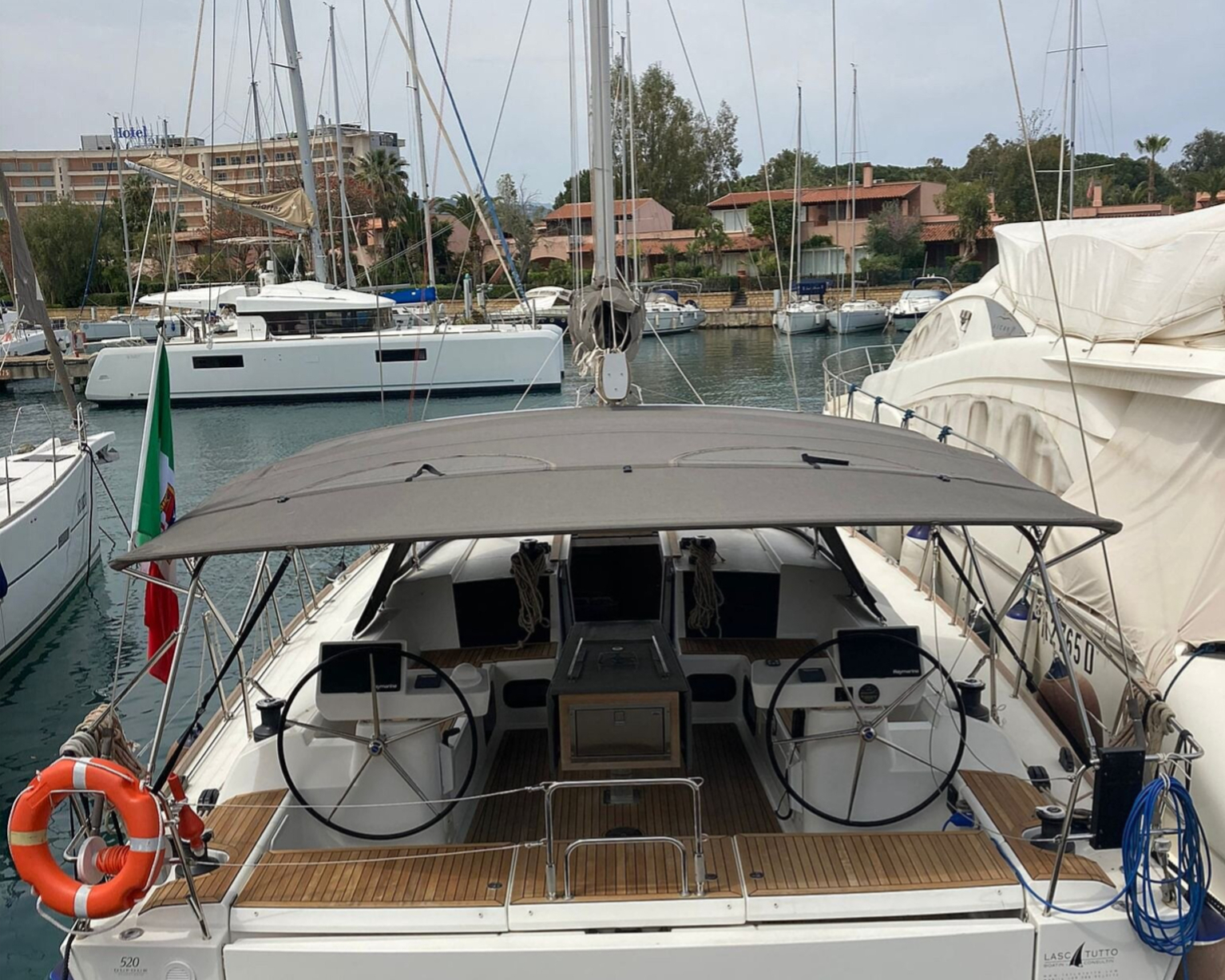 | Outside | Ankerwinsch, Außendusche, Badeplattform, Biminitop, Bootshaken, Cockpitdusche, Cockpitkühlschrank, Cockpitlautsprecher, Deckbeleuchtung, elektr. Ankerwinsch, Festmacherleinen, Grill, Kunststoff-Eimer (Pütz), Sprayhood, Teak im Cockpit, Winschen |