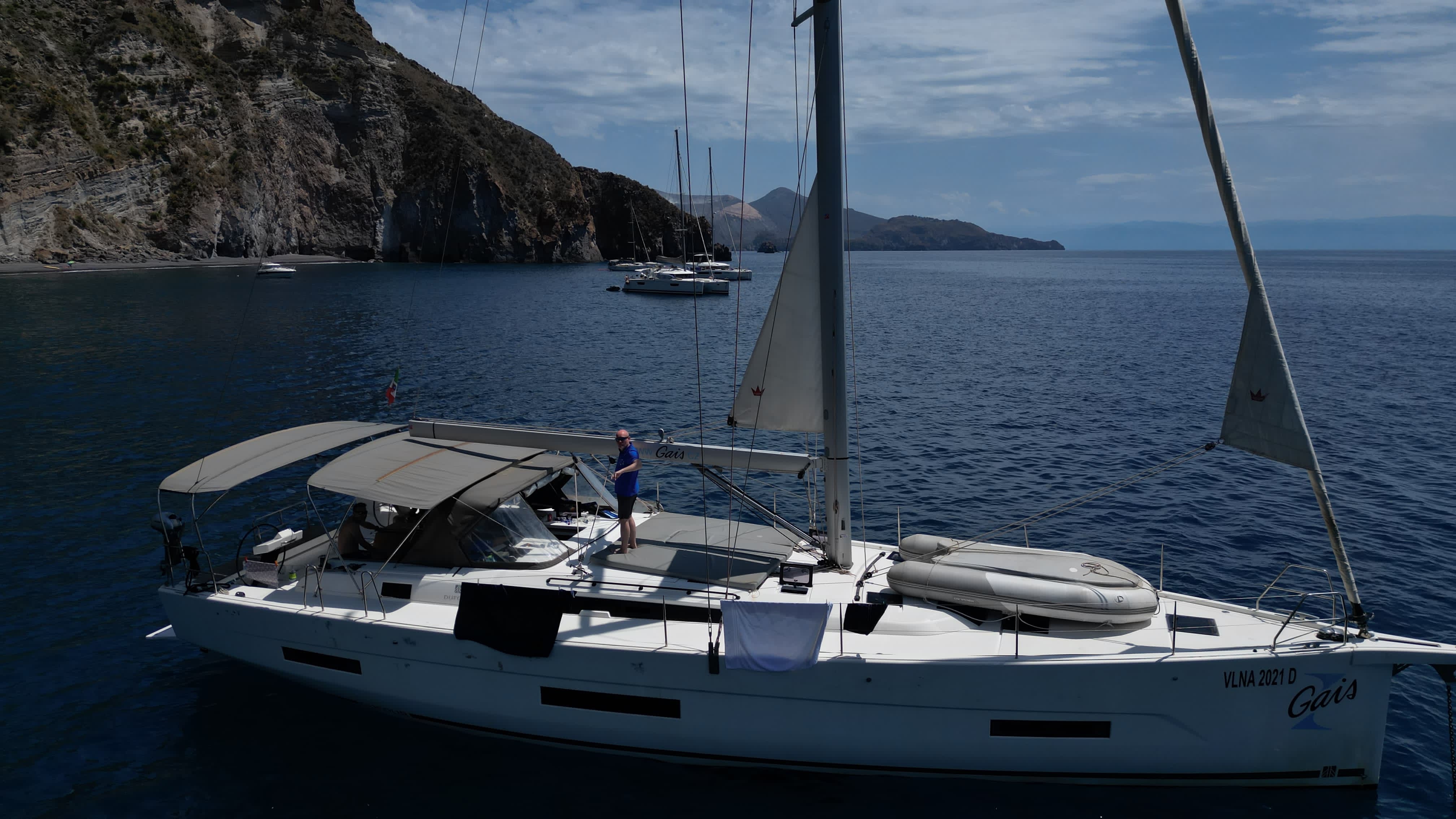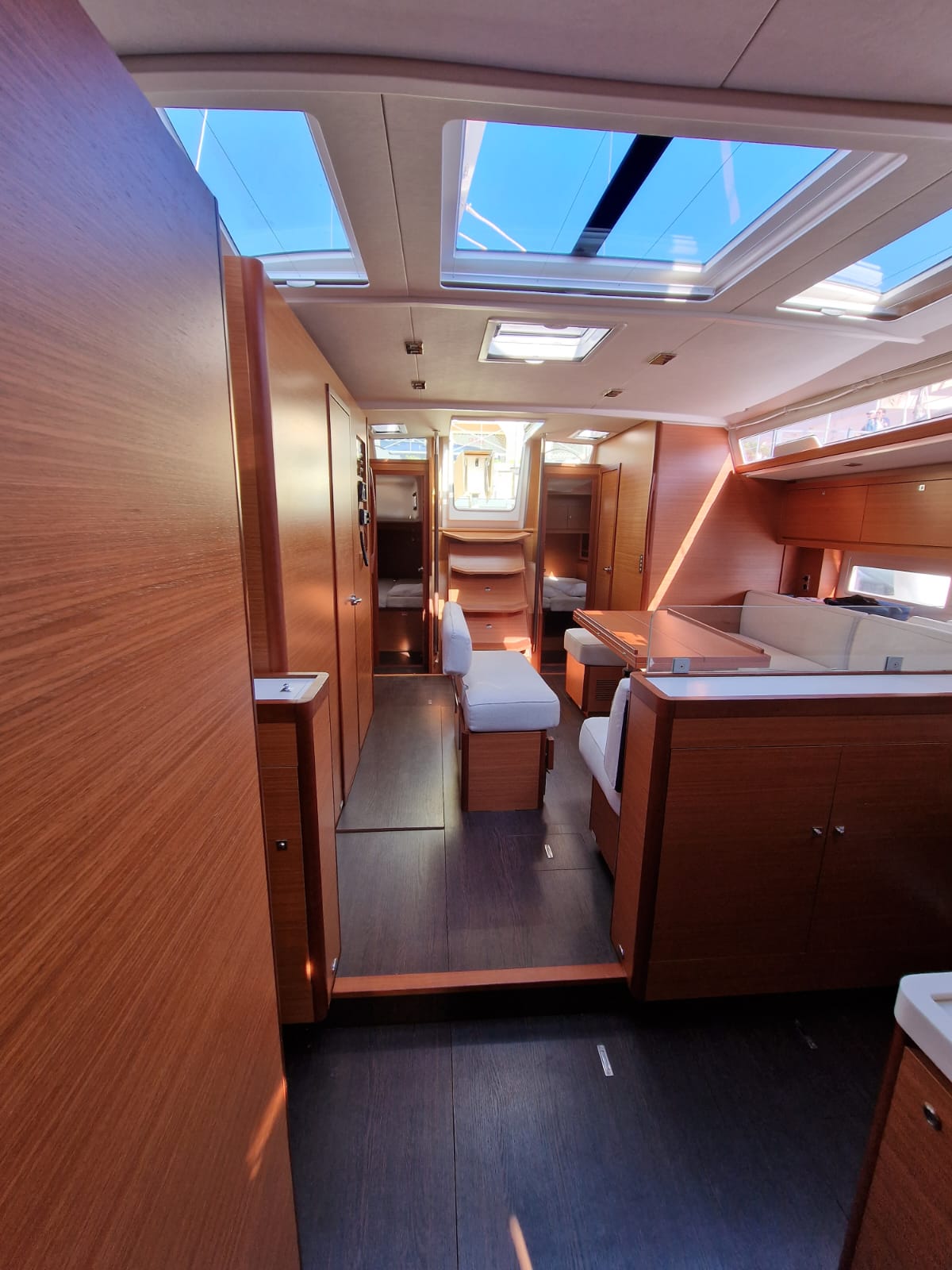 | Outside | Anker mit Kette, Ankerwinsch, Außendusche, Badeleiter, Badeplattform, Biminitop, Bootshaken, Cockpitdusche, Cockpitkühlschrank, Cockpitlautsprecher, Deckbeleuchtung, elektr. Ankerwinsch, Fender, Grill, Kunststoff-Eimer (Pütz), Sprayhood, Windex, Winschen |