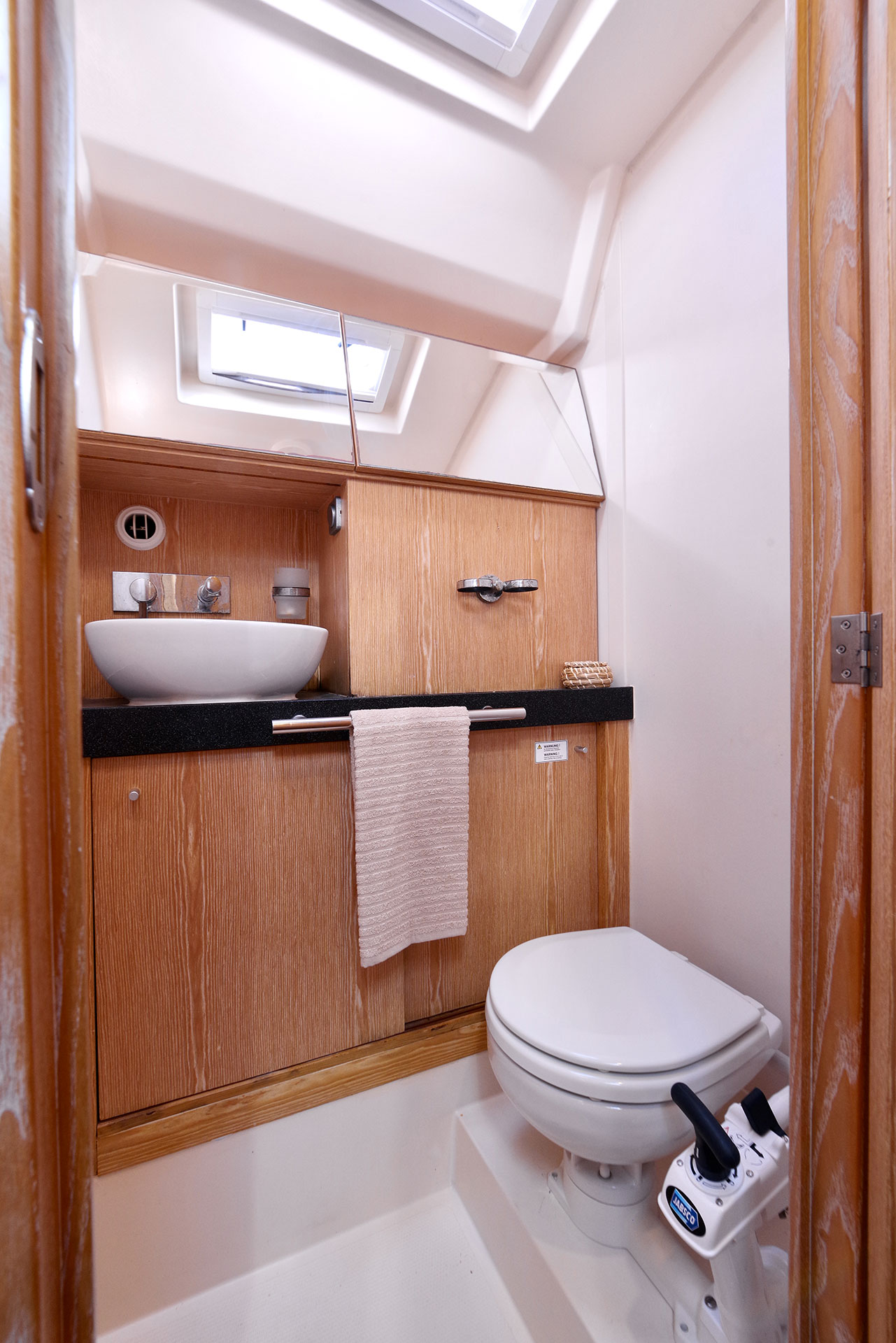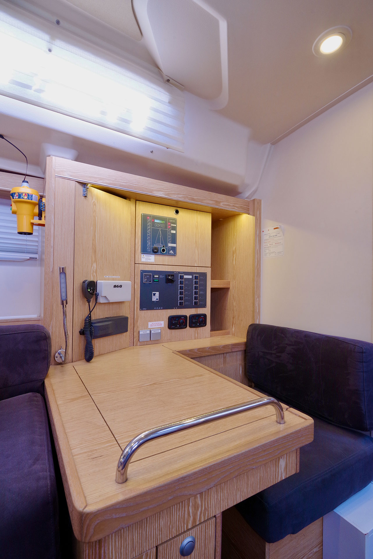 | Navigation | Echolot, GPS mit Kartenplotter im Cockpit, Sumlog, Windmesser |