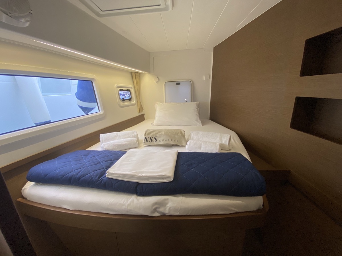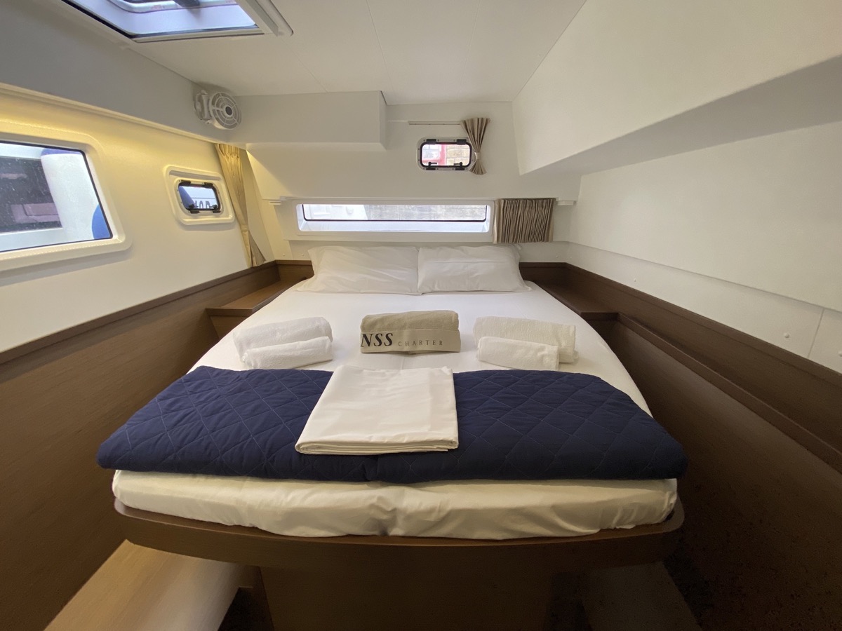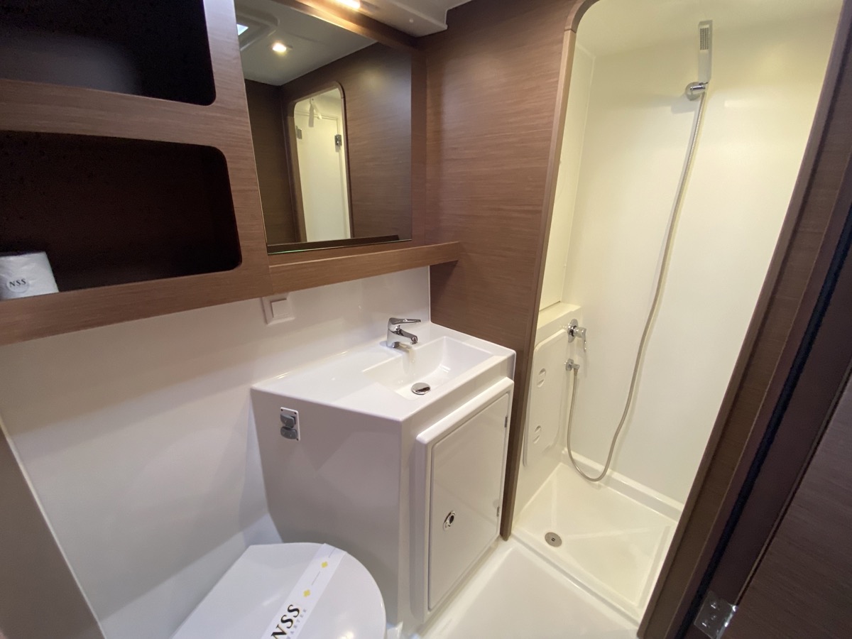 | Inside | Backofen, Inverter 12V/220V, Landstromkabel, Mikrowelle, Mokkakanne, Pantryausstattung, Radio, USB Steckdosen in den Kabinen, Ventilator, Ventilatoren in Kabinen, Warmwasser, Watermaker, WC (elektr.) |