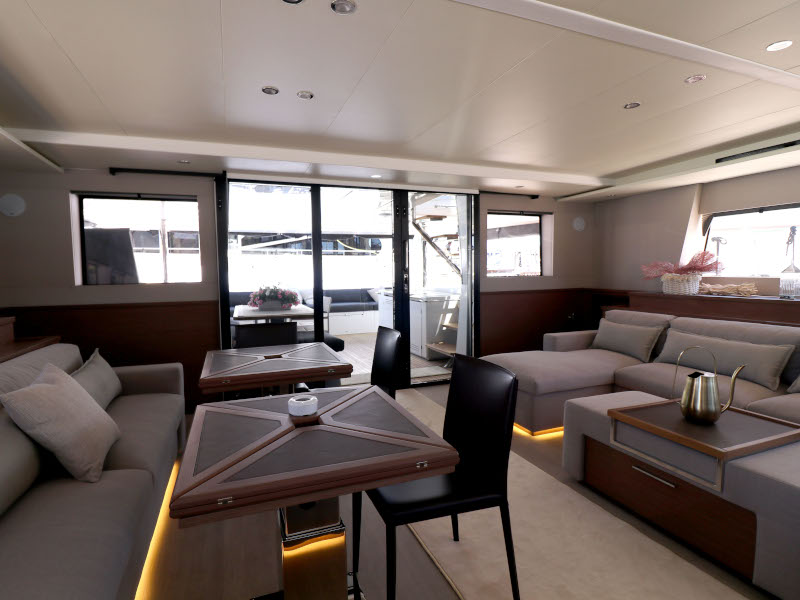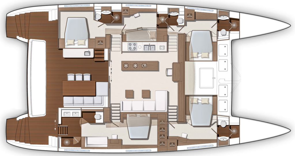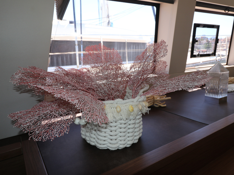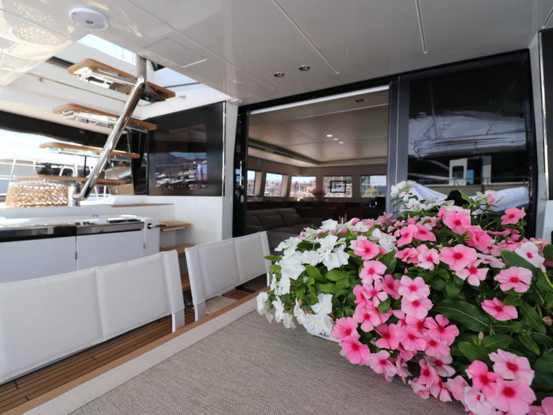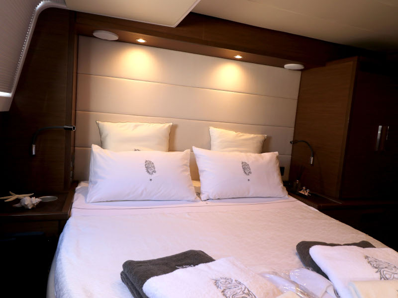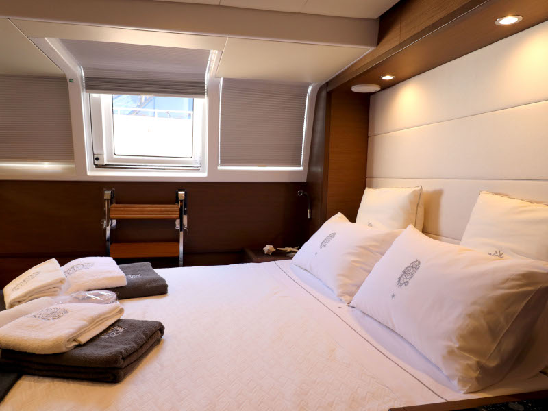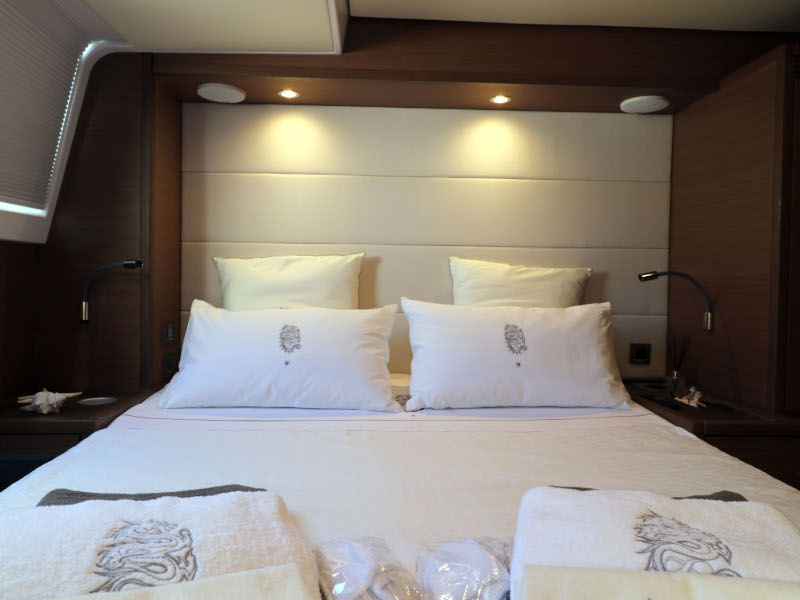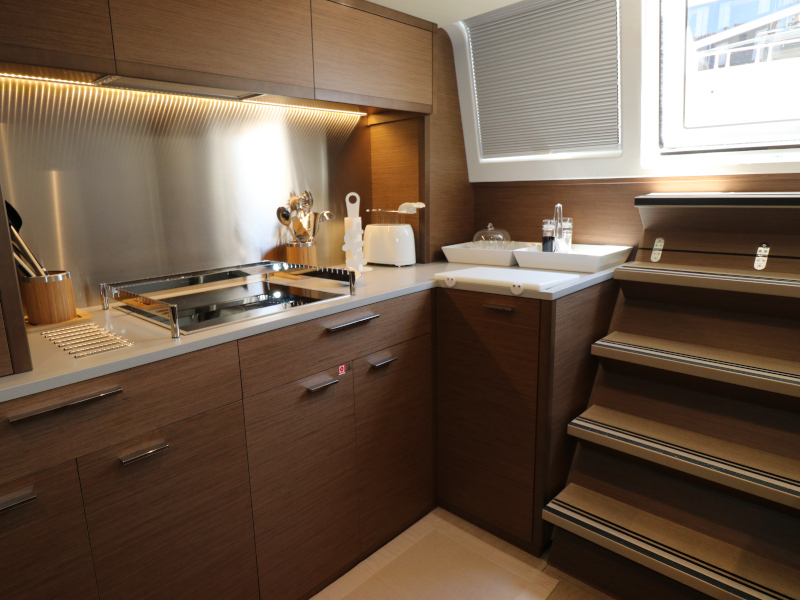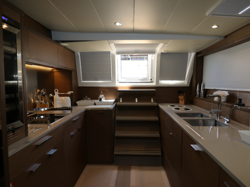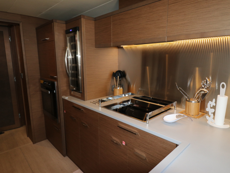 | Inside | Eiswürfelmaschine, Kaffeemaschine, Klimaanlage (ohne Landstrombedarf), Pantryausstattung, TV, USB Steckdosen in den Kabinen, Waschmaschine mit Trockner, Watermaker, Weinkühlschrank |
